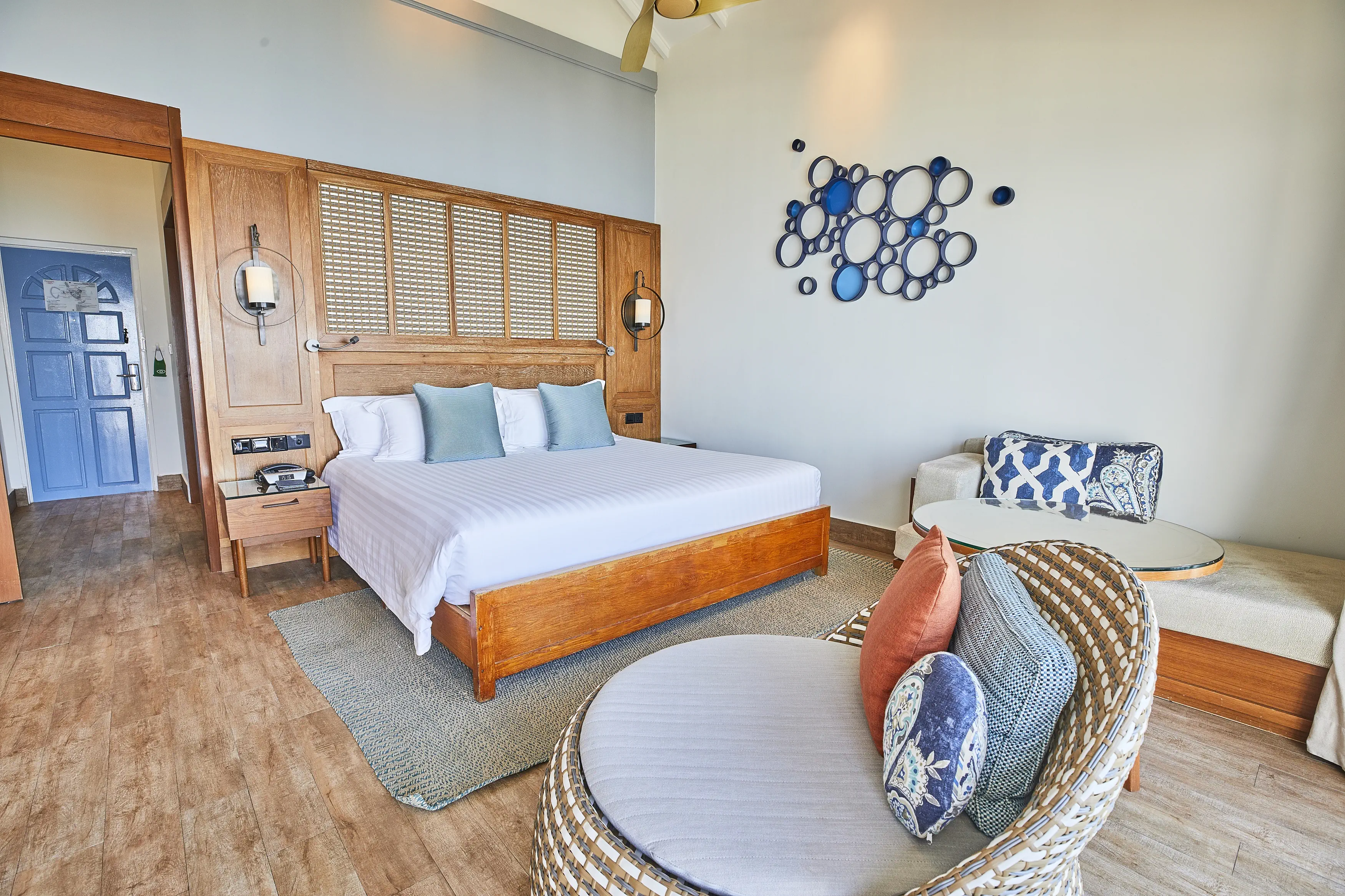 Dla max. 4 osób, Przestrzeń zewnętrzna: Taras, Kanały telewizji: Angielski, Telefon w pokoju, prysznic, Powierzchnia pokoju: ok. 87 m2, Dostawka: sofa, Rodzaj podłogi: płytki, Sprzątanie codziennie, 1 sypialnia, Drzwi przesuwne, Maksymalna liczba osób dorosłych: 2, Maksymalna liczba dzieci: 2, Frontalny widok na plażę, Liczba łazienek: 2, Liczba toalet: 2, Zestaw do parzenia kawy i herbaty, Klimatyzacja: Klimatyzacja indywidualna