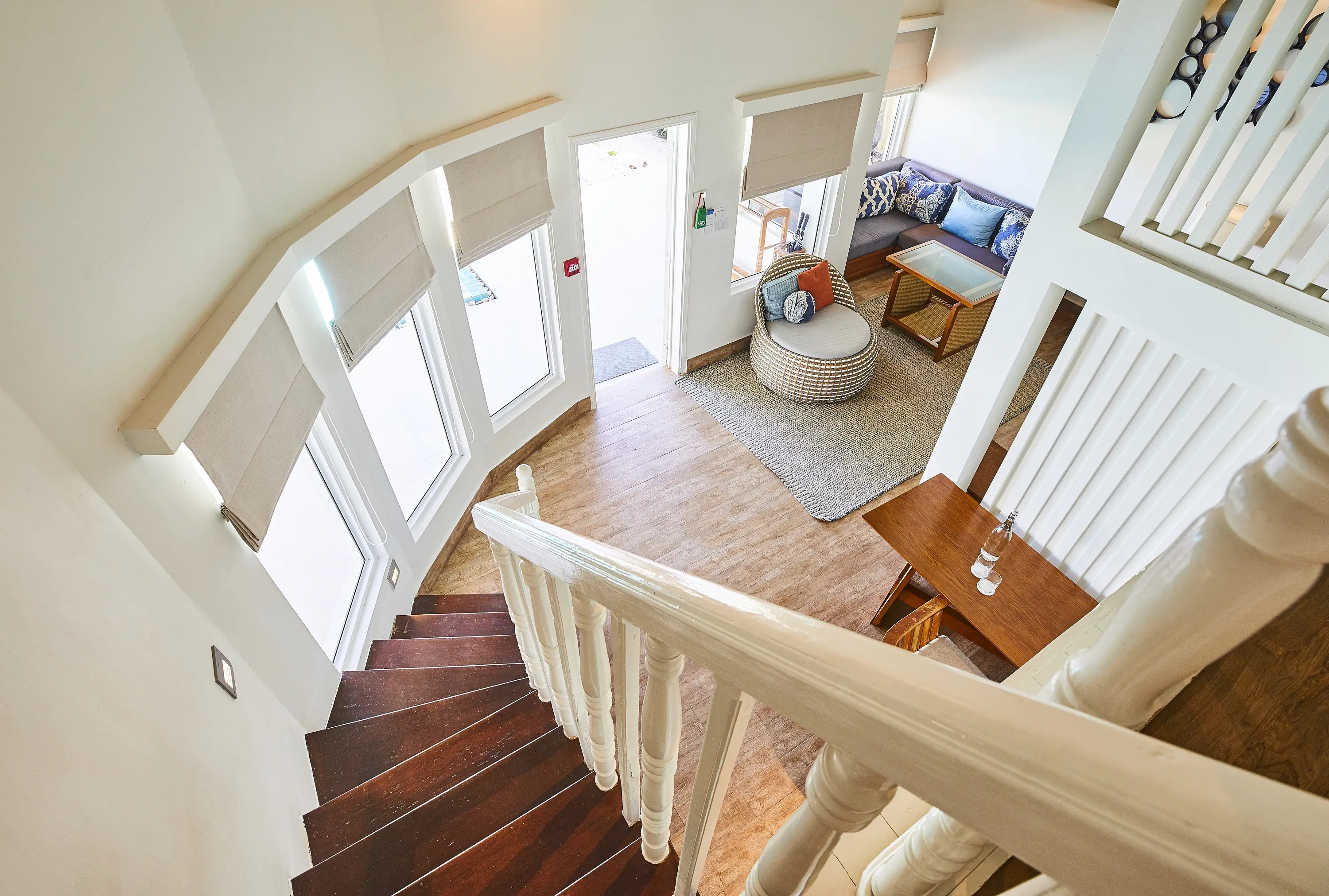 Dla max. 5 osób, Przestrzeń zewnętrzna: Taras, Kanały telewizji: Angielski, Telefon w pokoju, wanna, prysznic, Powierzchnia pokoju: ok. 159 m2, Dostawka: sofa, Rodzaj podłogi: płytki, Sprzątanie codziennie, Salon, miejsce do pracy, 2 sypialnie, Drzwi przesuwne, Maksymalna liczba osób dorosłych: 2, Maksymalna liczba dzieci: 3, Prysznic na świeżym powietrzu, Frontalny widok na plażę, Bezpośredni dostęp do plaży, Prywatny basen, Liczba łazienek: 2, Liczba toalet: 2, Zestaw do parzenia kawy i herbaty, Klimatyzacja: Klimatyzacja indywidualna