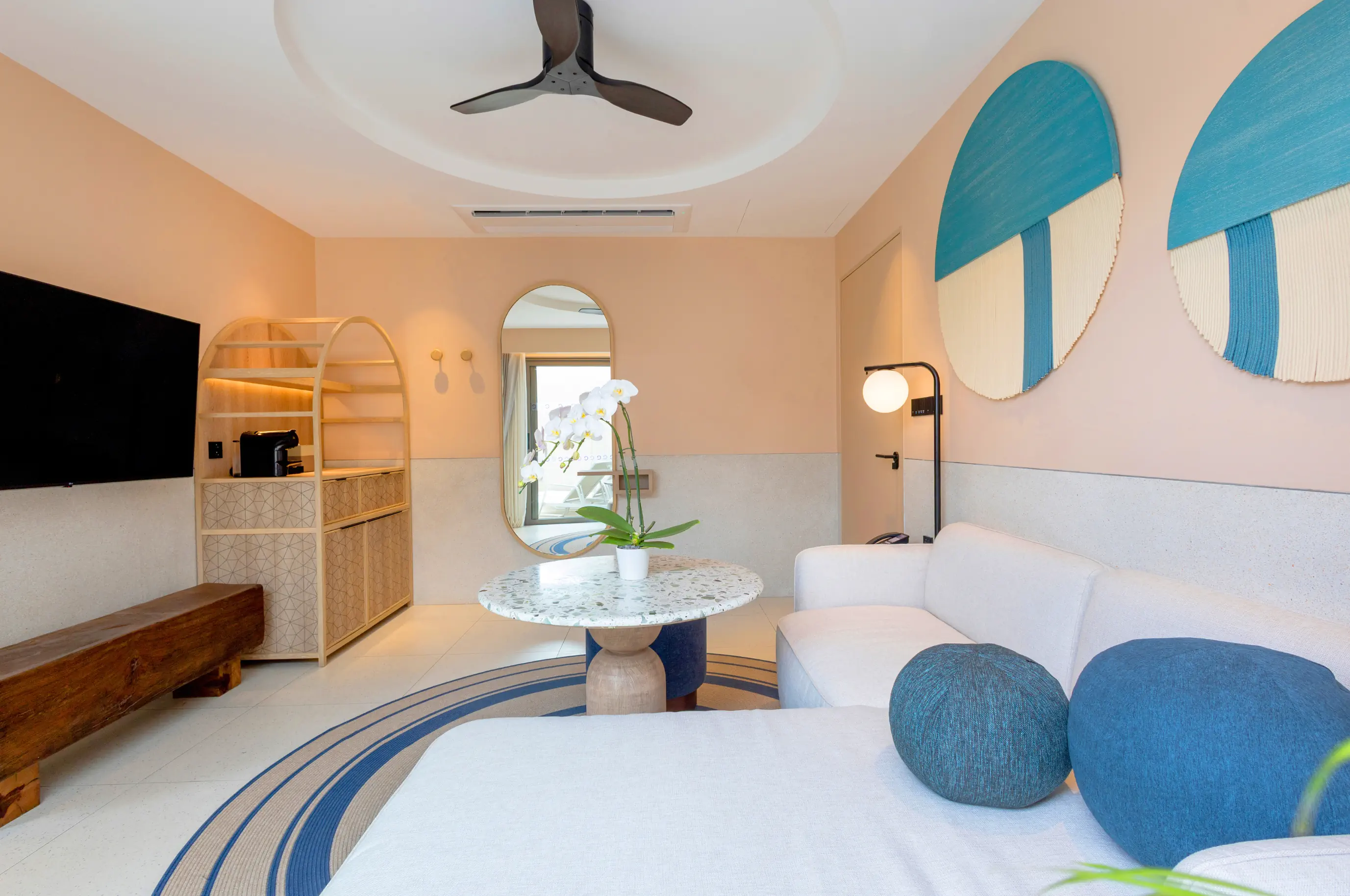 Dla max. 3 osób, Przestrzeń zewnętrzna: Balkon lub taras, Kanały telewizji: Angielski, Telefon w pokoju, wanna, prysznic, Powierzchnia pokoju: ok. 36 m2, Dostawka: łóżko standardowe, Rodzaj podłogi: płytki, Sprzątanie codziennie, 1 sypialnia, Maksymalna liczba osób dorosłych: 2, Maksymalna liczba dzieci: 1, Widok na basen, Liczba łazienek: 1, Liczba toalet: 1, Zestaw do parzenia kawy i herbaty, Klimatyzacja: Klimatyzacja indywidualna