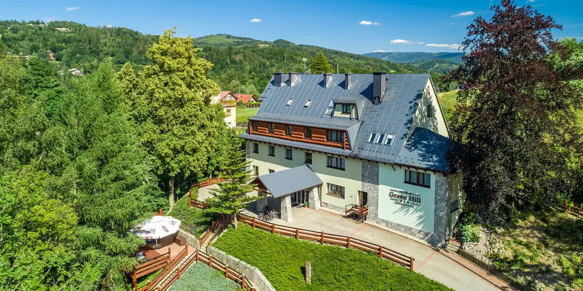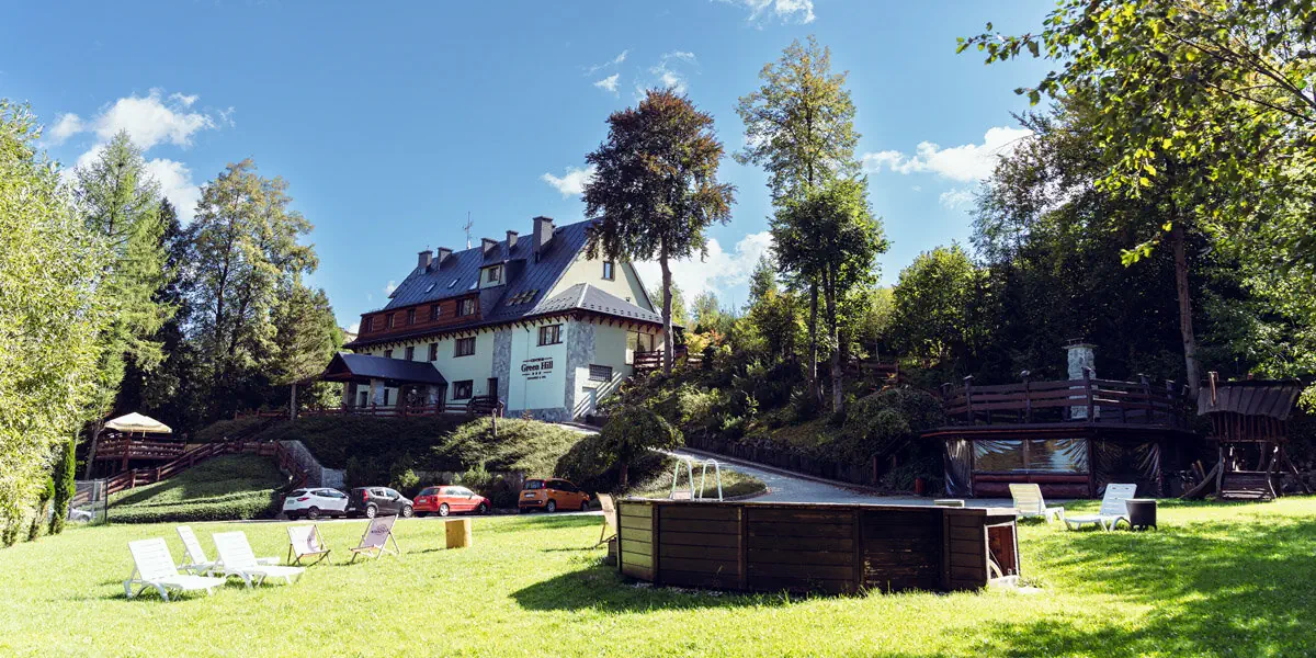 Green Hill położony jest na malowniczym zielonym wzgórzu w cichej i spokojnej dolinie, zaledwie 800 m od ścisłego centrum Wisły. Stanowi doskonałą bazę do wycieczek plenerowych. Hotel znajduje się w bliskim sąsiedztwie atrakcyjnych turystycznie miejscowości takich jak Ustroń czy Szczyrk. Do dyspozycji gości: pokoje z widokiem na góry i las, jacuzzi, sauna fińska, łaźnia parowa. Udogodnienia: Basen zewnętrzny, Jacuzzi, SPA, Sauna, Wellness, Bar / restauracja, Ogród / Park