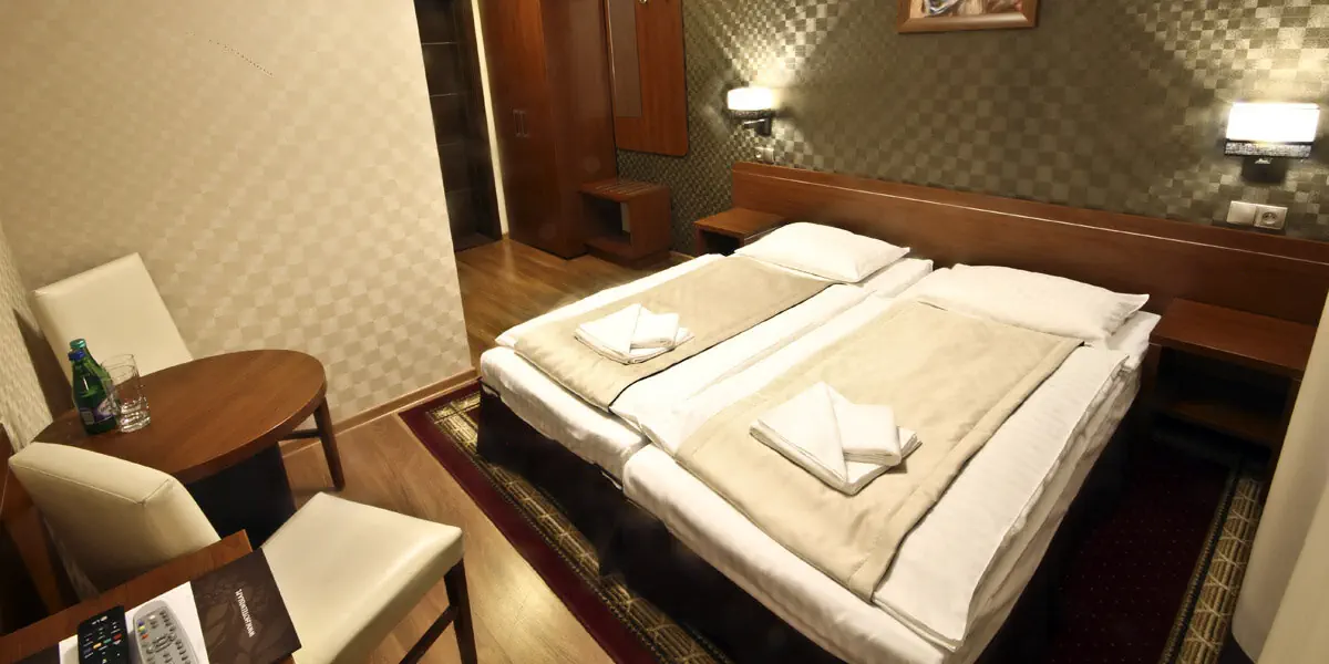 Wygodny pokój z dostawką wyposażony w: TV SAT, telefon, Wi-Fi, łazienkę z prysznicem i suszarką do włosów.