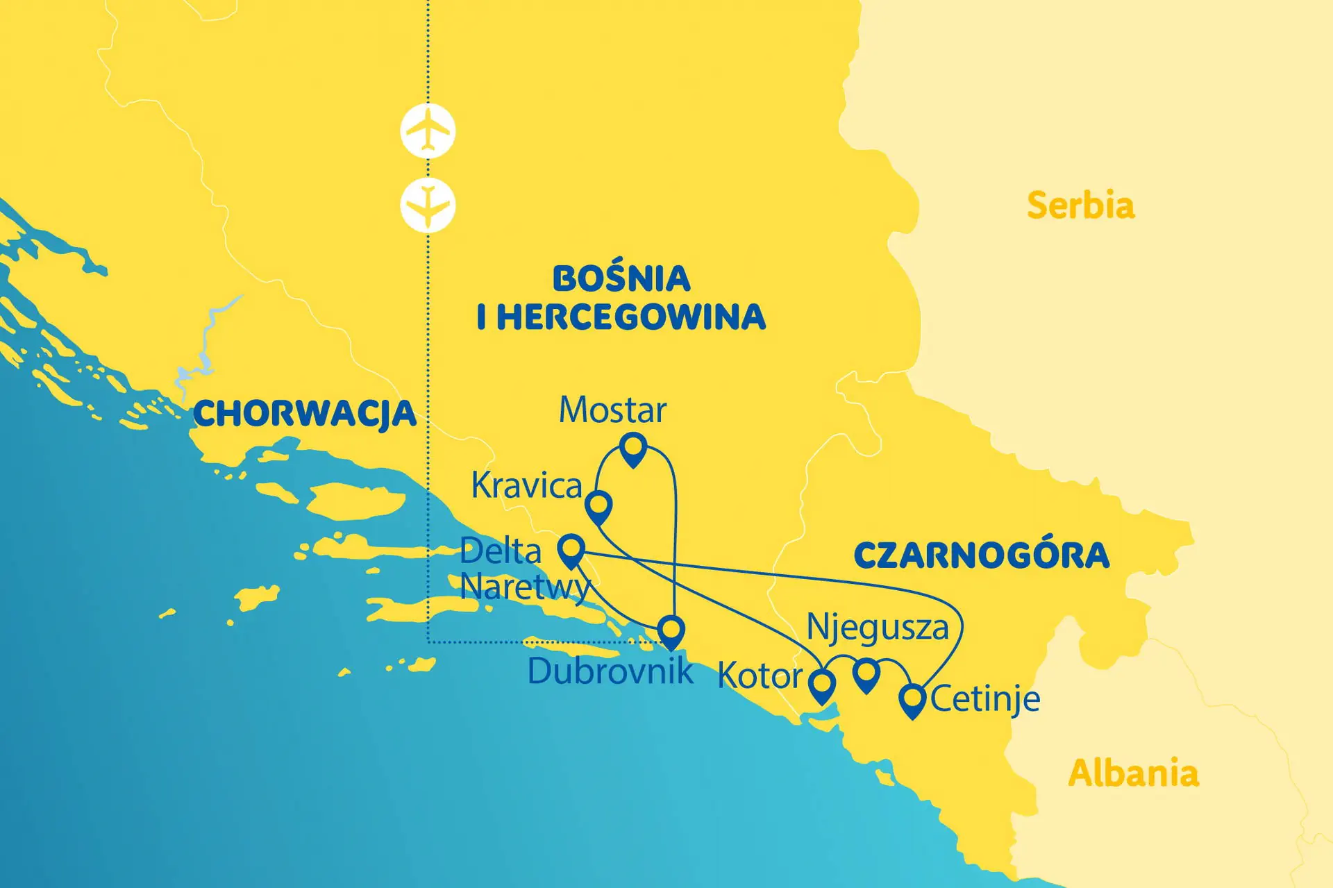 Zakwaterowanie Położenie: Hotel leży w miejscowości Plat, nad zatoką Župa Dubrovačka, w południowej Dalmacji. Jest to piękne i zaciszne miejsce, idealne dla osób szukających spokojnego wypoczynku. Znajduje się tu kameralna plaża w zatoczce, w otoczeniu przyrody. Warto wybrać się do położonego niedaleko Dubrownika (ok. 10 km) aby zobaczyć cenne zabytki wpisane na listę światowego dziedzictwa UNESCO. Plat jest również idealnym miejscem wypadowym do zwiedzania Czarnogóry, np. Kotoru. Hotel usytuowany jest ok. 1 km od głównej drogi. Lotnisko znajduje się ok. 9 km od hotelu, transfer trwa ok. 20 min. Plaża: Wokół obiektu zlokalizowanych jest kilka zróżnicowanych żwirowo-kamienistych plaż. Począwszy od niewielkich, kameralnych i schowanych w uroczych zatoczkach, aż po szerokie, tętniące życiem plaże, na których można wypożyczyć sprzęt wodny, czy skorzystać z ofert beach barów (dodatkowo płatne). Do dyspozycji gości:Całodobowa recepcja, duży basen i brodzik dla dzieci, taras słoneczny z bezpłatnymi leżakami i parasolami, bar, restauracja, ogród, przechowalnia bagażu, plac zabaw dla dzieci, parking, bankomat, dodatkowo płatne: pralnia, fryzjer. Pokoje:Pokoje, z których będą korzystać Klienci Rainbow znajdują się w Villi Eva. Budynek Villi Eva znajduje się w pierwszej linii brzegowej. Pokoje standardowe dwu- i trzyosobowe z widokiem na morze, wyposażone w klimatyzację, łazienkę z WC, prysznicem lub wanną i suszarką do włosów, balkon, TV-sat i lodówkę. Wyżywienie:HB – śniadania (07:00 – 09:30), obiadokolacje (19:00 – 21:00) w formie bufetu. Do posiłków nielimitowane napoje (piwo, wino). Internet:Wi-Fi bezpłatne w restauracji hotelowej oraz przy recepcji. Kategoria lokalna:*** Naszym zdaniem:Wszystkie pokoje posiadają bezpośredni widok na morze! Polecamy ze względu na dobre położenie - idealna baza wypadowa do zwiedzania najciekawszych miejsc w Czarnogórze, w bliskiej odległości znajduje się Kotor i Perast. W ostatnich dwóch latach obiekt był poddany renowacji, a także rozbudował wyżywienie.