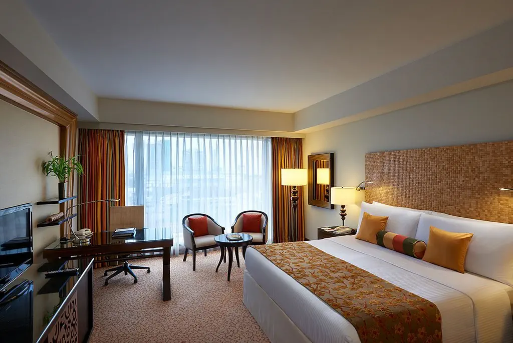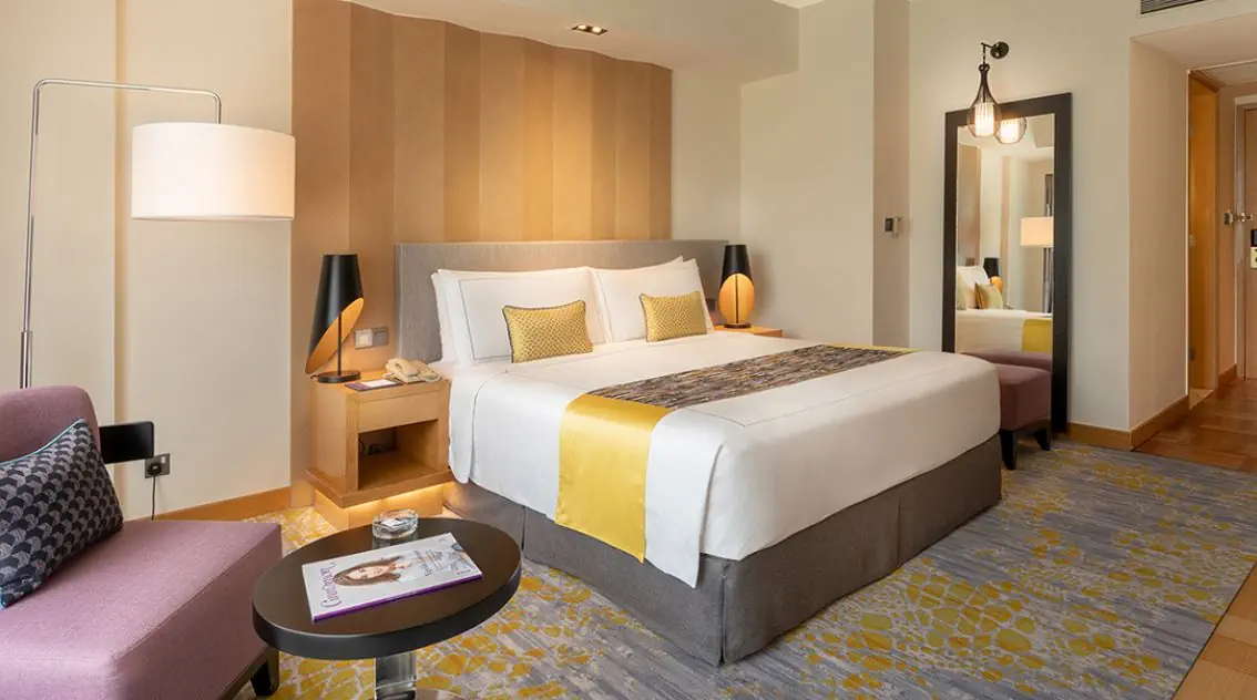 Pokoje dwuosobowe Courtyard: ok. 25 m2; 1 łóżko typu king-size, na podłodze wykładzina dywanowa, sejf, telefon, TV sat, łazienka z prysznicem, WC, suszarka, żelazko i deska do prasowania, szlafroki i kapcie kąpielowe, zestaw do przygotowania kawy lub herbaty. Pokoje Premium: ok. 32 m2, wanna i kabina prysznicowa, z balkonem lub z tarasem.