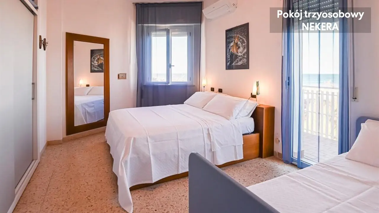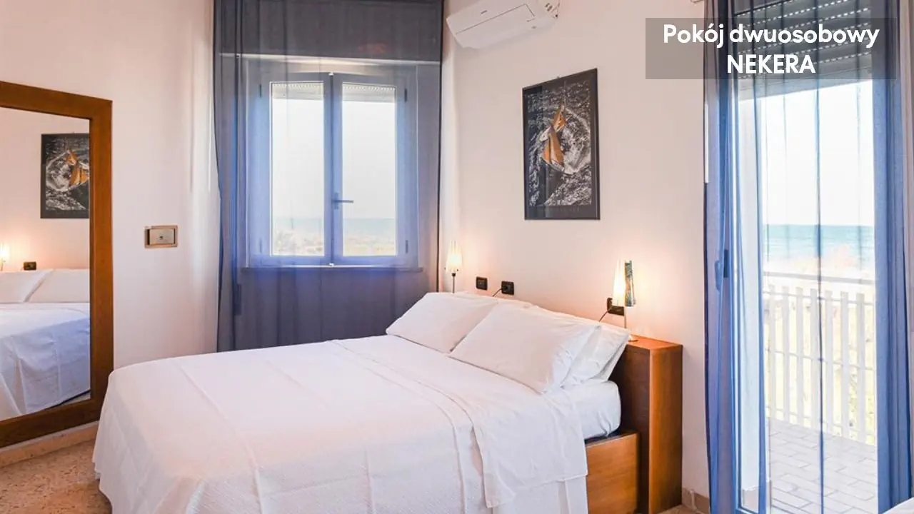 Pokój dwuosobowy: ok. 14 m2, mogący zakwaterować do dwóch osób, jedno łóżko podwójne lub dwa łóżka pojedyncze, klimatyzacja, ogrzewanie, TV, sejf, biurko, minibar (za dodatkową opłatą), prywatna łazienka (prysznic, toaleta, umywalka, suszarka do włosów, zestaw kosmetyków, ręczniki), balkon z widokiem na morze. Pokój trzyosobowy: ok. 18 m2, jedno łóżko podwójne i łóżko pojedyncze lub trzy łóżka pojedyncze; poza tym wyposażony jak pokój dwuosobowy. Pokój rodzinny: ok. 28 m2, mogący zakwaterować do czterech osób, jedno łóżko podwójne i łóżko piętrowe; poza tym wyposażony jak pokój dwuosobowy.