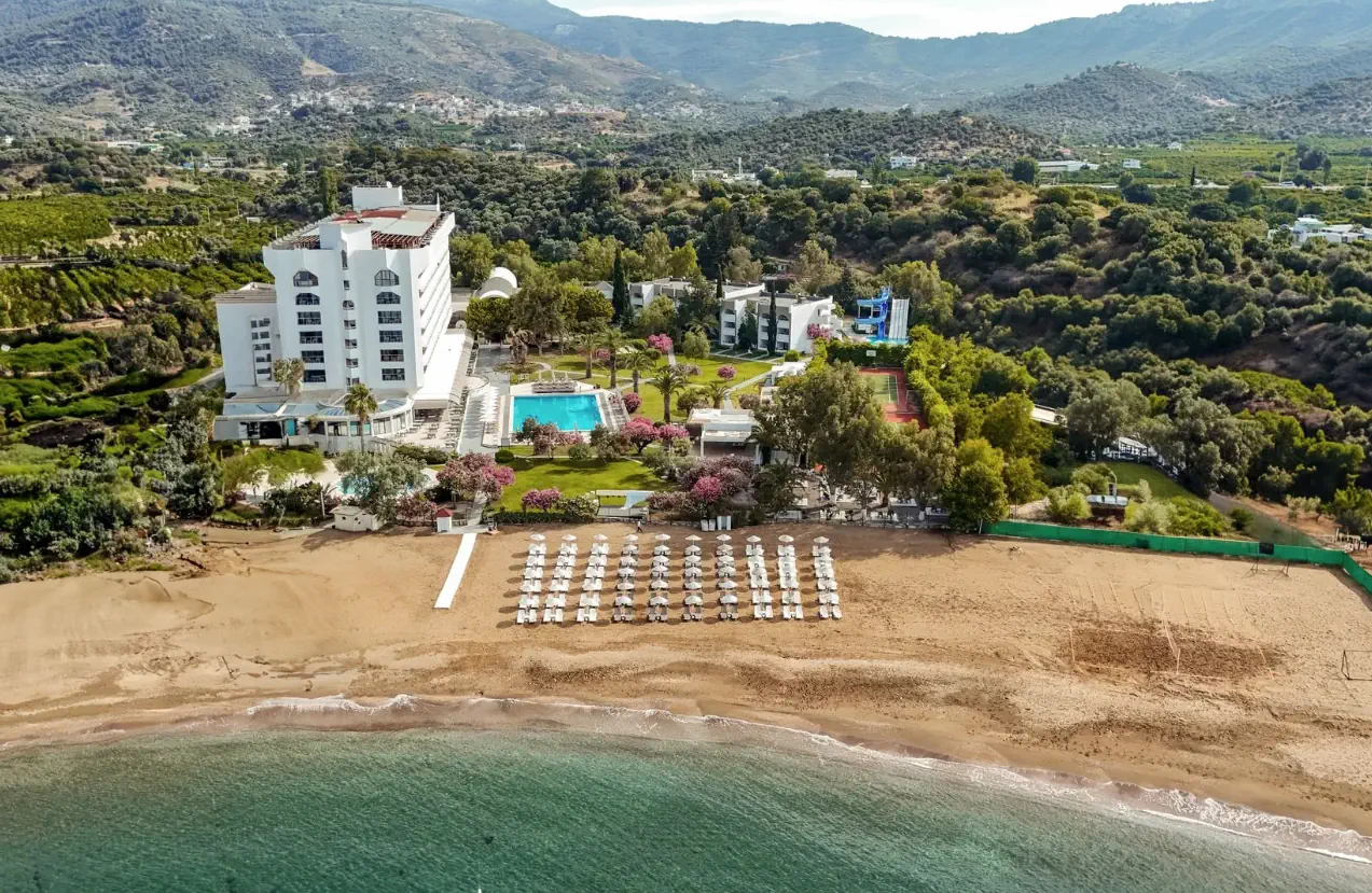 Hotel położony jest w zatoce Kesre - jednej z najpiękniejszych zatok Morza Egejskiego. Lokalizacja hotelu pozwala również na to, by po niezbyt długim spacerze dotrzeć do centrum kurortu Ozdere. Obiekty hotelowe położone są w zadbanym ogrodzie, a na terenie hotelu znajdziemy basen, miejsca do opalania, restaurację i bar. W pobliżu znajduje się także urokliwa plaża.