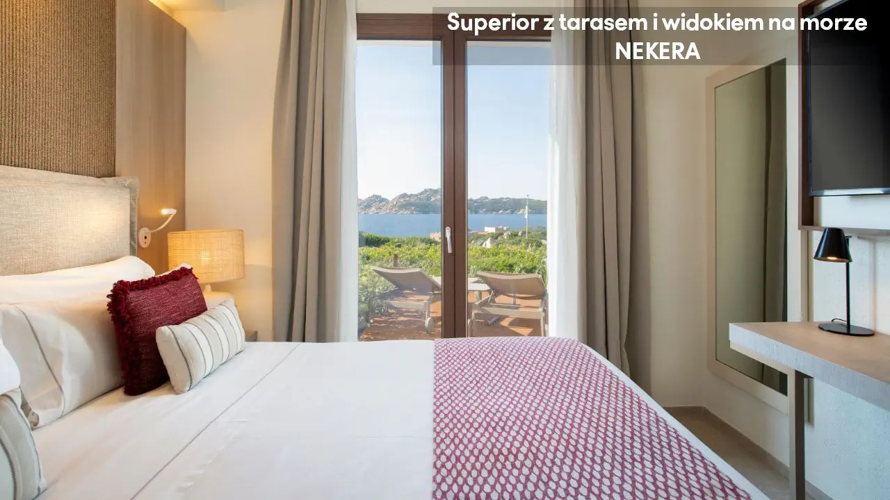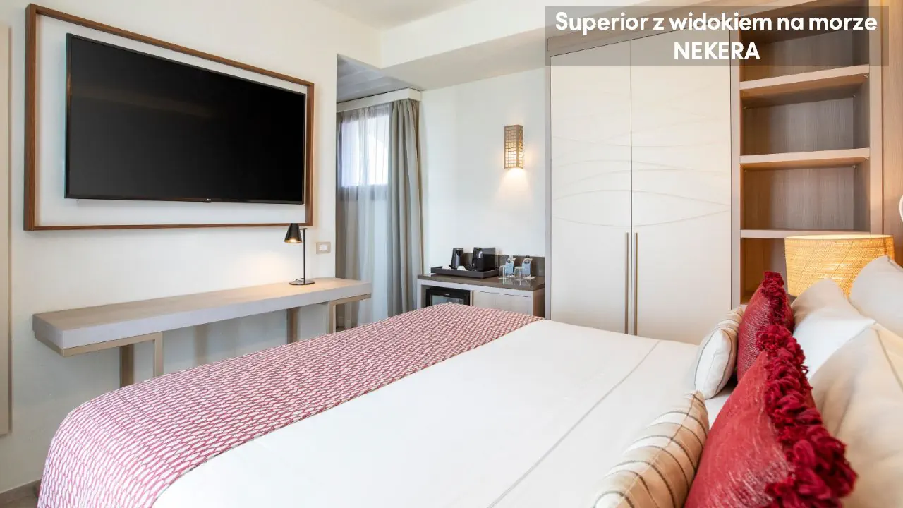 Pokój Superior Garden View: ok. 20 m², dla maks. 2 osób dorosłych, łózko podwójne lub 2 łóżka pojedyncze, klimatyzacja, sejf, TV-Sat., telefon (płatny), minibar (płatny), zestaw do parzenia kawy/herbaty, ekspres do kawy, prywatna łazienka (prysznic, toaleta, suszarka do włosów, mini kosmetyki, kapcie, szlafrok), umeblowany balkon lub taras. Możliwość rezerwacji pokoi z widokiem na morze za dodatkową opłatą. Pokój Deluxe, ok. 26 m², dla maks. 2 osób dorosłych, wyposażony jak pokój Superior. Junior Suite Sea View: ok. 35 m², dla maks. 4 osób dorosłych, przestronna sypialnia z częścią dzienną, balkon lub taras z widokiem na morze; poza tym wyposażony jak pokoje Superior. Możliwość rezerwacji pokoi z widokiem na morze za dodatkową opłatą.