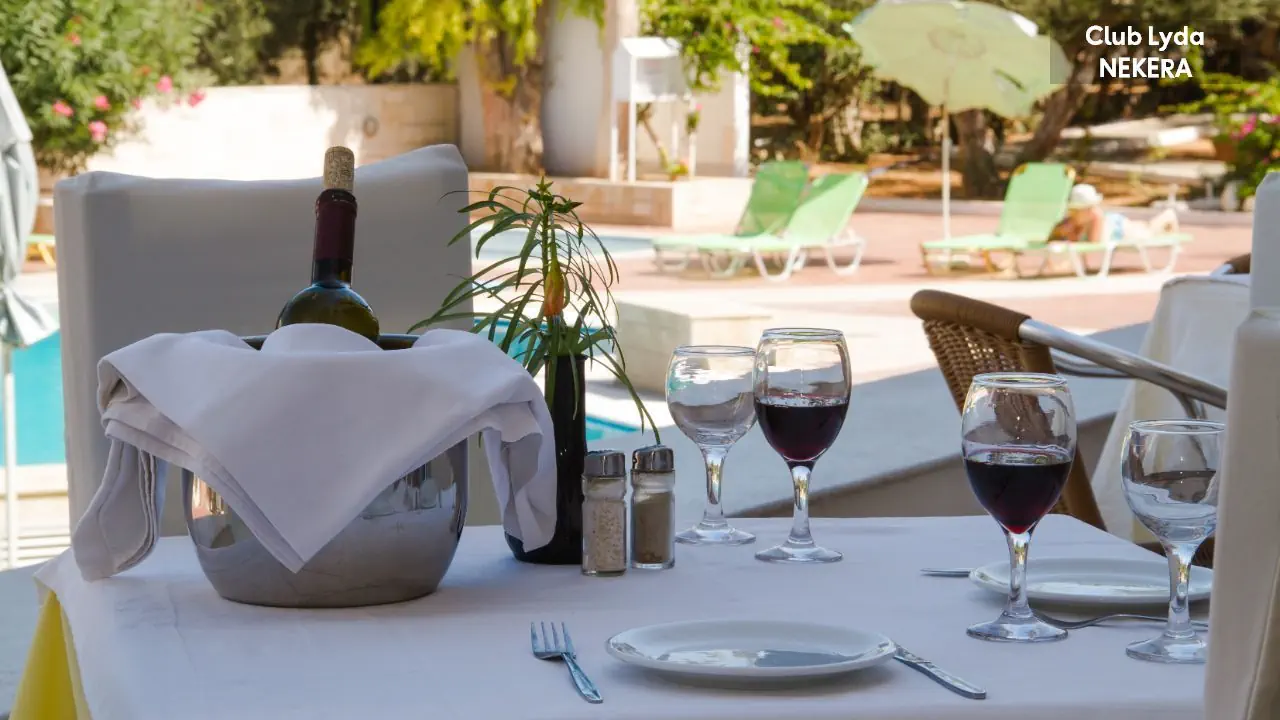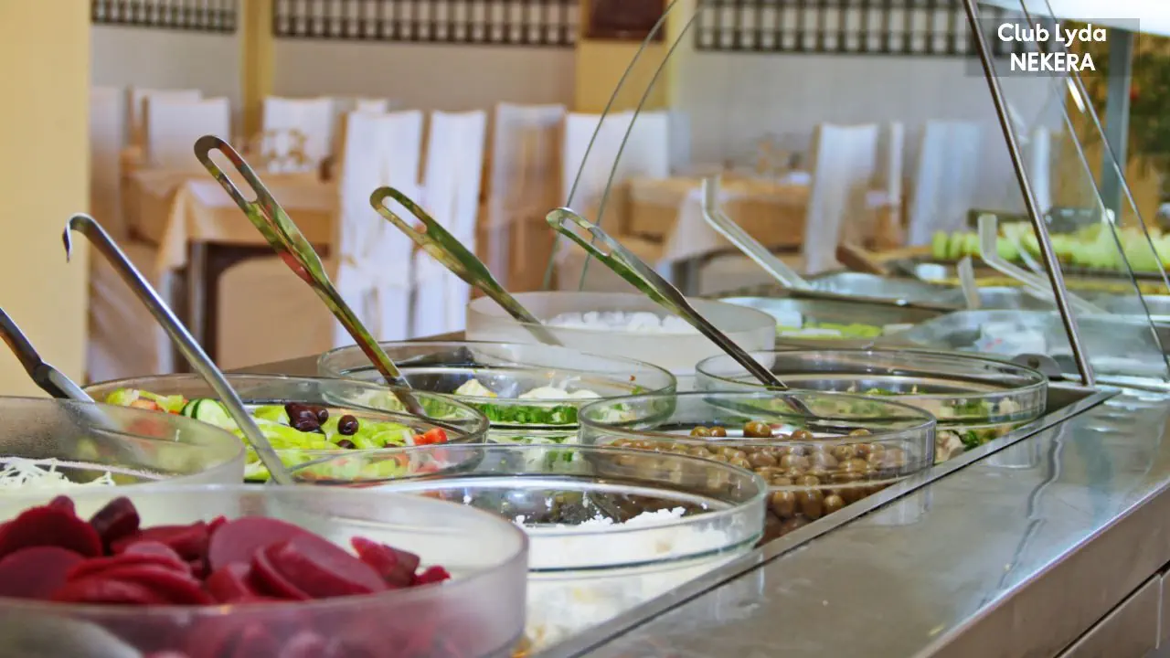 trzy posiłki serwowane w formie bufetu: śniadanie (7.30 – 9.30), obiad (12.30 – 14.30), kolacja (19.00 – 21.00). Dodatkowo przekąski słodkie i słone (11.30 – 12.30), kawa i herbata (16.00 – 17.30). Lokalne napoje alkoholowe i bezalkoholowe w cenie, świeże soki, importowane napoje alkoholowe i bezalkoholowe za dodatkowa opłatą.
