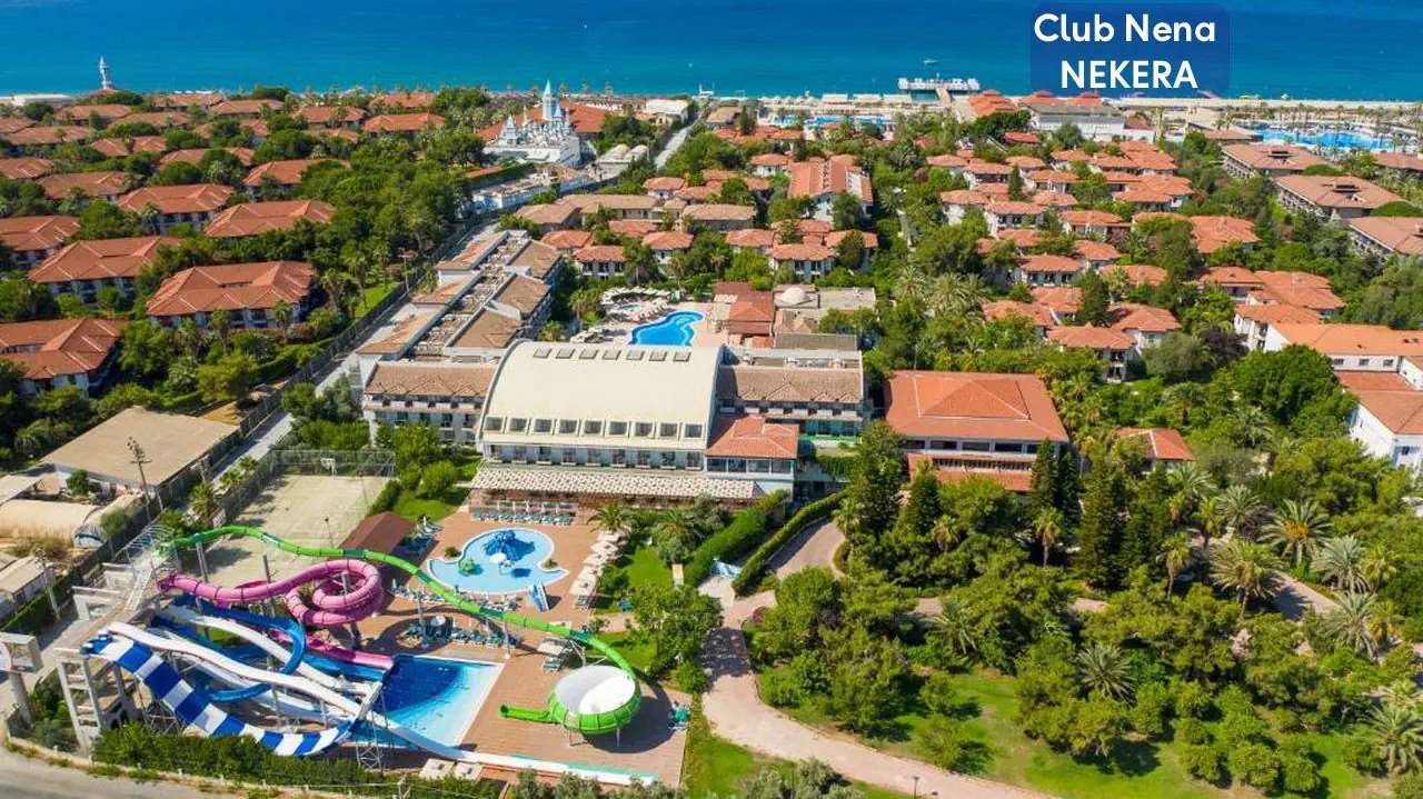 Club Nena to pięciogwiazdkowy kompleks wypoczynkowy all inclusive usytuowany bezpośrednio przy Morzu Śródziemnym w turystycznej miejscowości Kizilagac w regionie Manavgat, niedaleko Side. Otoczony zielonym ogrodem, z rozległą ofertą basenów, aquaparkiem, animacjami i bogatą gastronomią, stanowi doskonały wybór na rodzinne wakacje, wypoczynek par czy aktywne spędzanie czasu nad morzem.