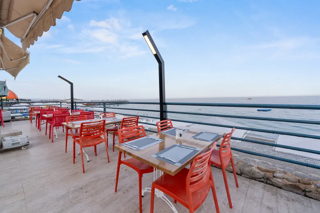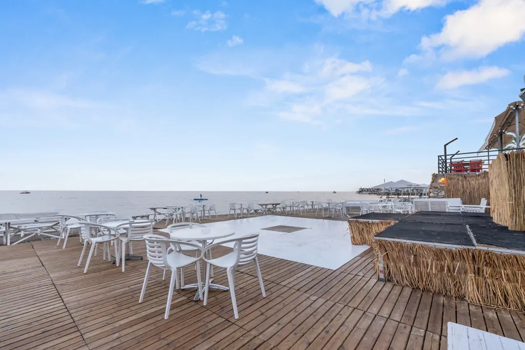 Prywatna, Żwirowa, Żwirowe zejście do morza, odleglość do plaży: 0 km, długość plaży: 230 m, pomost na plaży, Parasole - bezpłatnie, Leżaki - bezpłatnie, Ręczniki - bezpłatnie, Beach Bar - bezpłatnie, Prysznic