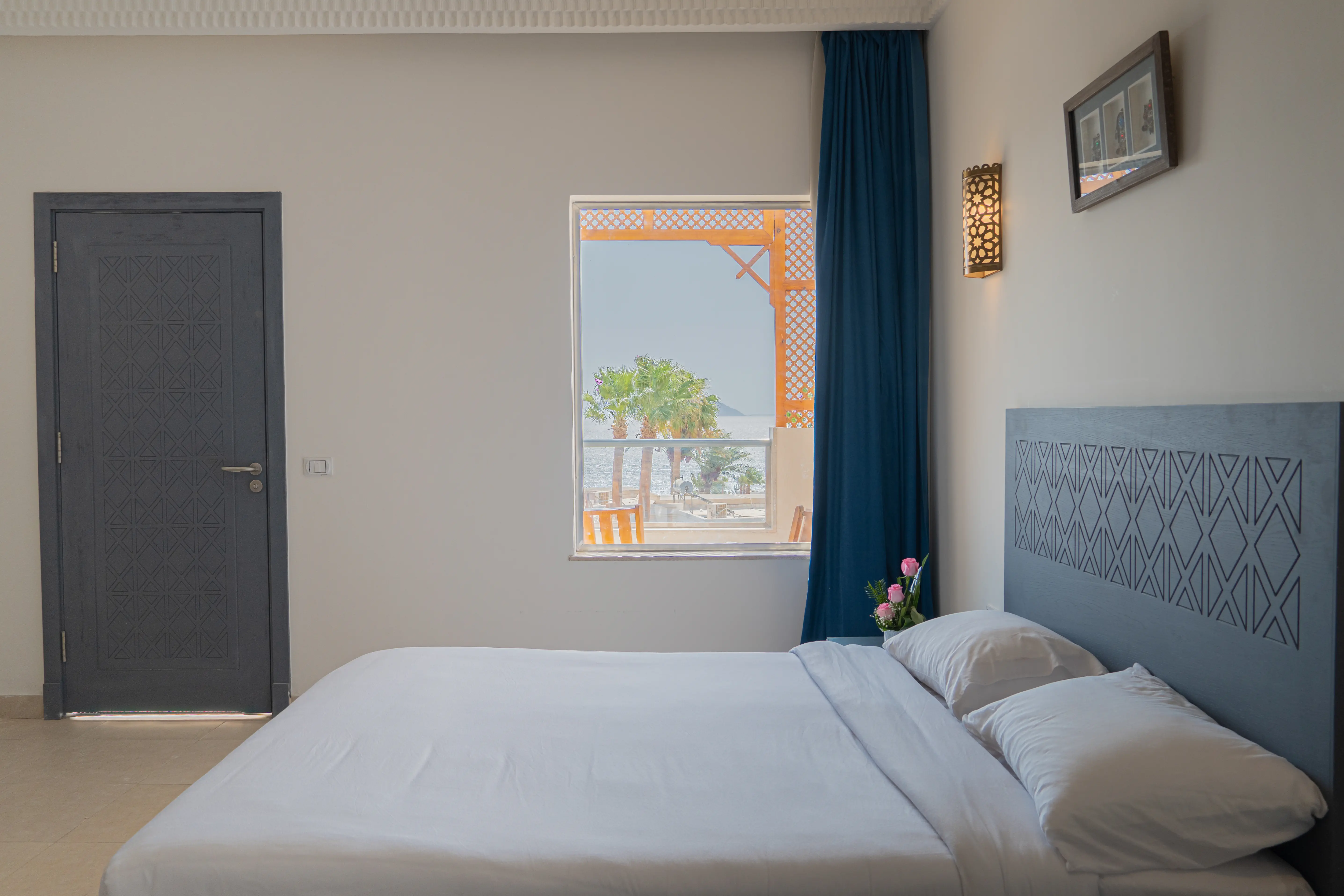 Dla max. 3 osób, Przestrzeń zewnętrzna: Taras, Kanały telewizji: Angielski, Telefon w pokoju, prysznic, Powierzchnia pokoju: ok. 34 - 36 m2, Dostawka: sofa, Rodzaj podłogi: płytki, Sprzątanie codziennie, 1 sypialnia, Nieznany, Maksymalna liczba osób dorosłych: 3, Maksymalna liczba dzieci: 2, Frontalny widok na morze, Liczba łazienek: 1, Liczba toalet: 1, Zestaw do parzenia kawy i herbaty, Klimatyzacja: Klimatyzacja indywidualna