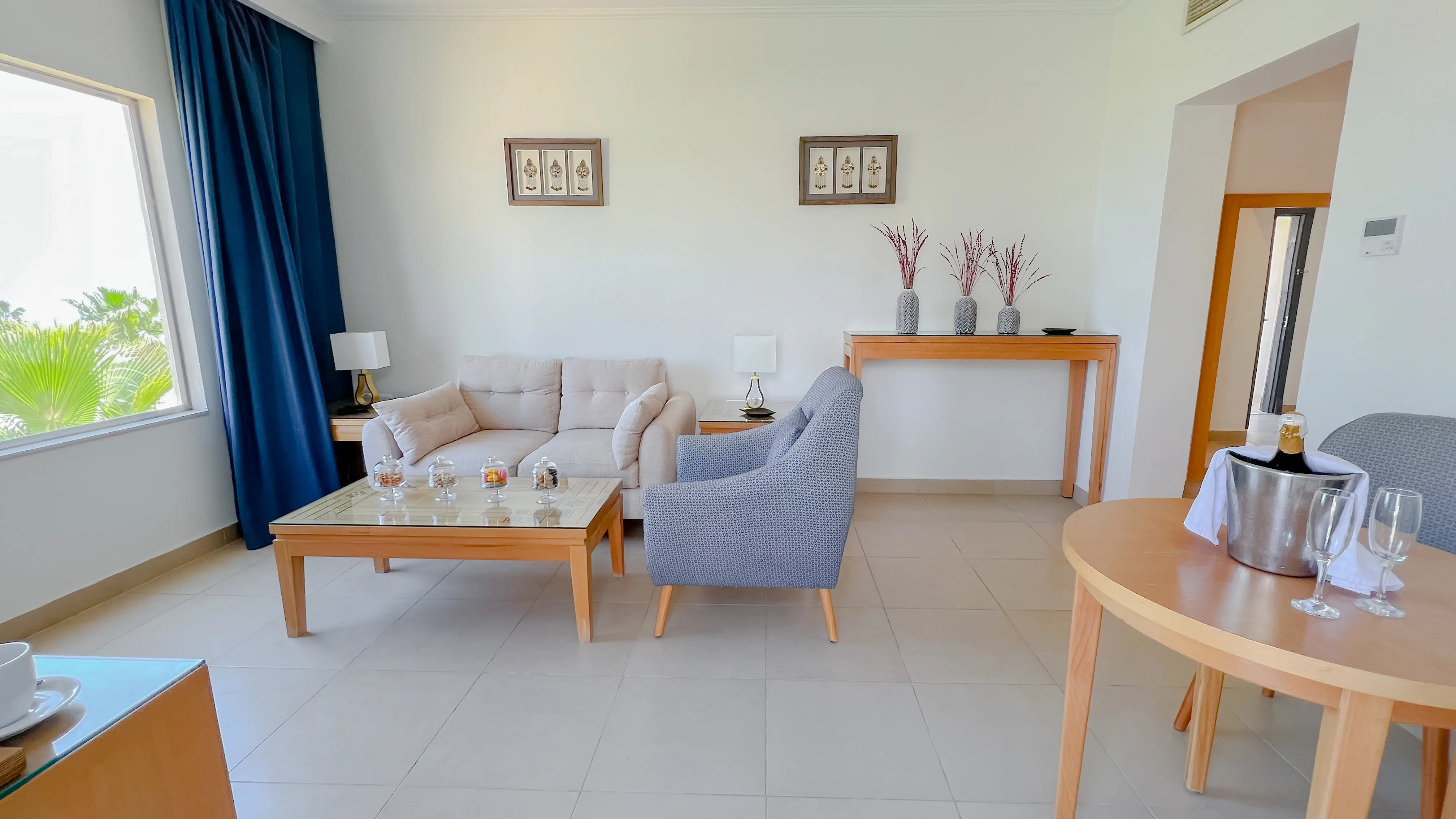 Dla max. 3 osób, Przestrzeń zewnętrzna: Taras, Kanały telewizji: Angielski, Telefon w pokoju, prysznic, Powierzchnia pokoju: ok. 34 m2, Dostawka: sofa, Rodzaj podłogi: płytki, Sprzątanie codziennie, 1 sypialnia, 3, Maksymalna liczba osób dorosłych: 3, Maksymalna liczba dzieci: 2, Widok na basen, Liczba łazienek: 1, Liczba toalet: 1, Zestaw do parzenia kawy i herbaty, Klimatyzacja: Klimatyzacja indywidualna