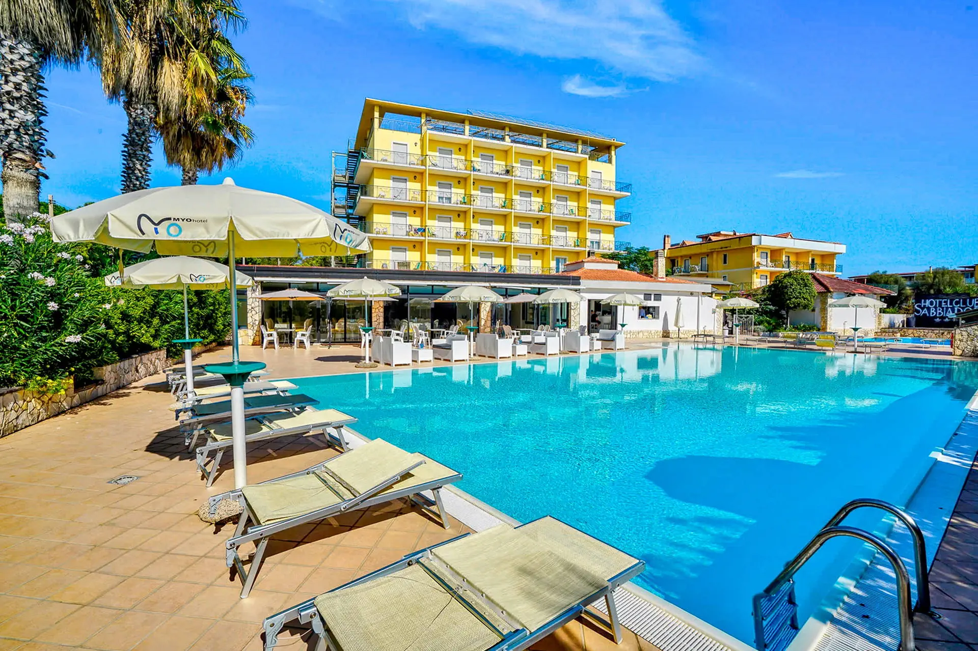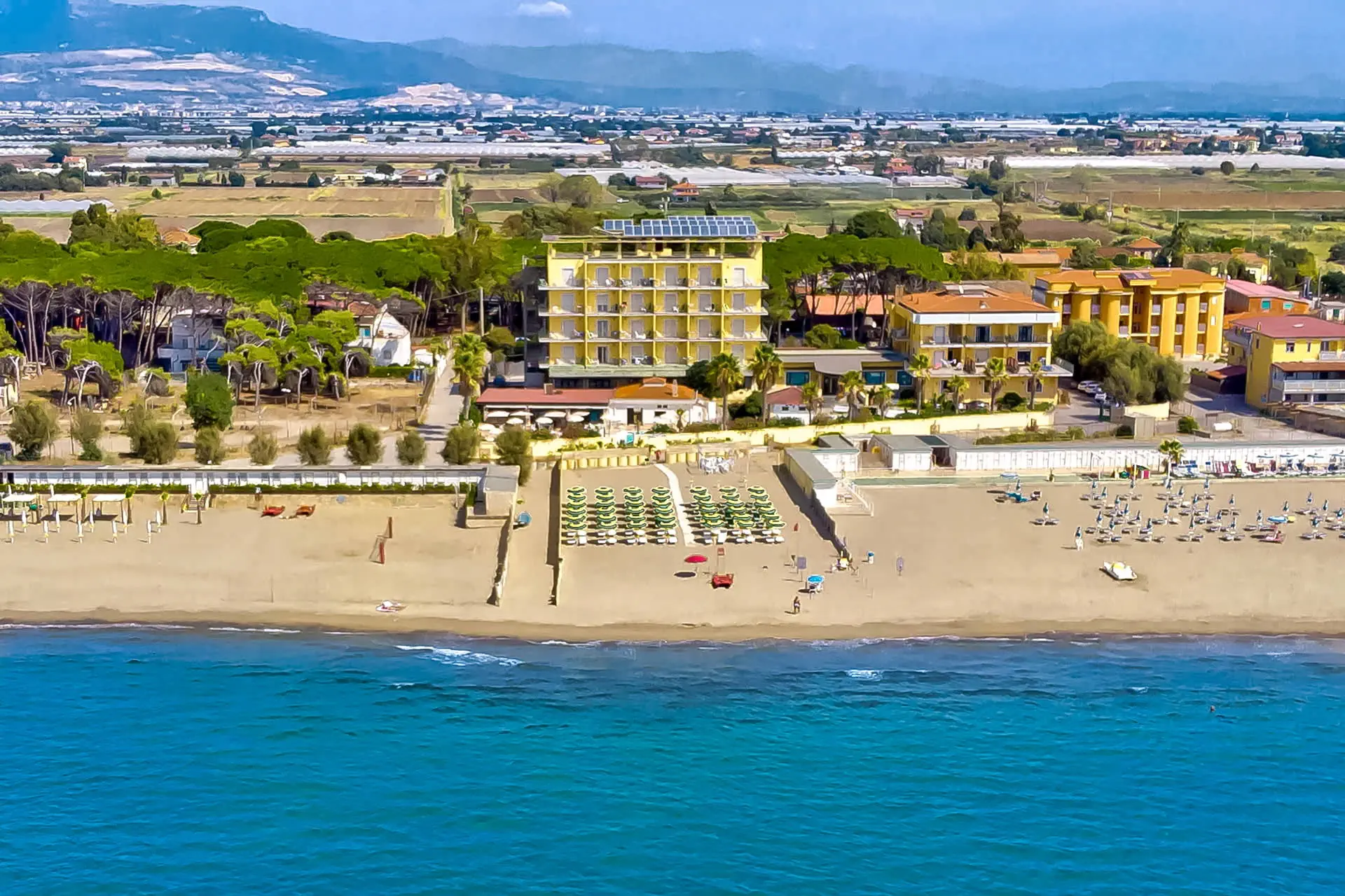 Położenie Hotel usytuowany w regionie Kampania, położony w południowej części Włoch, w pobliżu Parku Narodowego Cilento, z widokiem na zatokę Amalfitańską. Obiekt zlokalizowany jest pomiędzy turystycznymi miejscowościami Salerno i Paestum, w niewielkiej miejscowości Lido Lago, gdzie znajdują się nieliczne sklepy, bary i restauracje. Ok. 12 km od miejscowości Battipaglia i 85 km do lotniska w Neapolu. Plaża Hotel zlokalizowany ok. 50 m od piaszczystej, prywatnej plaży (przejście przez uliczkę, z łagodnym zejściem do morza). Bezpłatny serwis plażowy od 3 rzędu (1 leżak, 1 krzesełko i parasol na pokój). Do dyspozycji gości Recepcja, winda, płatny sejf, restauracja główna, bar, nowowybudowany basen z bezpłatnymi leżakami i parasolami (wymagane czepki, dostępne w recepcji hotelu, koszt ok. 2 Eur) oraz brodzik dla dzieci. Ponadto: sala telewizyjna, czytelnia, sala konferencyjna, pralnia, wypożyczalnia samochodów, parking. Hotel akceptuje karty kredytowe. Pokoje Hotel posiada 62 komfortowe pokoje standardowe (możliwość 1 dostawki) zlokalizowane w budynkach dwu,- i czteropiętrowym. Pokoje wyposażone w: łazienkę (prysznic lub wanna, suszarka do włosów), klimatyzację, TV Sat., (brak polskich kanałów), telefon, minibar (konsumpcja dodatkowo płatna). Większość pokoi posiada balkon lub taras. Pokoje z widokie na morze za dopłatą i na potwierdzenie. Wyżywienie Śniadania w formie bufetu, lunche oraz obiadokolacje serwowane do stolika (przystawki, bufet sałatkowy). W cenie do lunchu i obiadokolacji: woda, 1/2 l wina domowego na osobę. W godzinach 15:00-17:00 oraz 21:00-23:00 napoje: woda, soki (3 rodzaje), napoje typu cola, piwo. Pozostałe napoje do posiłków dodatkowo płatne. Możliwość rezerwacji posiłków wegetariańskich oraz bezglutenowych. Program sportowy i animacyjny Hotel prowadzi animacje dla dzieci oraz dla dorosłych. Mini klub dla dzieci w wieku 4-10 lat prowadzony przez wykwalifikowaną kadrę, m.in.: zajęcia sportowe, warsztaty, gry zespołowe, lekcje tańca. Dla najmłodszych figloklub: 6 x w tygodniu zajęcia dla dzieci z polskim animatorem od połowy czerwca do połowy września. Ponadto: wypożyczalnia rowerów w cenie, sala gier, tenis stołowy, ping pong, bule, fitness, siatkówka plażowa, amfiteatr, dyskoteka, wieczorne spektakle, piano bar w szczycie sezonu (od czerwca do sierpnia). Internet Bezpłatny Internet Wi-Fi w miejscach ogólnodostępnych hotelu. Kategoria lokalna **** Naszym zdaniem Hotel zlokalizowany w spokojnej okolicy. Doskonała oferta dla osób, które planują na własną rękę zwiedzanie urokliwych zakątków tej części Włoch. Polecamy także rodzinom z dziećmi ze względu na bogate animacje (również w języku polskim) oraz na bliskość do plaży. Strona www www.sabbiadorogestioni.com
