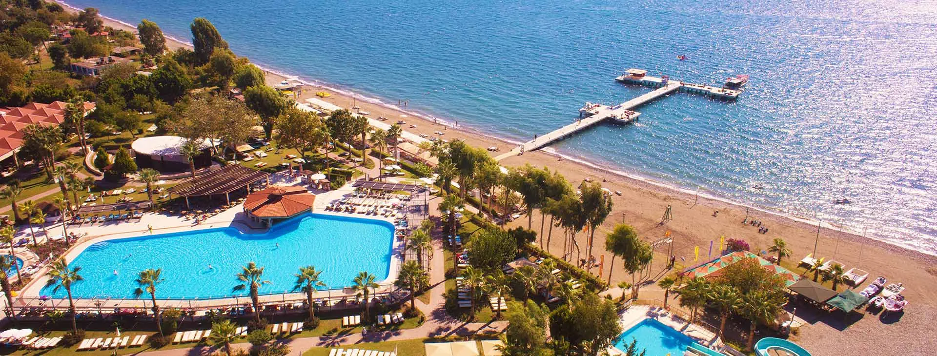 Położenie: Hotel otoczony pięknymi ogrodami z drzewami pomarańczowymi. Znajduje się w odległości ok. 17 km od centrum turystycznego miasta Fethiye oraz ok. 36 km od lotniska w Dalamanie. Przed hotelem znajduje się przystanek lokalnego autobusu. Plaża: Bezpośrednio przy piaszczysto-żwirowej, prywatnej plaży. Leżaki, parasole i ręczniki kąpielowe dostępne bezpłatnie. Zalecane obuwie ochronne.Pawilony dodatkowo płatne. Do dyspozycji gości: Recepcja 24 h, lobby, sala telewizyjna, restauracja główna Veranda, 3 restauracje a’la catre: włoska, z owocami morza, międzynarodowa (bezpłatna 2 razy na pobyt, wymagana rezerwacja), 7 barów, baseny, jeden z 3 zjeżdżalniami (czynne w określonych godz.). Leżaki, parasole i ręczniki kąpielowe dostępne bezpłatnie. Dla najmłodszych: dwa brodziki, zjeżdżalnie, plac zabaw, mini zoo. Ponadto za dodatkową wypłatą: fryzjer, pralnia, wypożyczalnia aut, lekarz, fotograf. Wyżywienie: Ultra All Inclusive: wczesne śniadanie (07:00-07:30), śniadanie (07:00-10:30), późne śniadanie (10:30-11:30), lunch (12:30-14:00), obiadokolacja (19:00-21:30). Przekąski w ciągu dnia (12:30-17:30), tureckie naleśniki i lody (11:00-17:30), nocna przekąska (23:00-24:00), nocne kanapki (01:30-02:00). Lokalne napoje bezalkoholowe i alkoholowe oraz część alkoholi importowanych dostępne 24 h w wybranym barze, w pozostałych w godzinach otwarcia. Dodatkowo płatne: pozostałe importowane napoje alkoholowe, soki ze świeżych owoców. Program sportowy i animacyjny: Hotel oferuje bogaty program animacyjny. W ciągu dnia zabawy przy basenie, aqua aerobik, lekcje tańca, wieczorne show. Ponadto: tenis, boisko do koszykówki, siatkówka plażowa, siłownia, tenis stołowy, mini piłka nożna, mini golf, łucznictwo, rzutki, boccia, szachy. Dodatkowo płatne: centrum SPA, bilard, sporty wodne na plaży. Ponadto: dyskoteka na świeżym powietrzu. Internet: Internet Wi-Fi dostępny bezpłatnie w lobby oraz w pokojach. Kategoria lokalna: ***** Strona www: