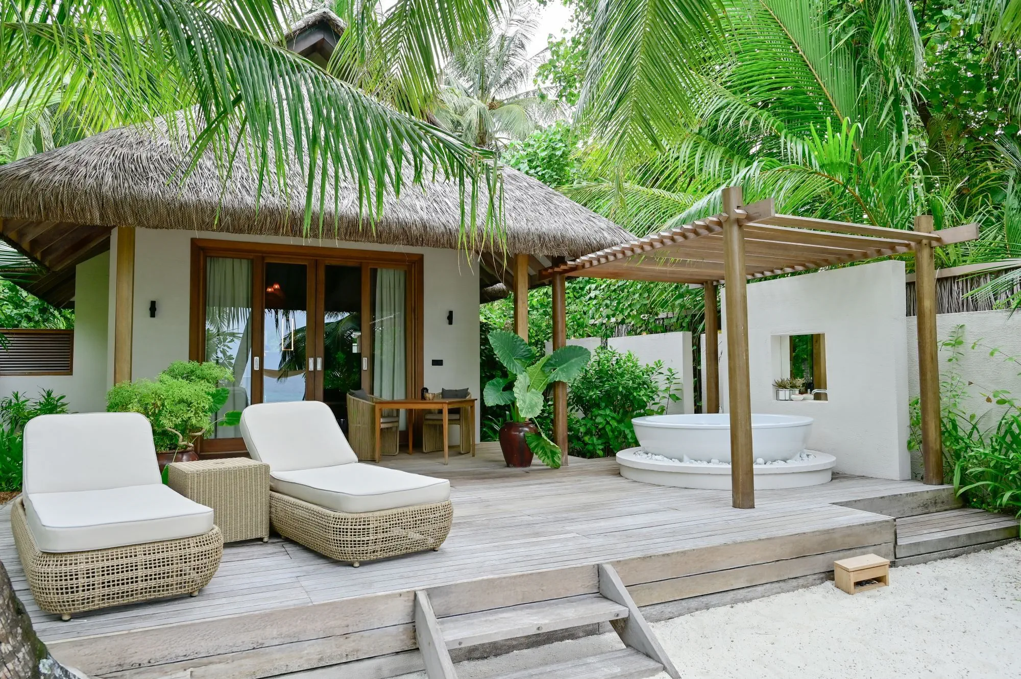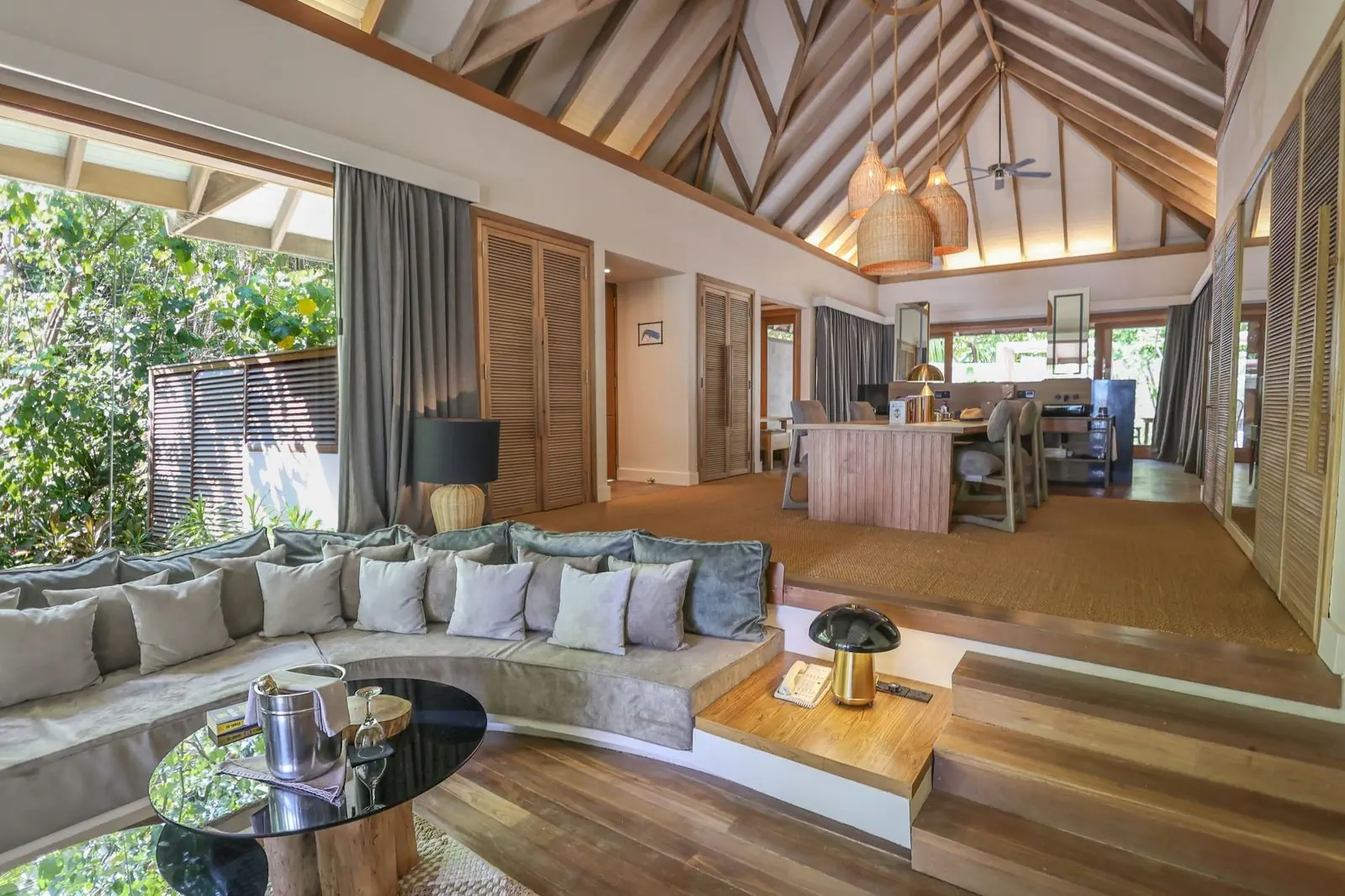 Dla max. 4 osób, Kanały telewizji: Angielski, Telefon w pokoju, wanna i prysznic , Powierzchnia pokoju: ok. 198 m2, Dostawka: łóżko standardowe, Rodzaj podłogi: drewno, Sprzątanie codziennie, część jadalniana, 1 sypialnia, Maksymalna liczba osób dorosłych: 3, Maksymalna liczba dzieci: 2, Frontalny widok na plażę, Bezpośredni dostęp do plaży, Prywatny basen, Liczba łazienek: 1, Liczba toalet: 1, Zestaw do parzenia kawy i herbaty, Klimatyzacja: Klimatyzacja indywidualna