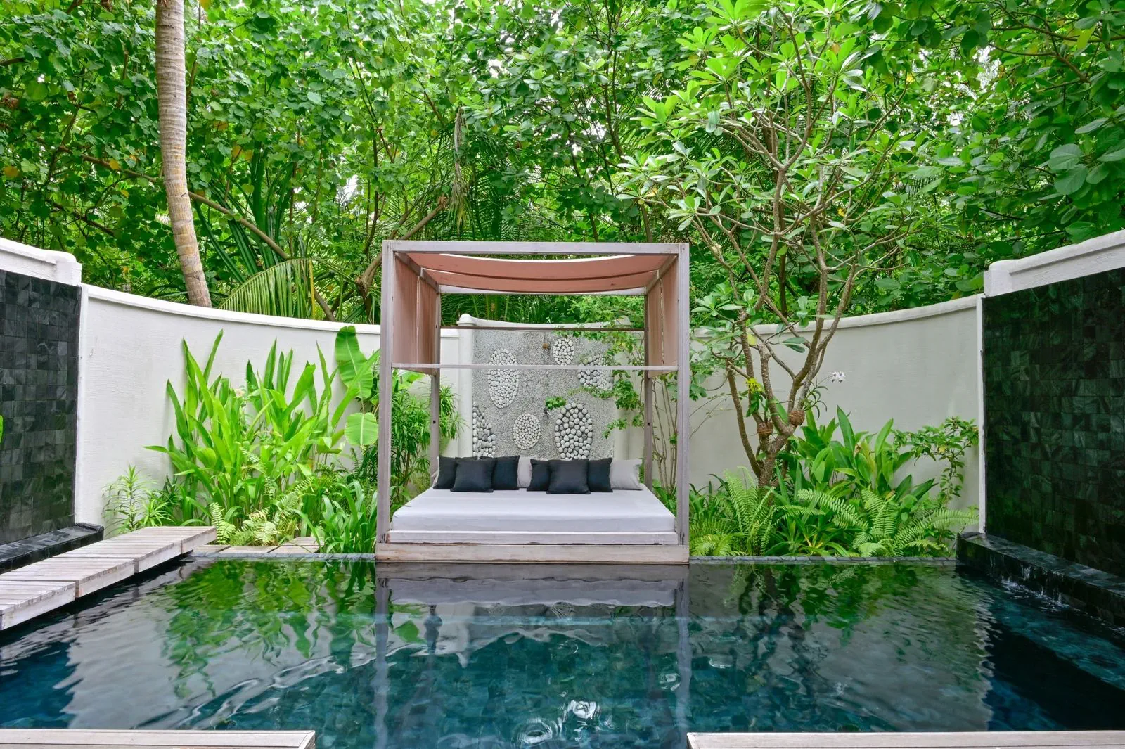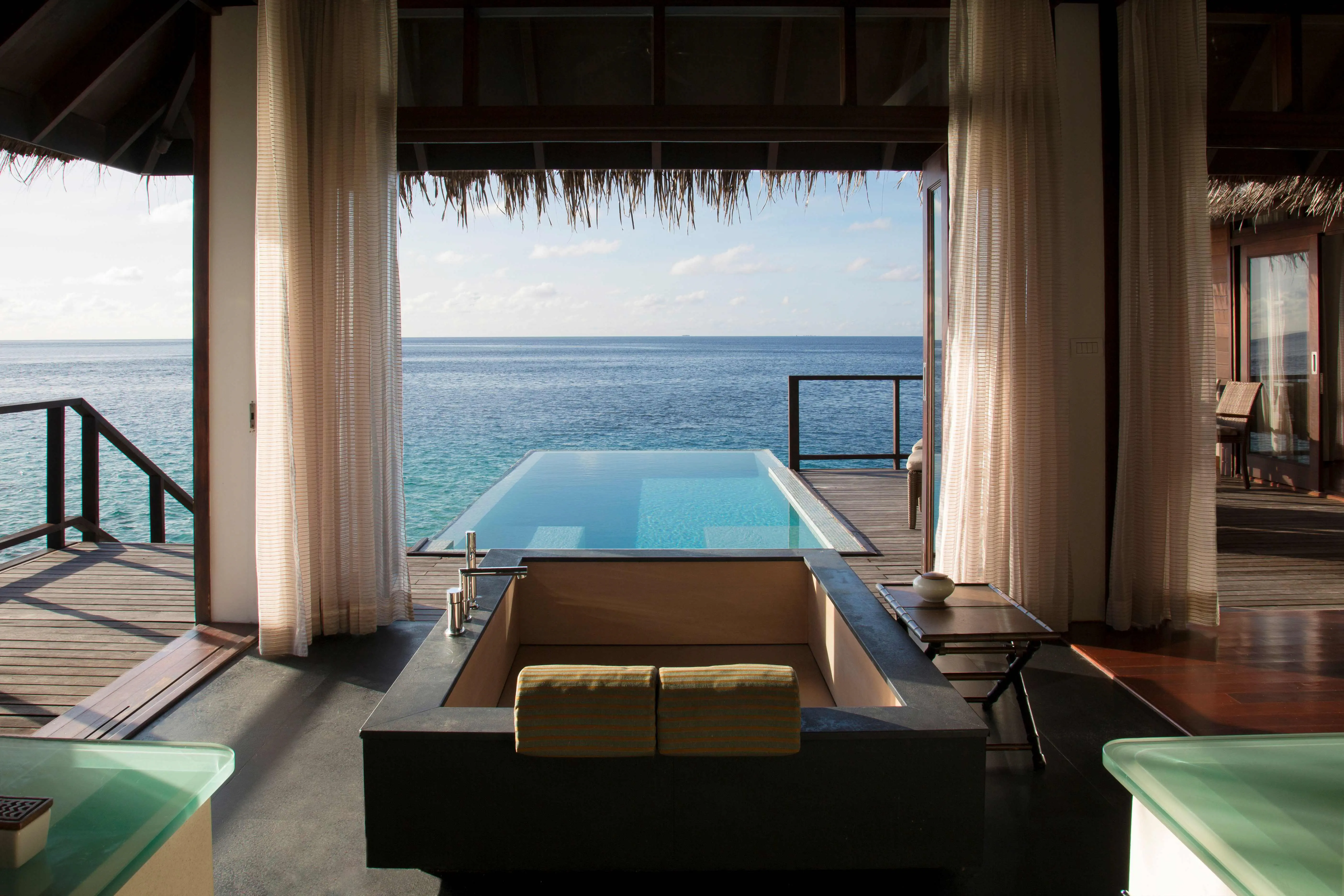 Dla max. 4 osób, Przestrzeń zewnętrzna: Taras, Kanały telewizji: Angielski, Telefon w pokoju, wanna i prysznic , Powierzchnia pokoju: ok. 184 m2, Dostawka: łóżko standardowe, Rodzaj podłogi: drewno, Sprzątanie codziennie, Salon, 1 sypialnia, Drzwi przesuwne, Maksymalna liczba osób dorosłych: 3, Maksymalna liczba dzieci: 2, Concierge (bezpłatnie), Widok na lagunę, Prywatny basen, Liczba łazienek: 1, Liczba toalet: 1, Zestaw do parzenia kawy i herbaty, Klimatyzacja: Klimatyzacja indywidualna