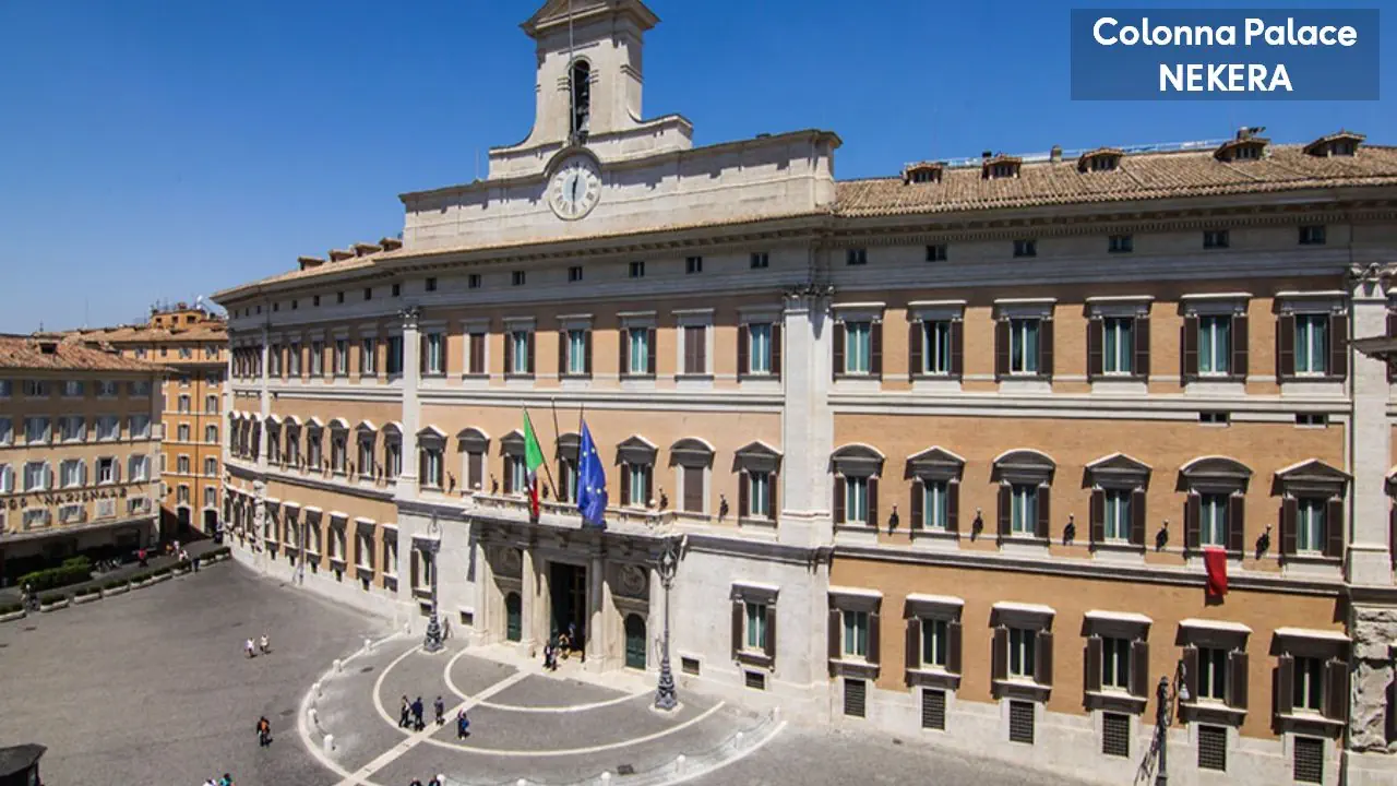 Zlokalizowany jest w samym sercu Rzymu, przy Piazza Montecitorio, naprzeciwko siedziby włoskiego parlamentu. W bliskiej odległości znajdują się najważniejsze zabytki miasta Panteon ok. 400 m, Fontanna di Trevi ok. 500 m, Piazza Navona ok. 600 m, Schody Hiszpańskie ok. 900 m, Koloseum ok. 2 km. Stacja kolejowa Roma Termini oddalona jest o ok. 2 km, a lotnisko Fiumicino o ok. 30 km.