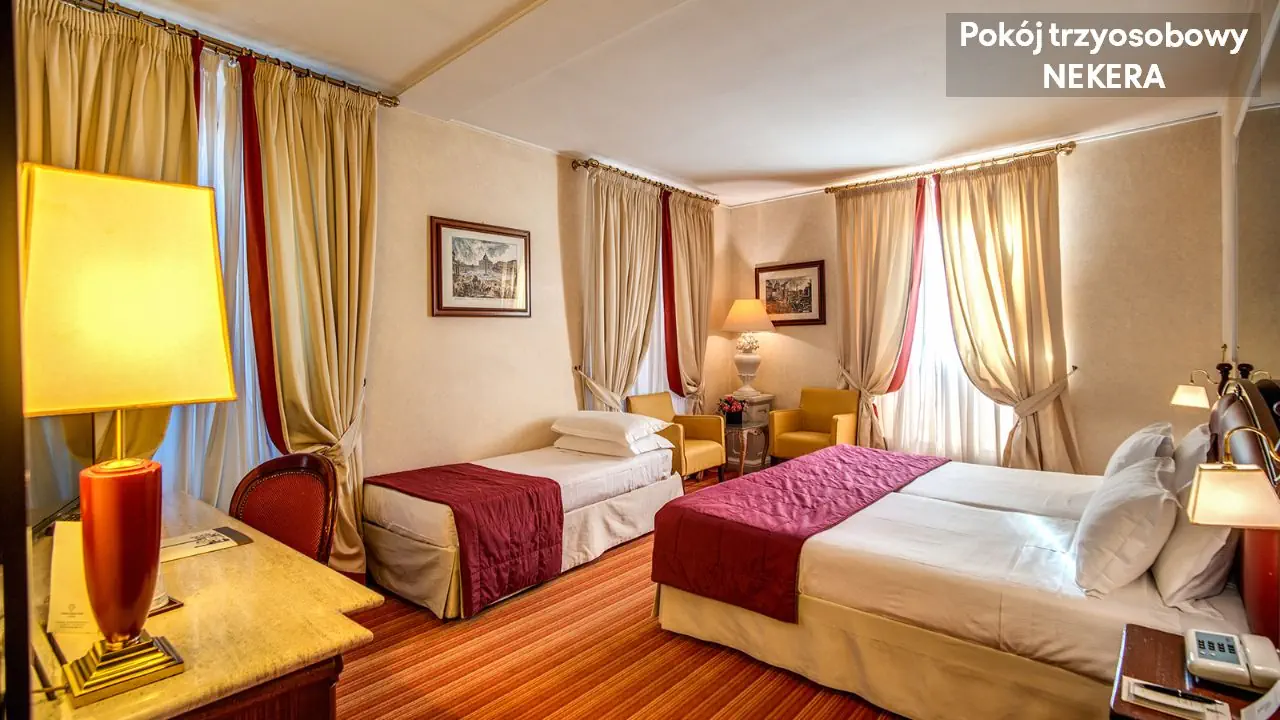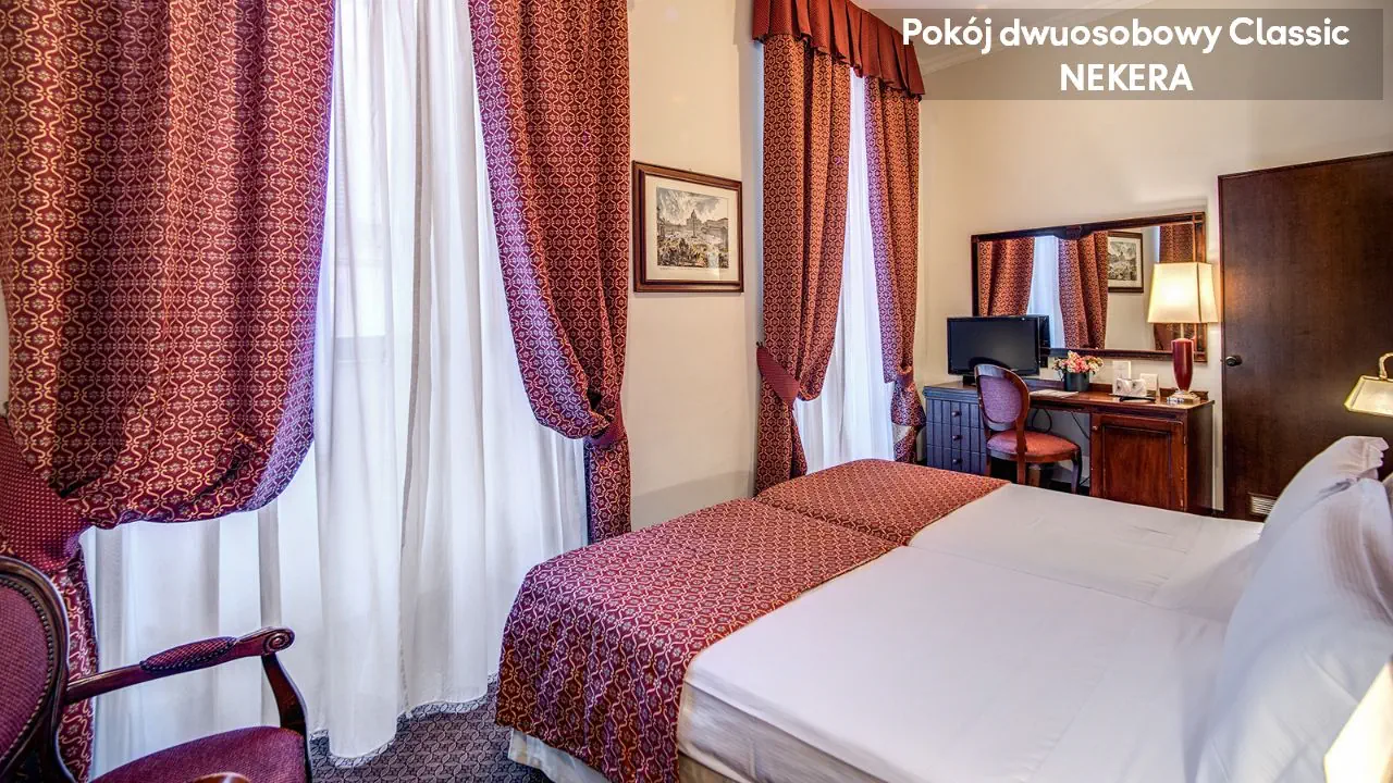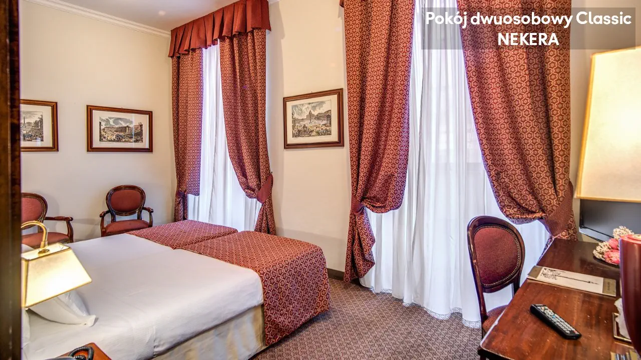 Hotel oferuje 102 eleganckie pokoje w kilku piętrowym budynku z windą. Do dyspozycji Gości: 24 h recepcja z lobby, usługa concierge, przechowalnia bagażu, sejf, restauracja śniadaniowa, bar, taras na dachu z panoramicznym widokiem na Rzym, sala konferencyjna. Dodatkowo płatne: pralnia, usługa prasowania, wynajem samochodów.