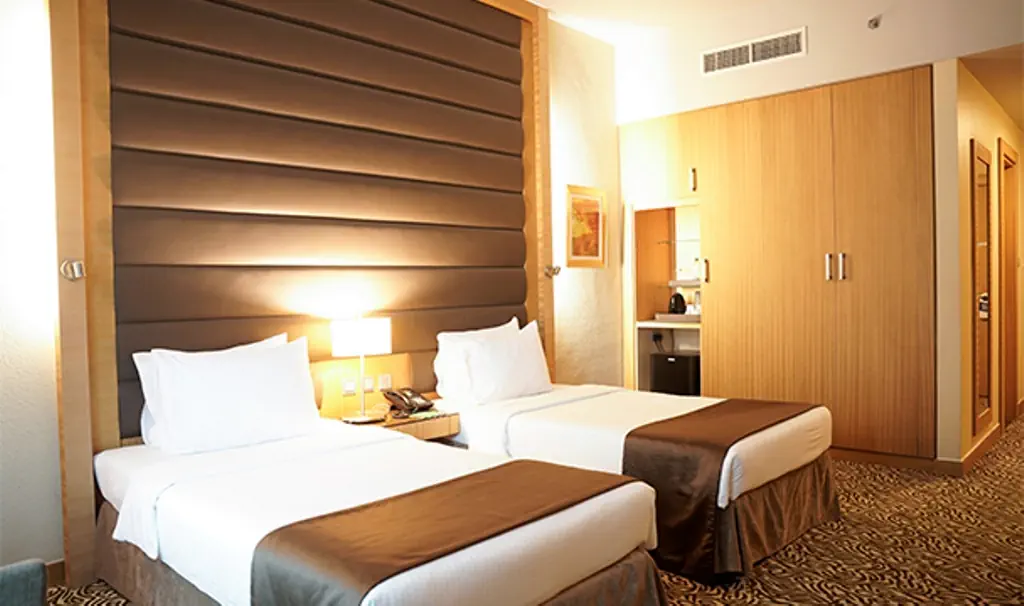 Dla max. 4 osób, Kanały telewizji: Angielski, Telefon w pokoju, wanna, Powierzchnia pokoju: ok. 26 - 28 m2, Dostawka: łóżko rozkładane, Rodzaj podłogi: wykładzina, Sprzątanie codziennie, 1 sypialnia, Maksymalna liczba osób dorosłych: 3, Maksymalna liczba dzieci: 2, Widok na miasto, Liczba łazienek: 1, Liczba toalet: 1, Zestaw do parzenia kawy i herbaty, Klimatyzacja: Klimatyzacja indywidualna