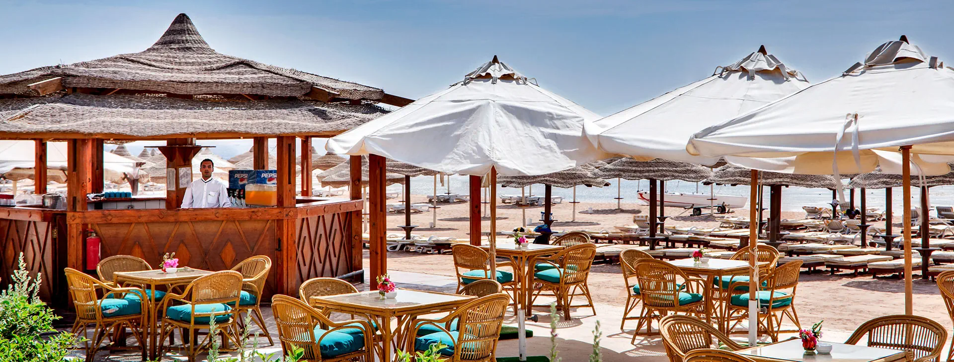Położenie: Przestronny i elegancki hotel, który szczyci się idealną lokalizacją na przylądku Ras Nasrani, oferując tym samym niezapomniany widok na wyspę Tiran. Położony jest jedynie ok. 3 km od lotniska, a ok. 15 km od centrum rozrywkowego Naama Bay. Plaża: Obiekt posiada własną piaszczysto - kamienistą plażę (wejście do morza z molo), na którą można się dostać ulicą lub tunelem (plaża oddalona jest o ok. 300 m od hotelu). Leżaki, parasole oraz ręczniki na plaży - bezpłatne. Do dyspozycji gości: Hotel, odnowiony w 2018 r., składa się z budynku głównego oraz 2-piętrowych pawilonów. Recepcja 24 - godz. z bezpłatnymi sejfami, mini-market, kantor wymiany walut. Hotel posiada restaurację główną Mermaid (dania kuchni międzynarodowej), restaurację Shark’s Bay, kilka barów (przy basenie, przy plaży oraz w lobby), a także bar z shishą. Goście mogą korzystać z dużego lagunowego basenu zewnętrznego i brodzika dla dzieci. Leżaki, parasole oraz ręczniki dostępne przy basenie - bezpłatnie. Do dyspozycji za dopłatą centrum SPA i pralnia Pokoje: Hotel oferuje swoim gościom zakwaterowanie w jednym z 248 pokoi. Pokoje typu standard (37 m2), wyposażone w łózko małżeńskie lub 2 łóżka pojedyncze, posiadają indywidualnie sterowaną klimatyzację, telewizję satelitarną, sejf, mini bar (na życzenie, za dopłatą), zestaw do parzenia kawy i herbaty (na życzenie, za dopłatą) oraz (prysznic lub wanna, wc, suszarka do włosów). Wszystkie pokoje posiadają balkon lub taras z widokiem na ogród lub morze. Wyżywienie: Formuła All Inclusive: śniadania (07:00 - 10:00), obiady (12:30 - 14:30) oraz kolacje (18:30 - 21:00) w formie bufetu serwowane w restauracji głównej Mermaid. W ciągu dnia przekąski w barze przy basenie (11:00 - 12:00) i w restauracji Shark's Bay (12:30 - 14:30). Lokalne alkohole i napoje bezalkoholowe serwowane w 4 barach na terenie hotelu. Aquarius bar przy basenie (10:00 - 17:00), Lobby bar (11:00 - 23:00), Lobby bar na tarasie widokowym (19:00 - 23:00), Palms beach bar przy plaży (10:00 do zachodu słońca). Alkohol sewowany jest od godziny 11:00. Dodatkowo płatne są: świeżo wyciskane soki, importowane alkohole, napoje butelkowane i w puszkach. Program sportowy i animacyjny: Szeroka oferta sportowa m.in.: siatkówka plażowa, siłownia, tenis stołowy, bilard, kort tenisowy (dodatkowa opłata za oświetlenie kortu i wypożyczenie sprzętu) oraz programy animacyjne. Za dodatkową opłatą można skorzystać z oferty centrum SPA: masaże, sauna, jacuzzi oraz certyfikowanego centrum nurkowego i sportów wodnych na plaży. Można również skorzystać z propozycji wieczornych programów animacyjnych. Dla dzieci mini klub (4-12 lat), brodzik, plac zabaw oraz mini disco. Internet: Bezpłatny Internet bezprzewodowy dostępny w lobby. Kategoria lokalna: **** Strona www: www.coralbeacheg.com Naszym zdaniem: Kameralny hotel z pięknym, rozległym ogrodem, dobrym zapleczem rekreacyjnym, przeznaczony dla osób szukających spokojnego wypoczynku w otoczeniu palm i basenów, jak i dla amatorów nurkowania oraz raf koralowych.