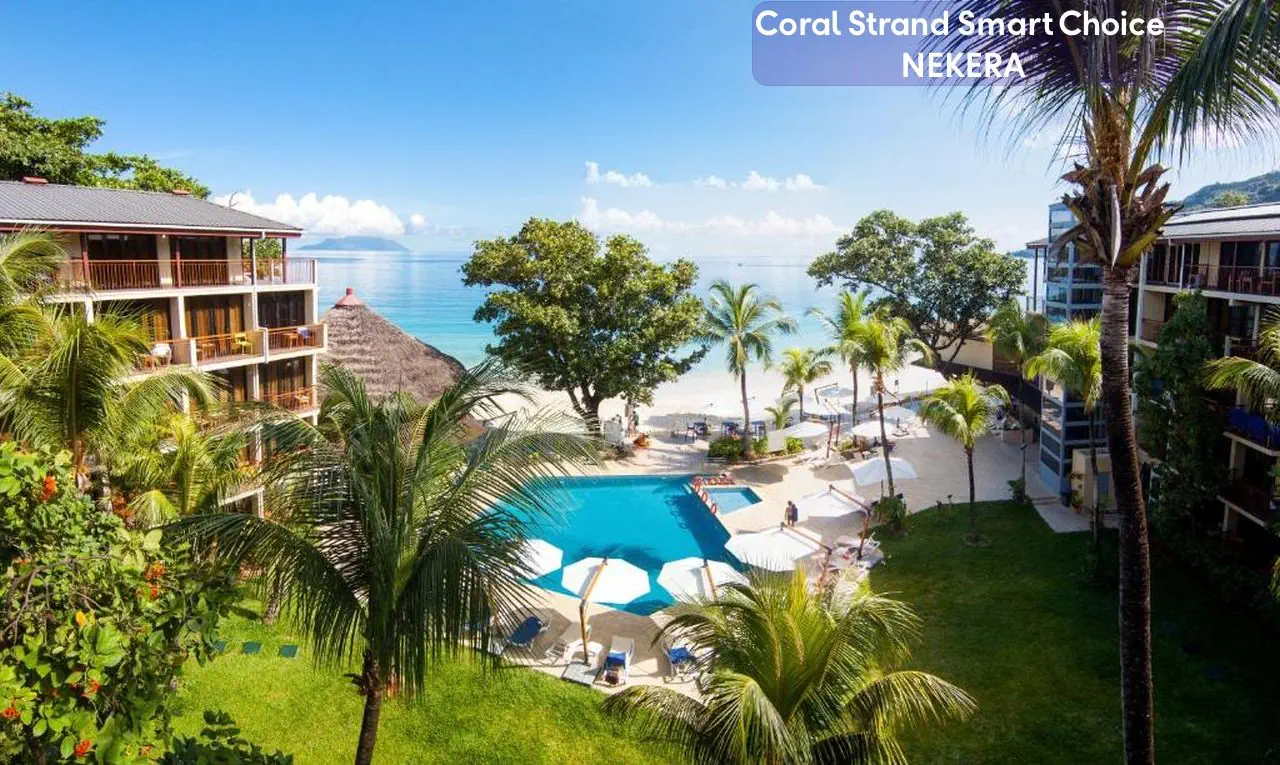 Pięciogwiazdkowy Coral Strand Smart Choice to luksusowy resort zlokalizowany bezpośrednio przy słynnej plaży Beau Vallon na północno-zachodnim wybrzeżu wyspy Mahé na Seszelach. To jedno z najbardziej popularnych miejsc wypoczynku na wyspie, oferujące komfortowy pobyt w otoczeniu tropikalnej przyrody i lazurowego oceanu.