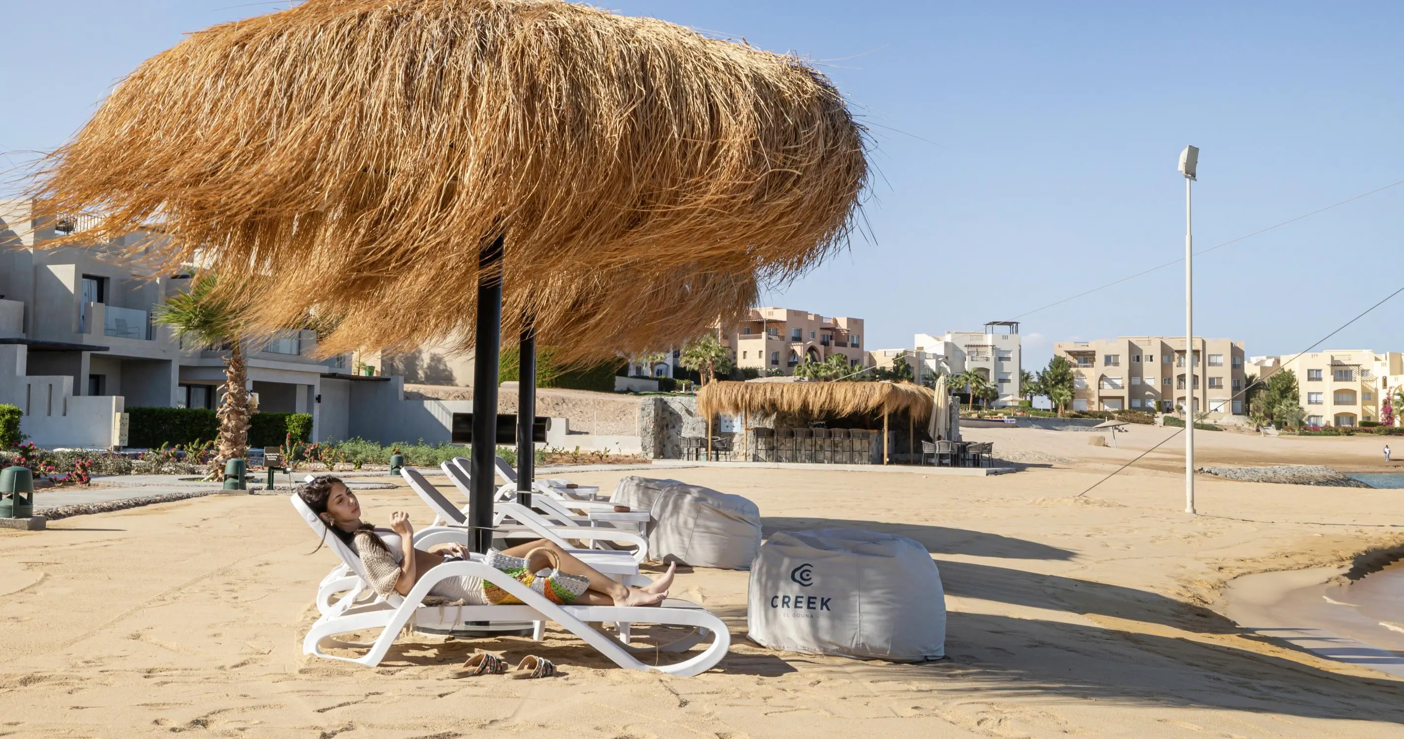 dostęp do prywatnej, piaszczystej plaży przy lagunie Morza Czerwonego bezpłatne leżaki i parasole