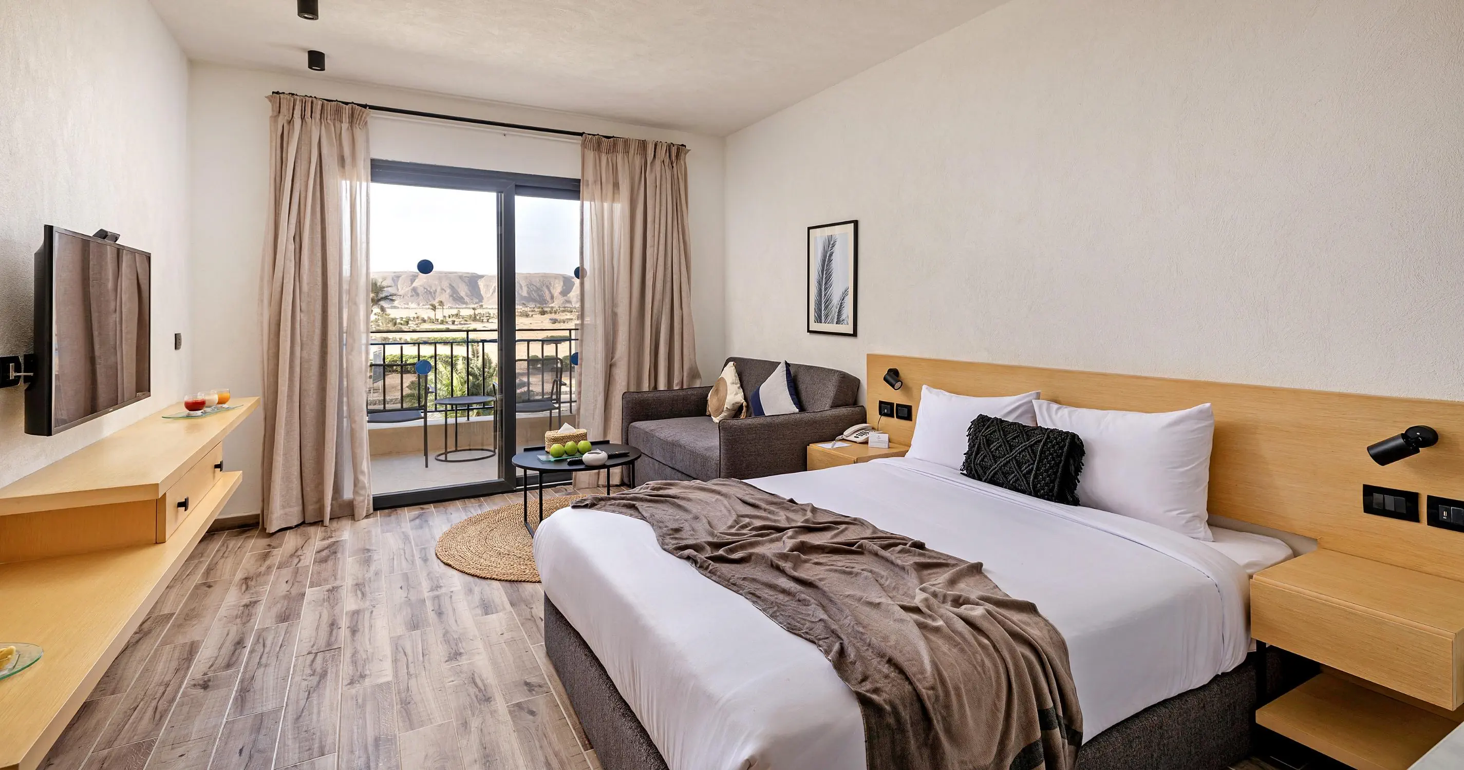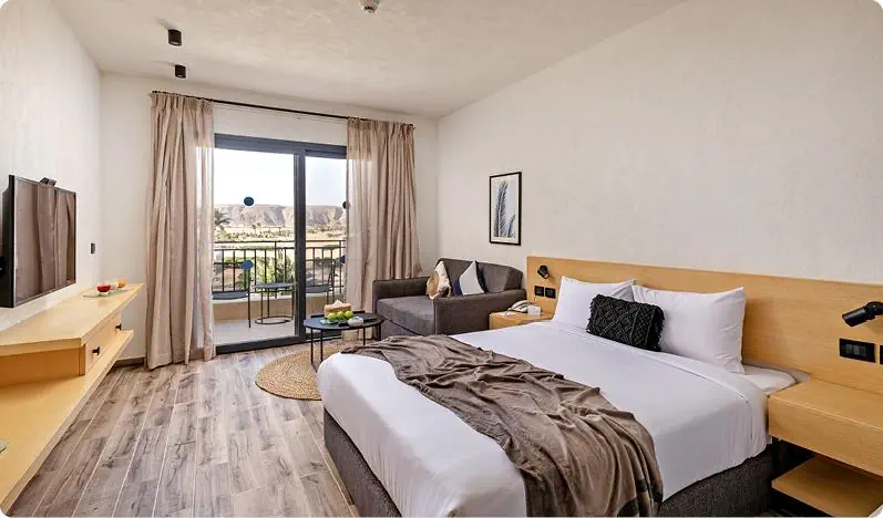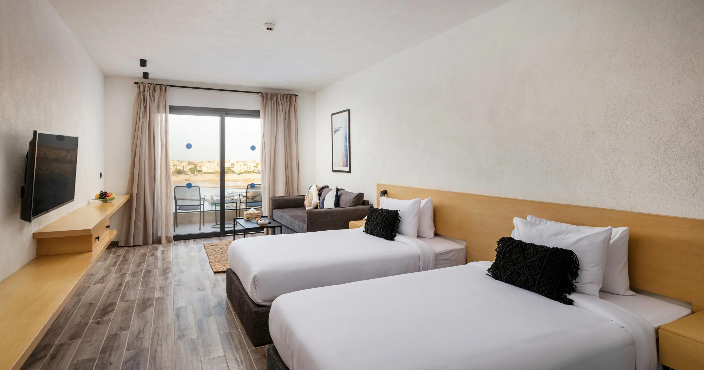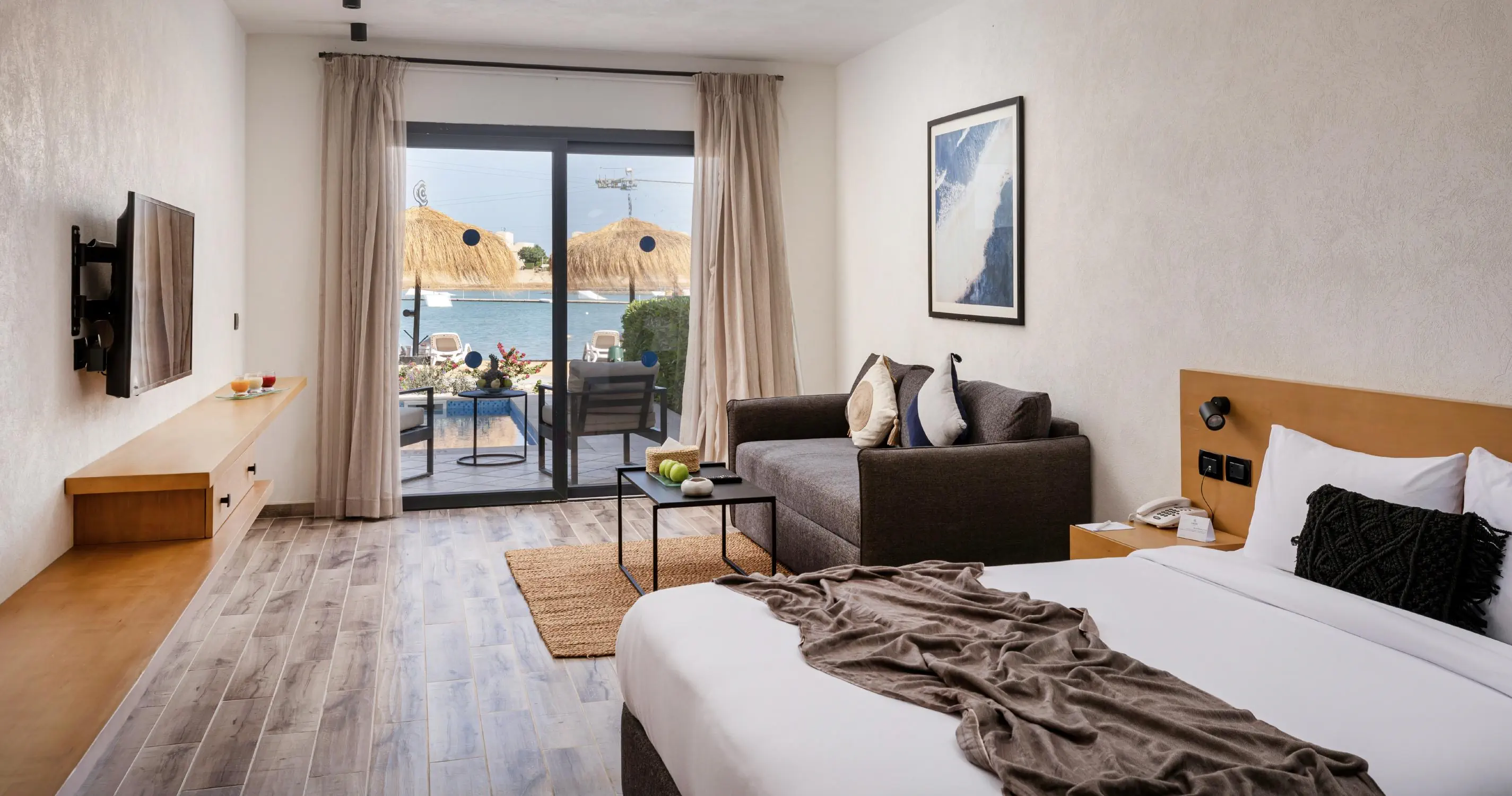 Premium Room ok. 35 m² Oddzielna sypialnia i część wypoczynkowa z sofą typu queen; dostępne łóżko dla dziecka lub dodatkowe łóżko dla trzeciej osoby Widok na góry lub na lagunę Balkon lub taras dostępne opcjonalnie: prywatny mały basen za dodatkową opłatą Junior Suite 37–42 m² Oddzielna część dzienna z sofą, minibar i aneks kuchenny dostępne opcjonalnie: prywatny mały basen za dodatkową opłatą Deluxe Suite 48–56 m² sypialnia z queen bed oraz sofa w przestronnej części wypoczynkowej Balkon lub taras Widok na lagunę lub góry Wyposażenie pokojów: klimatyzacja Wi‑Fi smart TV minibar sejf Zestaw do kawy/herbaty w pokoju, uzupełniany codziennie (w tym 2 butelki wody po 0,6 l) suszarka