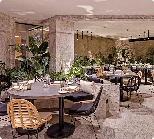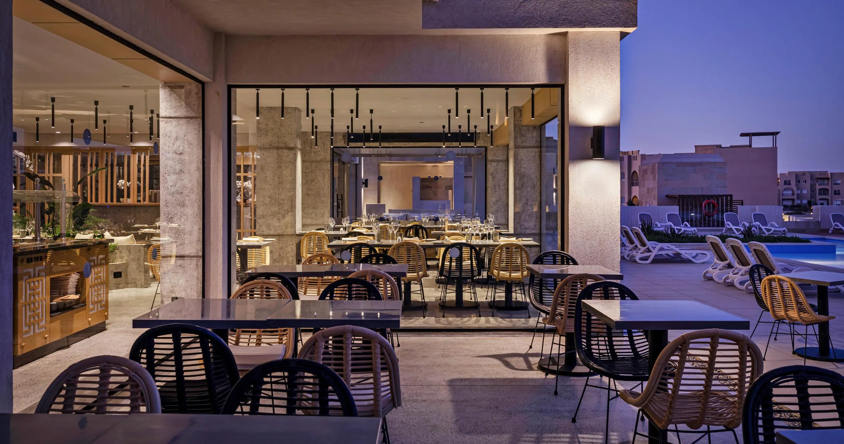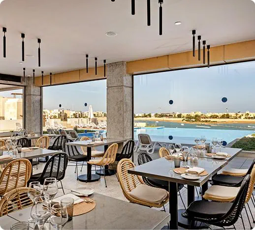 All inclusive: Restauracja „The Butler” Śniadanie – bufet z kuchnią międzynarodową Lunch – bufet z kuchnią międzynarodową Kolacja – bufet z kuchnią lokalną i międzynarodową Lobby Bar Poranne przekąski – wybór wypieków Popołudniowa herbata – kawa, herbata i ciasto Napoje bezalkoholowe (soft drinks, woda mineralna, soki w puszkach) Herbata, herbaty ziołowe, kawa Lokalne alkohole: piwo, wino, koktajle, mocne alkohole Pool Bar Napoje bezalkoholowe i gorące Lokalne piwo, koktajle i alkohole Lody – codzienny wybór smaków Beach Bar Napoje bezalkoholowe i gorące Lokalne piwo, koktajle i alkohole Mini Bar – nie jest częścią pakietu All Inclusive; na życzenie za dodatkową opłatą Wino – podawane do lunchu i kolacji w kieliszkach Dine Around Concept Goście otrzymują 10% zniżki w następujących restauracjach poza hotelem (rezerwacja i voucher dostępne w recepcji): MERBEY – kuchnia libańska THE GRILL – dania z grilla MOIS – owoce morza