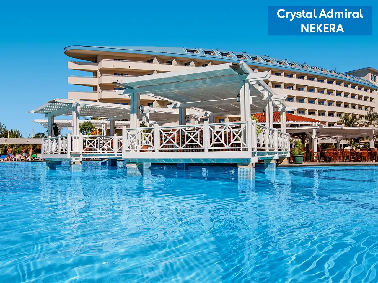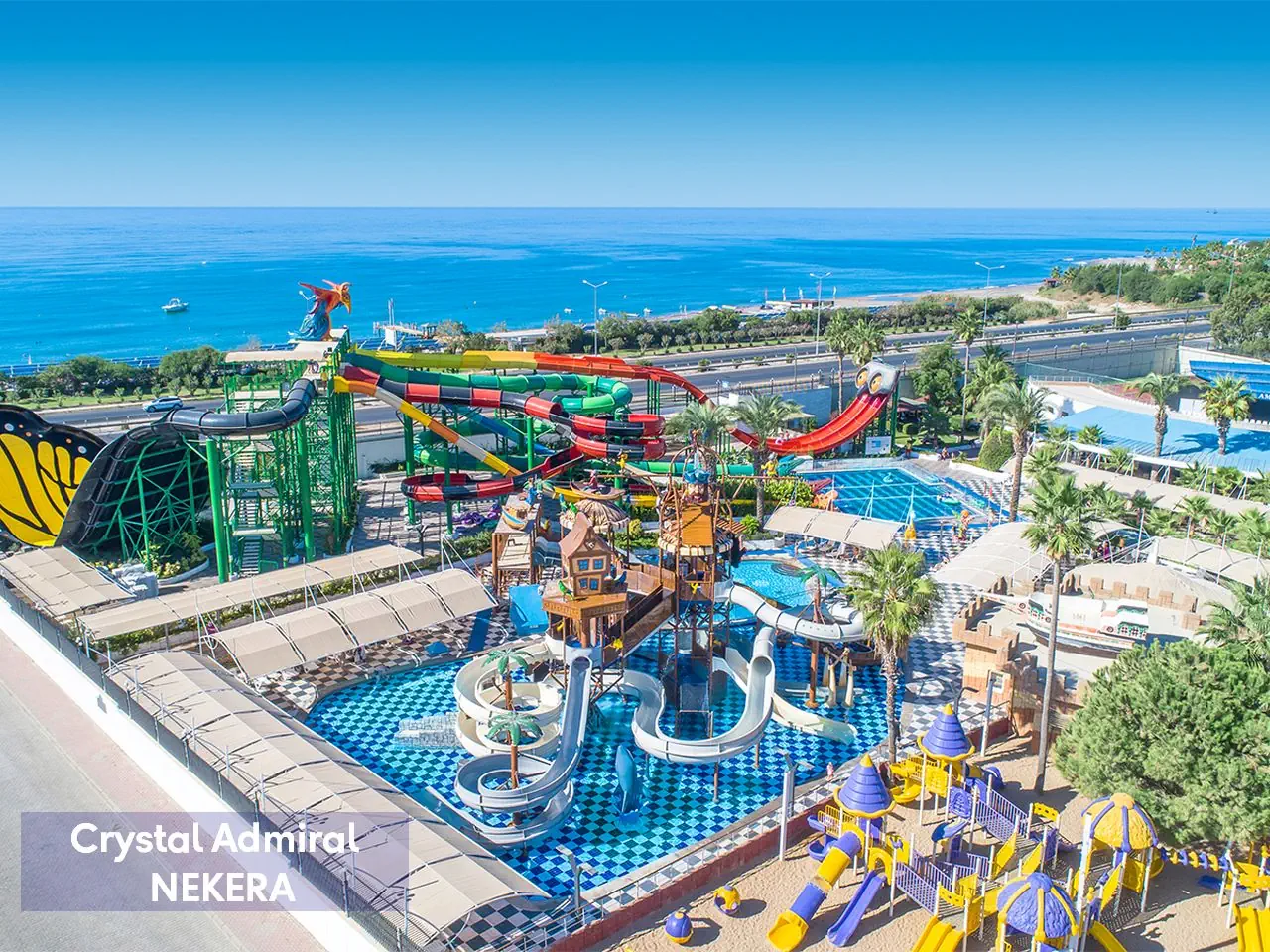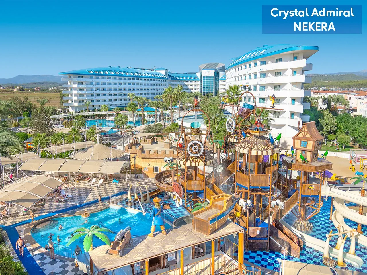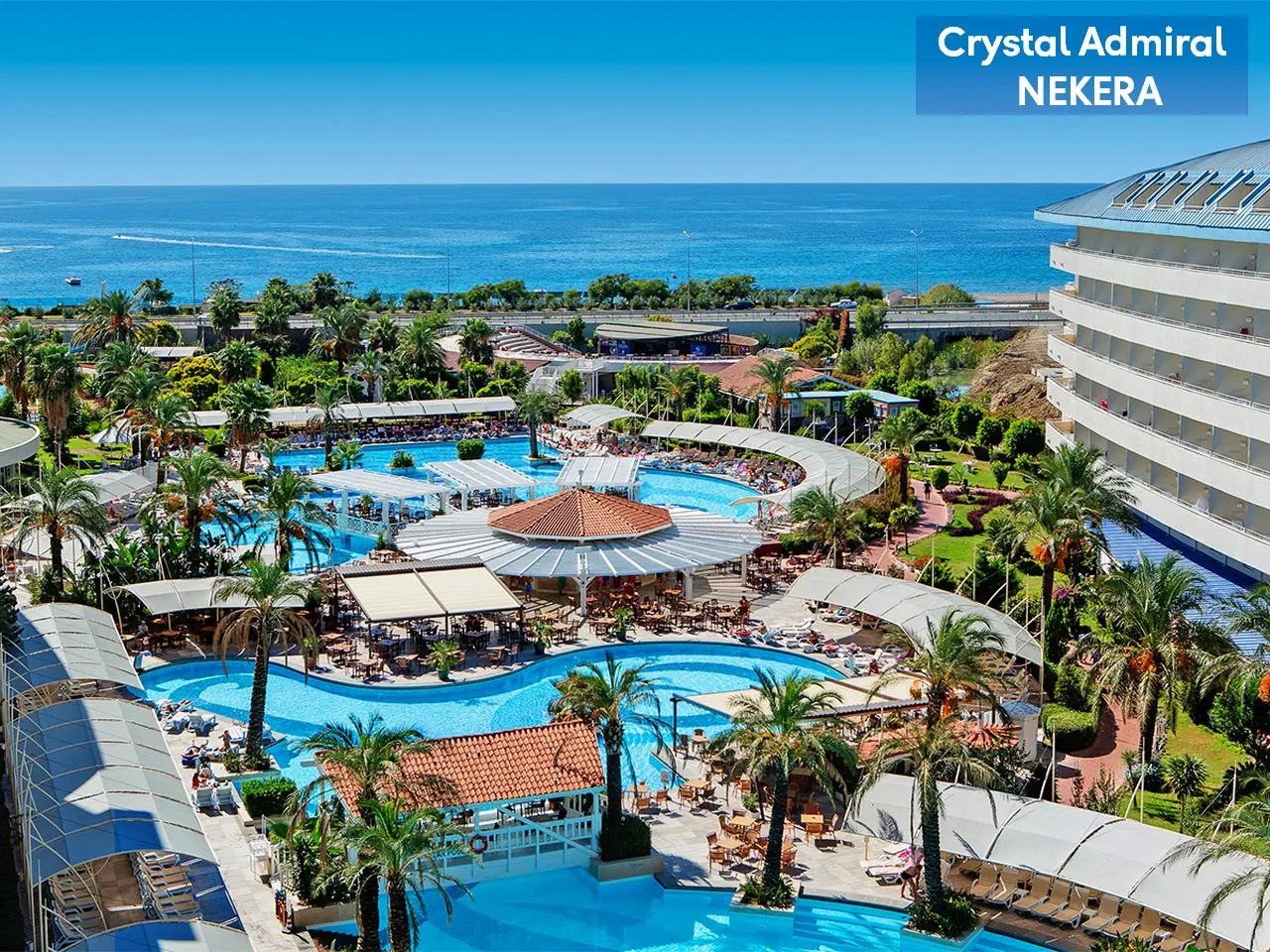 Crystal Admiral Resort Suites & Spa to rozległy kompleks wypoczynkowy położony w spokojnej okolicy Side-Kizilot, idealny dla rodzin z dziećmi oraz osób szukających aktywnego wypoczynku i rozbudowanej infrastruktury rekreacyjnej.