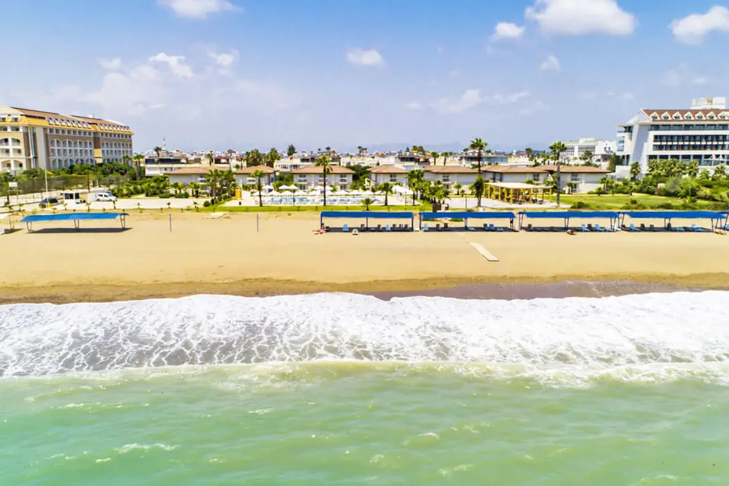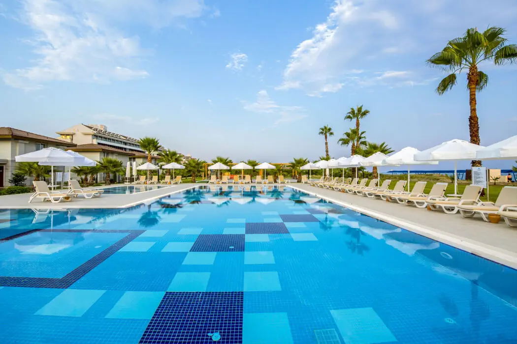8 km od centrum Belek, 40 km od lotniska w Antalyi-AYT. Hotel usytuowany na powierzchni: 8525 m2.
