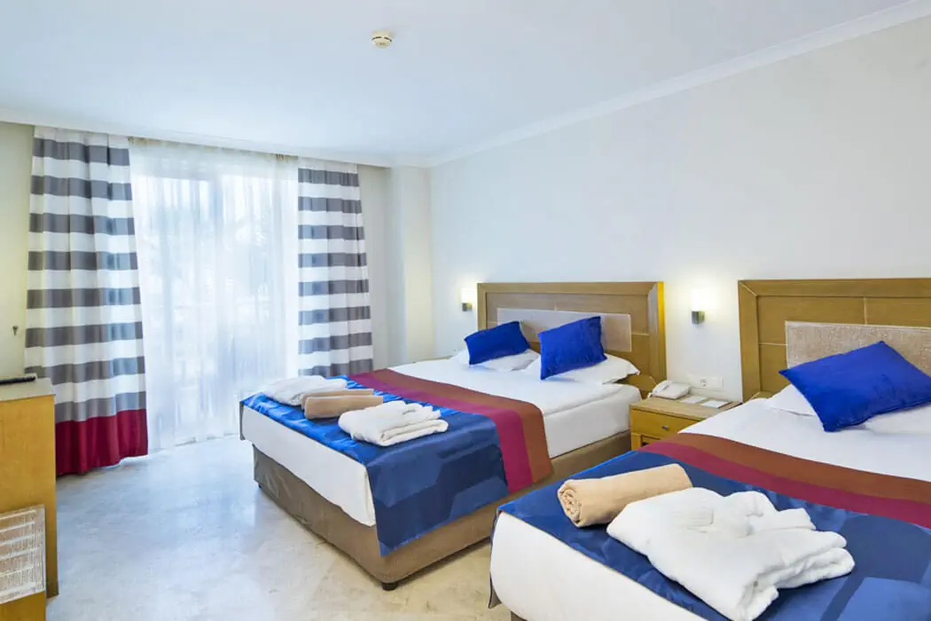 Zlokalizowane są w 14 willach (liczba pięter: 2, liczba wind: 0) Typy pokoi: - STANDARD ROOM dla max. 3 os.: 1 sypialnia, klimatyzacja indywidualna, sejf (bezpłatny), zestaw do parzenia kawy/herbaty (bezpłatny), minibar (bezpłatny, uzupełniany codziennie), TV, telefon, łazienka (prysznic, WC), balkon - SUPERIOR ROOM dla max. 4 os.: 2 sypialnie, klimatyzacja indywidualna, sejf (bezpłatny), zestaw do parzenia kawy/herbaty (bezpłatny), minibar (bezpłatny, uzupełniany codziennie), TV, telefon, łazienka (prysznic, WC), balkon