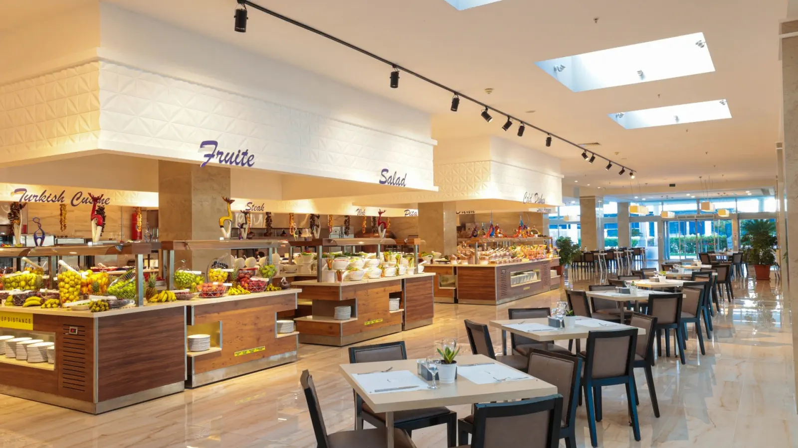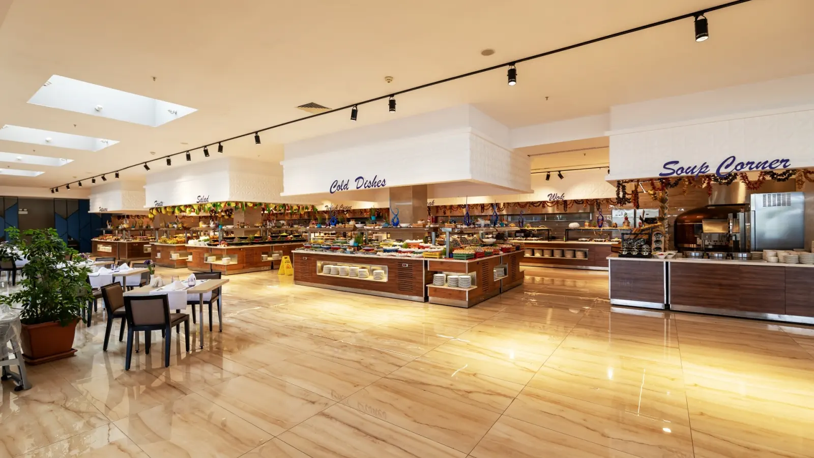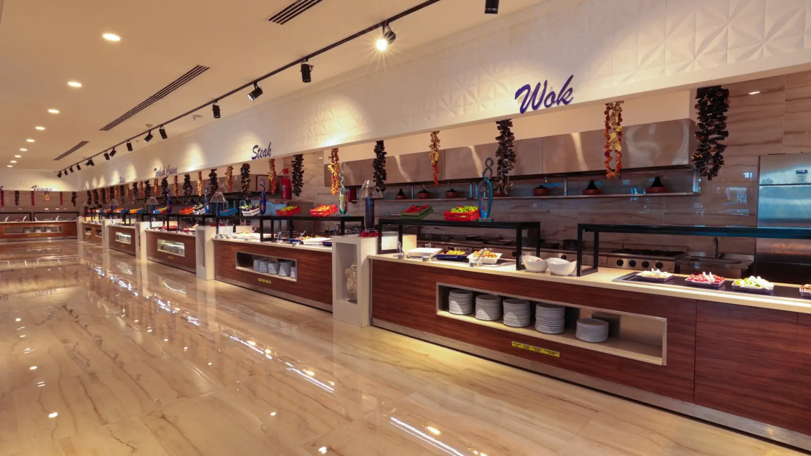 Śniadanie (07:00 - 10:00) - CRYSTAL RESTAURANT, stół szwedzki, Późne śniadanie (10:00 - 11:00) - CRYSTAL RESTAURANT, stół szwedzki, Obiad (12:30 - 14:30) - CRYSTAL RESTAURANT, stół szwedzki, Przekąski (12:00 - 15:30) - QUICK SNACK RESTAURANT, określone menu, Przekąski (12:00 - 18:00) - QUICK BEACH SNACK, określone menu, Przekąski (11:00 - 18:00) - LOCAL'S TURKISH PANCAKE, określone menu, Podwieczorek (16:00 - 17:00) - QUICK BEACH SNACK, określone menu, Podwieczorek (10:00 - 23:00) - SAVOUR PATISSERIE, Nieznany, Kolacja (18:30 - 21:30) - CRYSTAL RESTAURANT, stół szwedzki, Kolacja (19:00 - 22:00) - GALATA A'LA CARTE, a la carte, Kolacja (19:00 - 22:00) - DE MARI A'LA CARTE, a la carte ¹⁾, Kolacja (19:00 - 22:00) - DUOMO A'LA CARTE, a la carte, Późna kolacja (21:30 - 07:00) - ALL IN LOUNGE BISTRO, określone menu, GALATA A'LA CARTE (19:00 - 22:00) (19:00 - 22:00), raz w tygodniu, Kuchnia: lokalna, Wymagana rezerwacja: Tak ¹⁾, DE MARI A'LA CARTE (19:00 - 22:00) (19:00 - 22:00), bez limitu, Kuchnia: owoce morza , Wymagana rezerwacja: Tak ¹⁾, DUOMO A'LA CARTE (19:00 - 22:00) (19:00 - 22:00), bez limitu, Kuchnia: Włoska, Wymagana rezerwacja: Tak, PIER BAR (08:00 - 18:00), Napoje: alkohole lokalne, wybrane alkohole importowane, napoje bezalkoholowe (08:00 - 18:00), DEEP BLUE BAR (23:00 - 02:00), Napoje: alkohole lokalne, wybrane alkohole importowane, napoje bezalkoholowe (23:00 - 02:00), POINT LOBBY BAR (24h), Napoje: alkohole lokalne, wybrane alkohole importowane, napoje bezalkoholowe (24h), SPLASH POOL BAR (10:00 - 18:00), Napoje: alkohole lokalne, napoje bezalkoholowe (10:00 - 18:00), CHI DETOKS BAR (10:00 - 18:00), Napoje: napoje bezalkoholowe (10:00 - 18:00), SUNSET BEACH BAR (10:00 - 23:30), Napoje: alkohole lokalne, wybrane alkohole importowane, napoje bezalkoholowe (10:00 - 23:30), SQUARE CAFE & BAR (10:00 - 23:30), Napoje: alkohole lokalne, napoje bezalkoholowe (10:00 - 23:30), VEGAS BAR (20:00 - 22:30), Napoje: alkohole lokalne, napoje bezalkoholowe (20:00 - 22:30), ALL-IN LOUNGE BAR (12:00 - 23:59), Napoje: alkohole lokalne, napoje bezalkoholowe (12:00 - 23:59), SAVOUR PATISSERIE BAR (10:00 - 23:00), Napoje: napoje bezalkoholowe (10:00 - 23:00), napoje bezalkoholowe, alkohole lokalne, wybrane alkohole importowane, lody, pakiety dla nowożeńców, pakiety urodzinowe (na życzenie), cukiernia, room service ¹⁾, Minibar w pokoju ¹⁾ - dodatkowo płatne
