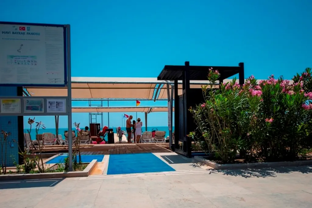 Prywatna, Piaszczysto-żwirowa, Piaszczysto-żwirowe zejście do morza, odleglość do plaży: 50 m, długość plaży: 150 m, pomost na plaży, Parasole - bezpłatnie, Leżaki - bezpłatnie, Ręczniki - bezpłatnie, Pawilony na plaży - płatne, Beach Bar - bezpłatnie, Prysznic