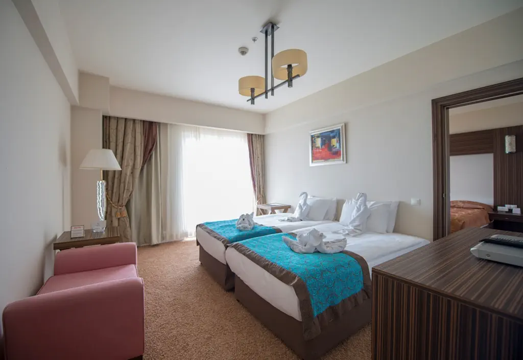 Dla max. 4 osób, Przestrzeń zewnętrzna: Balkon, Kanały telewizji: Polski, Angielski, Telefon w pokoju, prysznic, Powierzchnia pokoju: ok. 40 m2, Rodzaj podłogi: wykładzina, Sprzątanie codziennie, część jadalniana, 2 sypialnie, Drzwi łączące między pokojami, Przepierzenie, Maksymalna liczba osób dorosłych: 3, Maksymalna liczba dzieci: 1, Widok na zatokę,Widok na miasto,Widok na dziedziniec,Widok na ogród i basen,Widok na ogród,Widok na krajobraz,Widok na góry,Widok na park,Widok na ulicę, Bezpośredni dostęp do plaży, Liczba łazienek: 1, Liczba toalet: 1, Zestaw do parzenia kawy i herbaty, Klimatyzacja: Klimatyzacja centralna, Działa w godzinach: 24hKwiecień, Maj, Czerwiec, Lipiec, Sierpień, Wrzesień, Październik