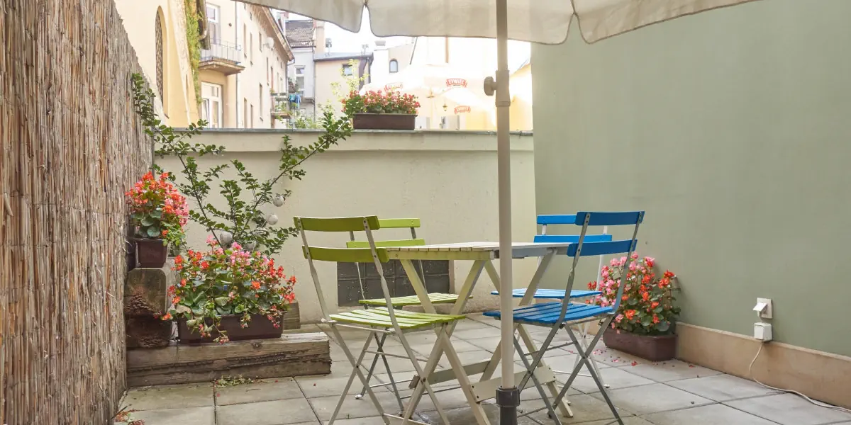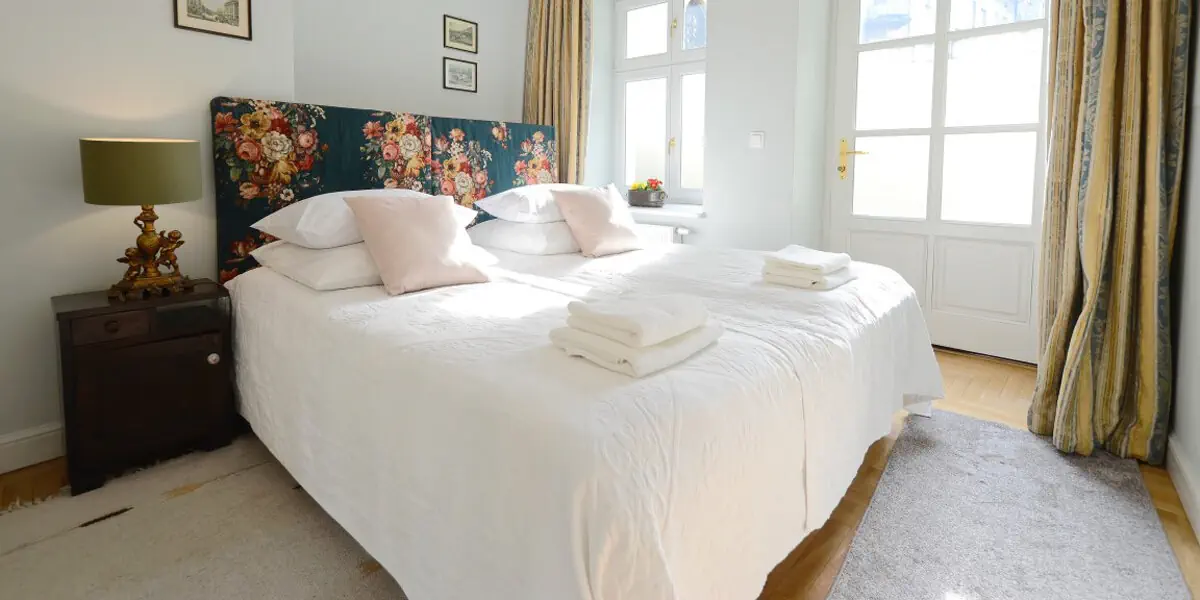 Klimatyzowany apartament w zabytkowej kamienicy z prywatnym patio. Zamykana sypialnia (2 łóżka z możliwością połączenia), pokój dzienny z rozkładanym fotelem i aneksem kuchennym (pełne wyposażenie). W apartamencie: internet, TV, stacja dokująca, pralka, żelazko, ręczniki, kosmetyki, woda, kawa, herbata. Łazienka z prysznicem i deszczownicą.