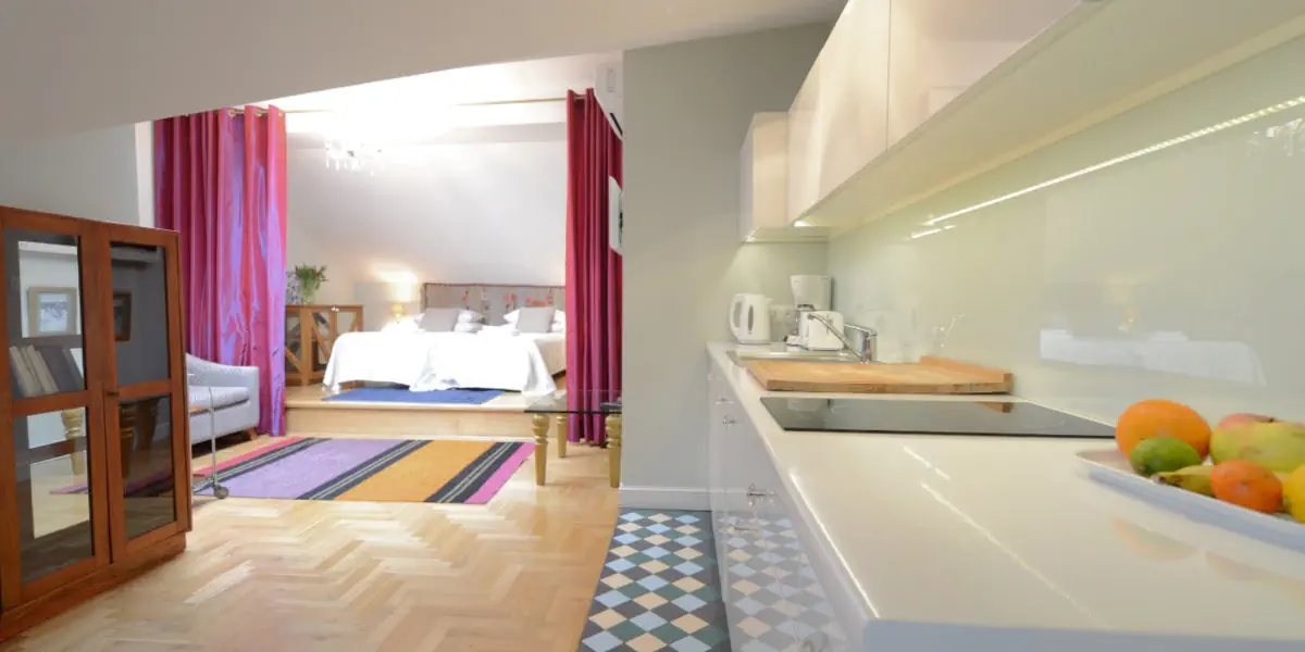 Apartamenty Crystal Suites chez Helena są położone w samym sercu krakowskiego Kazimierza, na ul. Szerokiej, 10 minut pieszo od Rynku Głównego.