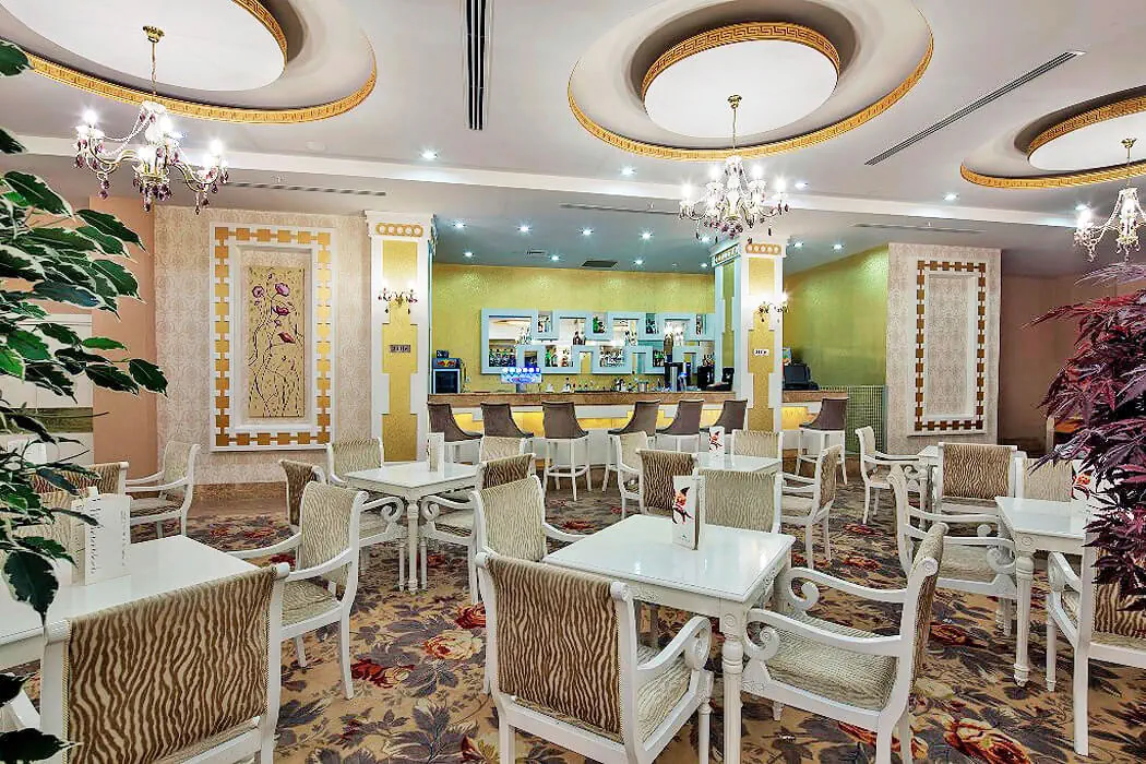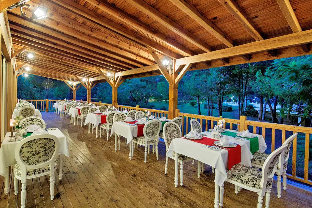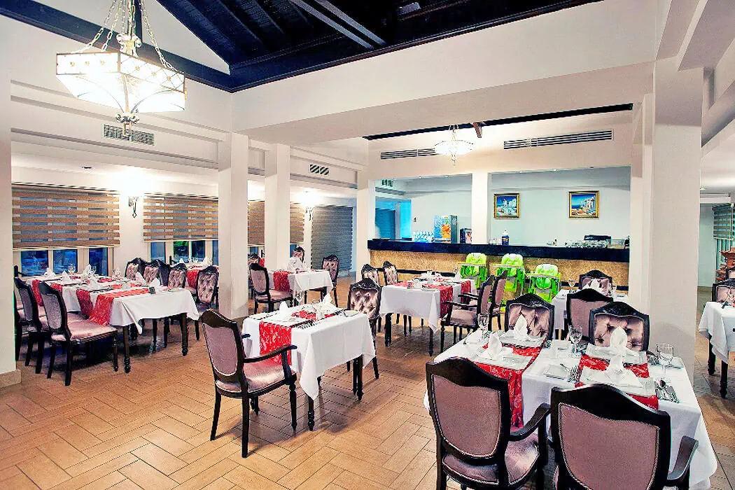 - restauracja główna, restauracje a la carte (4), bary, cukiernia Ultra All Inclusive (24h) - śniadanie (07:00-10:00), późne śniadanie (10:00-11:00), obiad (12:30-14:30), kolacja (19:00-21:30) w restauracji głównej - przekąski (12:00-18:30) w restauracji z przekąskami - późny posiłek (21:30-07:00) w cukierni - lody - wybrane: napoje bezalkoholowe, lokalne napoje alkoholowe, alkohole importowane - pakiety dla nowożeńców (na życzenie), pakiety urodzinowe (na życzenie) Restauracje a la carte - wymagana rezerwacja. - włoska, turecka, lokalna - 1 wizyta podczas pobytu w wybranej restauracji gratis - owoce morza - płatna