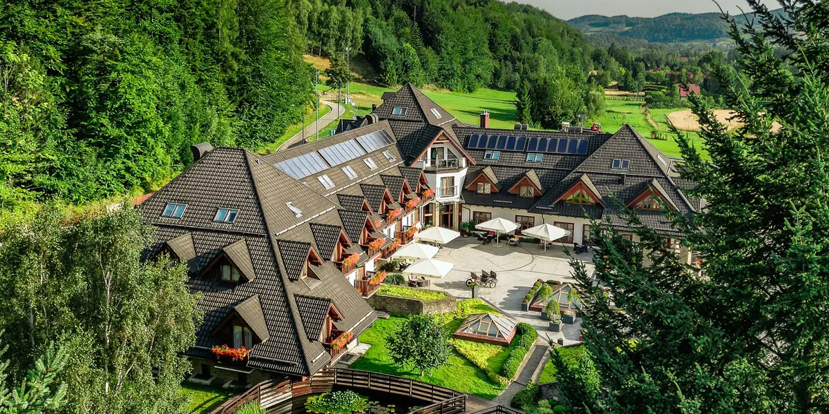 Hotel & SPA Czarny Groń to coś więcej niż 4-gwiazdkowy hotel – to punkt startowy dla niezliczonych przygód w sercu dzikiego i pięknego Beskidu Małego w Małopolsce. Wyróżnia go baza atrakcji dla dzieci, strefa wellness, bliskość górskich szlaków, a zimą ośrodek narciarski. Udogodnienia: Basen kryty, Basen dla dzieci, Jacuzzi, SPA, Sauna, Masaże, Wellness, Zabiegi odnowy biologicznej, Bar / restauracja, Sala zabaw dla dzieci, Kącik zabaw dla dzieci, Animacje dla dzieci, Ogród / Park, Plac zabaw dla dzieci, Boisko sportowe, Kort tenisowy, Park linowy, Klimatyzacja, Pobyt z pupilem, Winda, Dla niepełnosprawnych, Parking strzeżony / monitorowany, Parking, Płatność kartą, Wyciąg narciarski, Przy stoku