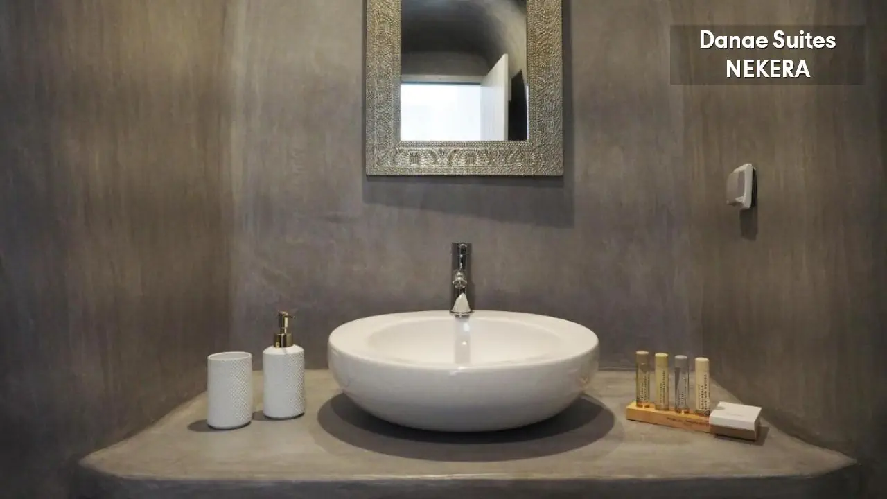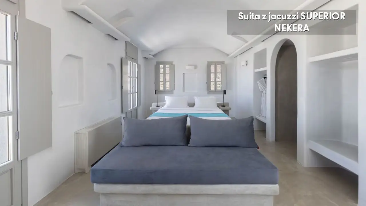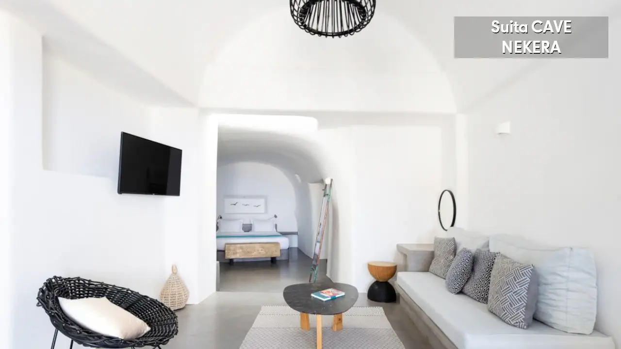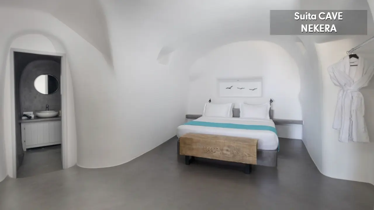 SUITA CAVE • ok. 35-40 m² • maks. 3 osoby dorosłe • łóżko podwójne i sofa • klimatyzacja • TV-Sat. • sejf (rozm. laptopa) • minilodówka • zestaw do parzenia kawy/herbaty • łazienka z prysznicem • suszarka do włosów • minikosmetyki • szlafrok i kapcie • ręcznik basenowy • taras z widokiem na morze w oddali • pokój w stylu groty skalnej • materace na tradycyjnych kamiennych podstawach SUITA DELUXE • ok. 28-30 m² • maks. 2 osoby dorosłe • łóżko podwójne • balkon z widokiem na morze w oddali • poza tym wyposażony jak suita CAVE • pokój na piętrze • materace na tradycyjnych kamiennych podstawach SUITA SUPERIOR z JACUZZI (na zapytanie) • ok. 35-40 m² • maks. 2 osoby dorosłe • łóżko podwójne i sofa • balkon z widokiem na morze w oddali • jacuzzi na balkonie • poza tym wyposażony jak suita CAVE • pokój na piętrze • materace na tradycyjnych kamiennych podstawach WILLA Z BASENEM (na zapytanie) • ok. 40 m² • maks. 2 osoby dorosłe • łóżko podwójne o rozm. king-size • duży prywatny taras z widokiem na morze • prywatny basen (nieregularny kształt) • poza tym wyposażony jak suita CAVE • materac na tradycyjnych kamiennych podstawach • willa wolnostojąca lub wbudowana w grotę skalną