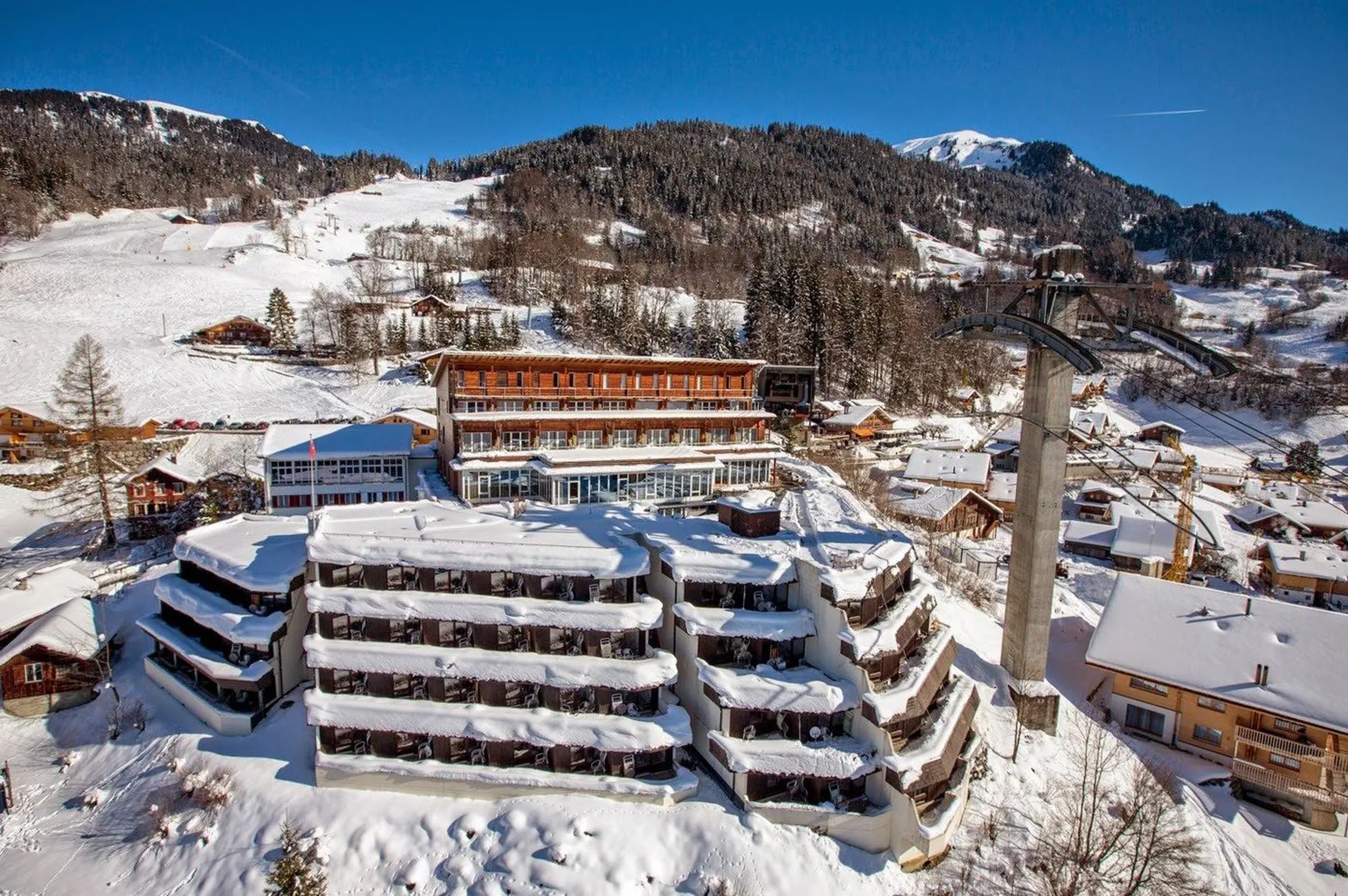tradycyjny i prowadzony rodzinnie obiekt przy samej trasie narciarskiej,ok. 50 m od kolejki Meiringen/Haslibergbahn, do centrum miejscowości ok. 50 m.