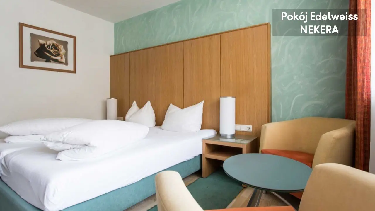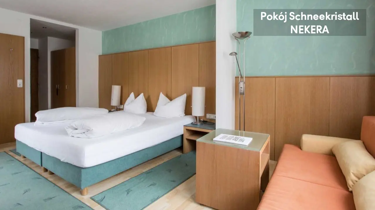 Pokój Edelweiss: ok. 24 m2, mogący zakwaterować do dwóch osób, jedno łóżko podwójne, TV, Wi-Fi, radio, sejf, prywatna łazienka (wanna lub prysznic, toaleta, umywalka), część pokoi z balkonem. Pokój Schneekristall: ok. 30 m2, mogący zakwaterować do trzech osób, jedno łóżko podwójne i sofa dla trzeciej osoby; poza tym wyposażony jak pokój dwuosobowy Edelweiss. Suite: ok. 45 m2, mogący zakwaterować do czterech osób, sypialnia z łóżkiem podwójnym i część dzienna z rozkładaną sofą; poza tym wyposażony jak pokój Edelweiss.