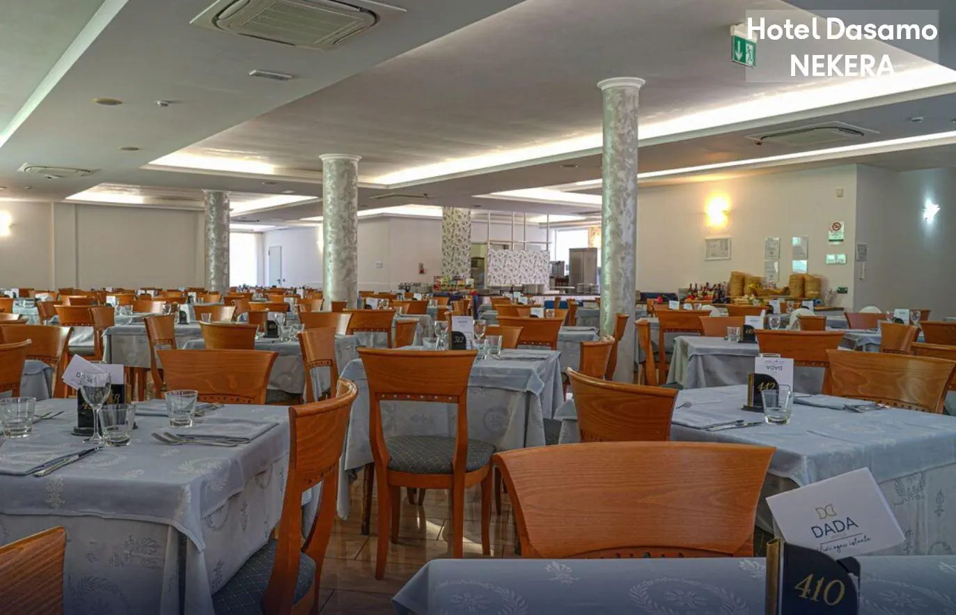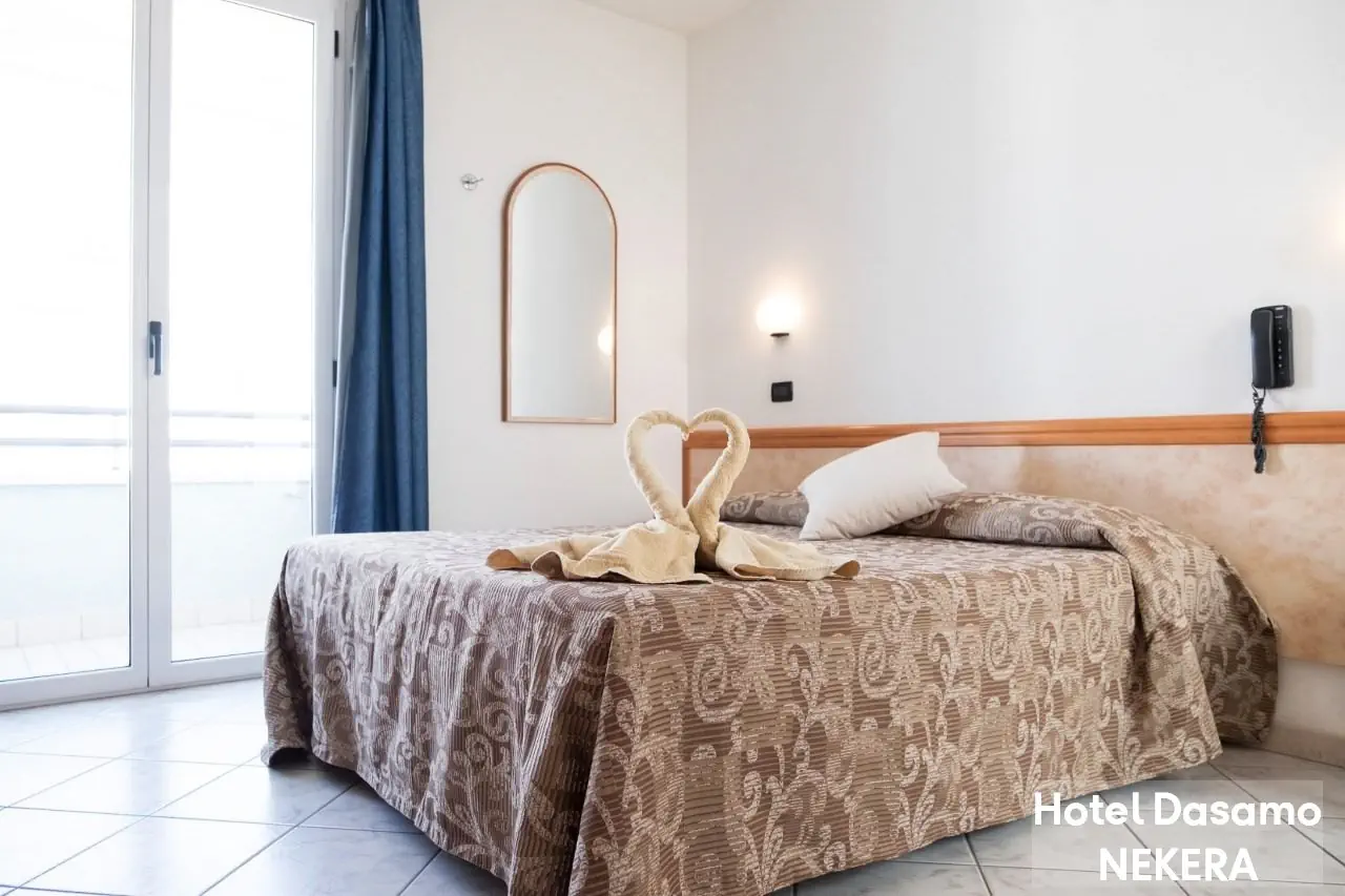 Pokoje Dwuosobowe Standard: ok. 16-18 m2; klimatyzacja, TV-Sat., telefon, sejf, balkon, prysznic, WC, suszarka. Dla 2 osób dorosłych i 1-2 dzieci poniżej 18 lat. Dla dzieci łózko piętrowe. Łóżeczko dla dziecka do 2 lat na zapytanie, za opłatą ok. 10 EUR / dzień.