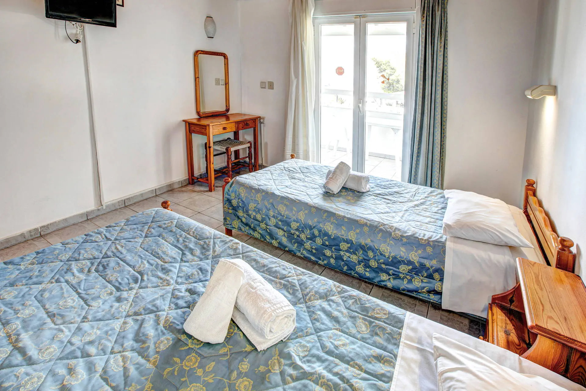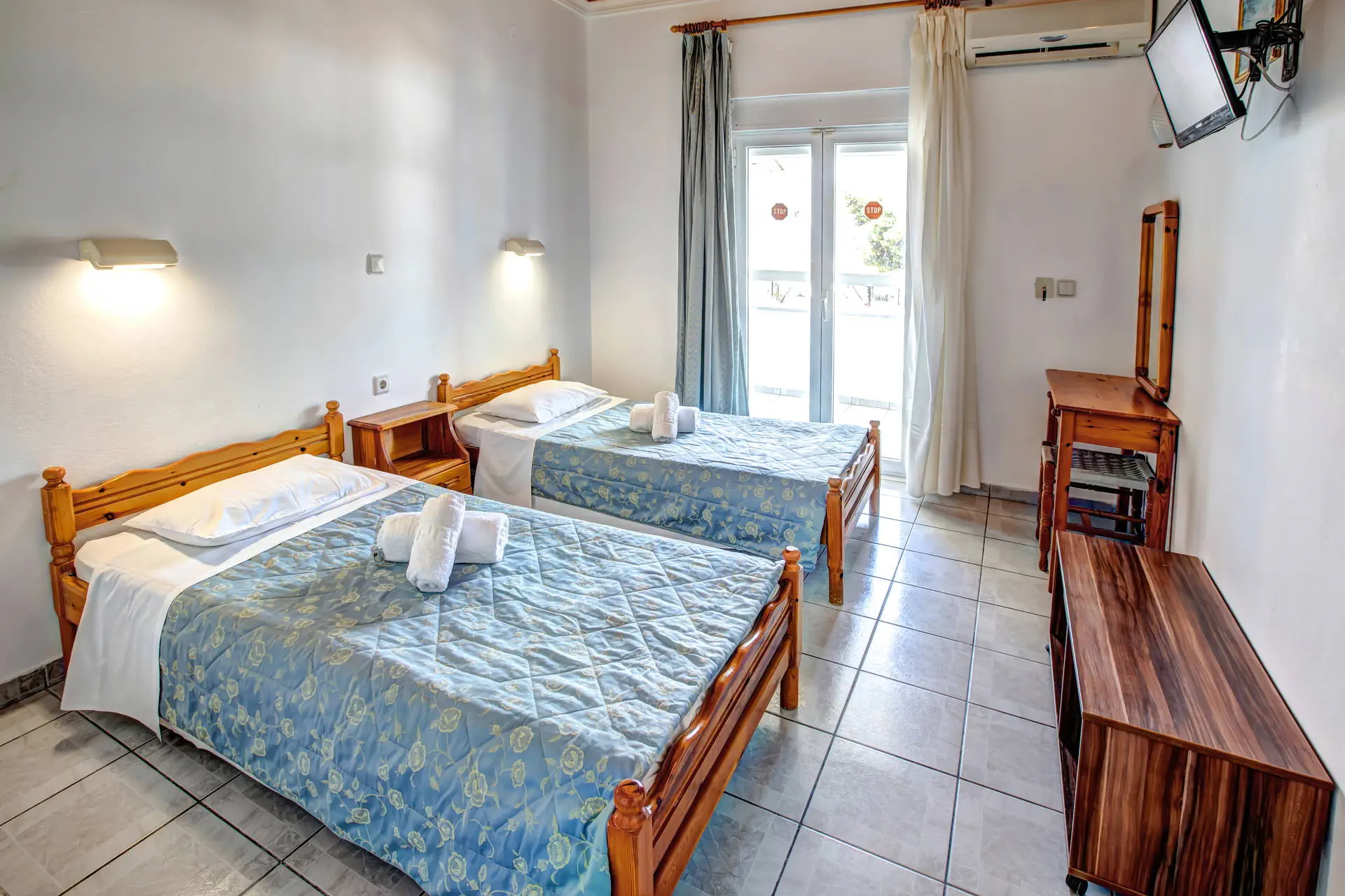 Położenie Obiekt znajduje się ok. 55 km od lotniska, transfer trwa ok. 1 godz. 15 min.W odległości ok. 200 m od hotelu znajdują się liczne restauracje, dyskoteki i sklepy. Autokar nie ma możliwości podjechania pod same apartamenty, konieczne przeniesienie bagaży (ok. 150 m). Ten otoczony zadbanym ogrodem kompleks położony jest w tętniącym życiem kurorcie Kavos. Plaża Plaża bezpośrednio przy hotelu. Szeroka, piaszczysta. Leżaki i parasole płatne (ok. 6-8 EUR/dzień/zestaw). Do dyspozycji gości 1 basen dostępny dla Gości hotelu, leżaki i parasole przy basenie. Restauracje: bar przy basenie. Pozostałe informacje: słoneczny taras, ogród. Pokoje Hotel oferuje 18 funkcjonalnie urządzonych pokoi. Obiekt nie posiada pokoi przystosowanych dla osób niepełnosprawnych, a także nie akceptuje zwierząt. W związku z bieżącą sytuacją właściciel apartamentów Daskalos wprowadził dopłatę do korzystania z klimatyzacji na cały sezon. Dopłata za klimatyzację nie jest obowiązkowa. Istnieje możliwość opłacenia korzystania z klimatyzacji tylko w niektóre dni pobytu. Płatność na miejscu. Wyżywienie Rodzaje wyżywienia i posiłki: We własnym zakresie. Za dopłatą możliwość wykupienia wyżywienia: Śniadania (dopłata do BB). Śniadania i obiadokolacje (dopłata do HB). Możliwa dieta wegetariańska i bezglutenowa - konieczne zgłoszenie na miejscu. Pozostałe informacje: Domowa kuchnia przygotowywana na miejscu przez żonę właściciela. Program sportowy i animacyjny Za dodatkową opłatą: sporty wodne na plaży. Internet W ogólnodostepnych częściach kompleksu i pokojach internet WI-Fi za darmo Kategoria lokalna 3 klucze Naszym zdaniem Hotel, usytuowany w dogodnym miejscu, zaledwie kilka kroków od plaży i centrum kurortu, oferuje funkcjonalnie urządzone pokoje w atrakcyjnej cenie. Goście mogą wykupić wyżywienie w kompleksie, gdzie serwowana jest smaczna domowa kuchnia. Dodatkowym atutem jest dostęp do basenu, co czyni pobyt bardziej relaksującym. To doskonałe miejsce dla osób ceniących bliskość morza i komfortowe warunki zakwaterowania. Strona www Brak strony www