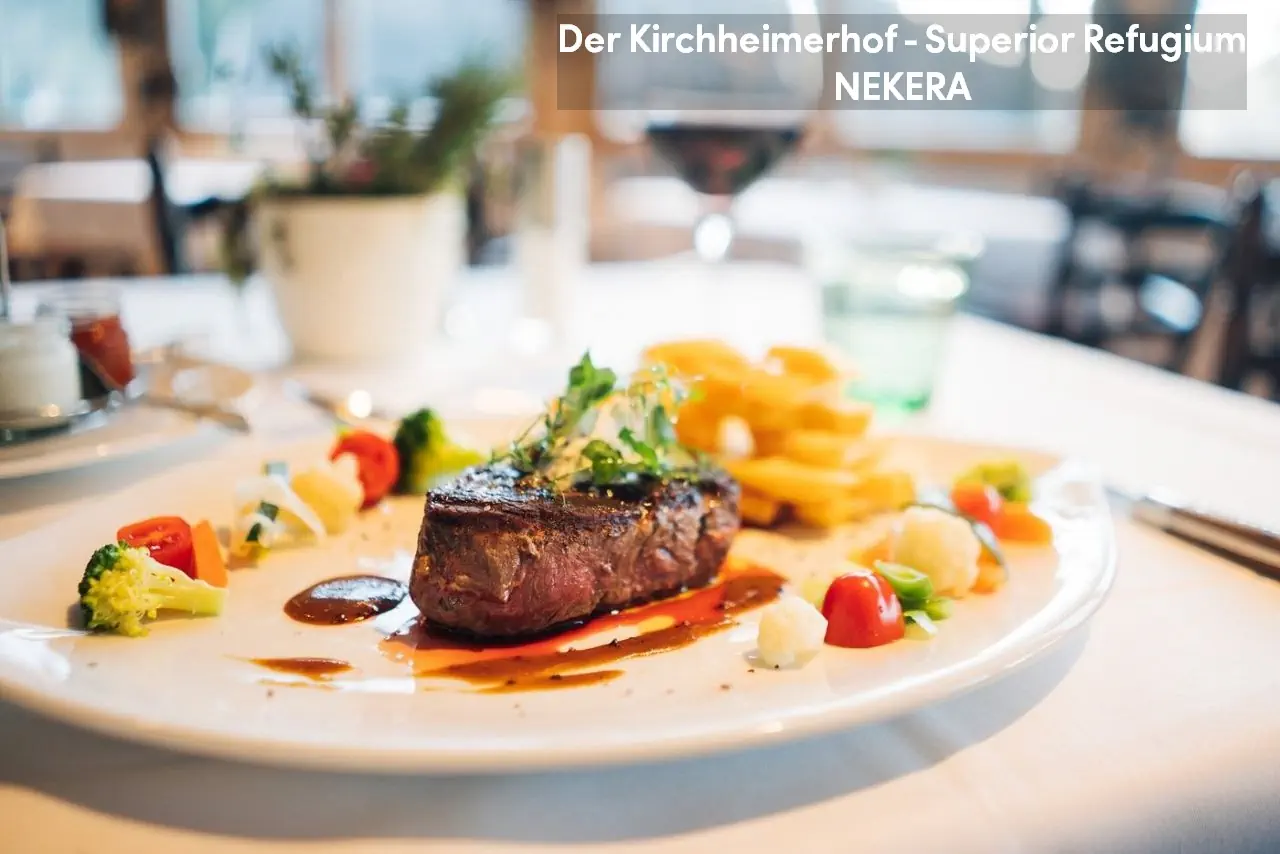 z dwoma posiłkami: śniadanie w formie bufetu. Popołudniowa przekąska w hotelu lub w górskim chalecie Goar Keusch'n. Kolacja w formie 5-daniowego menu. Hotel serwuje częściowo produkty z własnych upraw. Napoje do kolacji dodatkowo płatne.