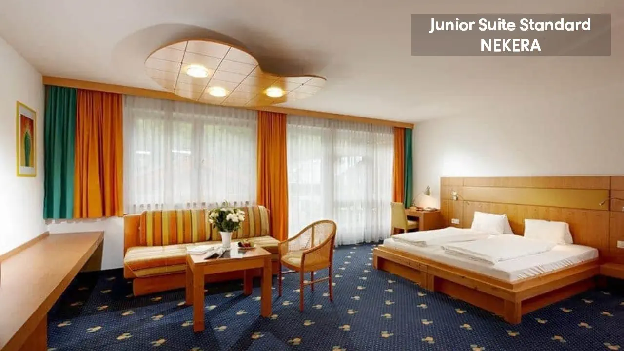 pokoje dwuosobowe economy (ok. 20 m2): wanna lub prysznic, WC, TV kablowa, balkon, WiFi. Pokoje jednoosobowe economy (ok. 20 m2): wyposażone jak pokoje dwuosobowe economy. Pokoje dwuosobowe comfort (ok. 20 m2): wyposażone jak pokoje dwuosobowe economy, sejf, mini bar, telefon. Pokoje dwuosobowe superior (ok. 25 m2): wyposażone jak pokoje dwuosobowe economy, sejf, telefon. Pokoje Deluxe (ok. 31 m2): wyposażone jak pokoje dwuosobowe economy, sejf, telefon. Junior Suite (ok. 40 m2): wyposażone jak pokoje dwuosobowe economy, sejf, telefon, w budynku bocznym. Suite Standard (ok. 47 m2): pokój dzienny, oddzielna sypialnia, sejf, mini bar, telefon, wyposażone jak pokoje dwuosobowe economy.