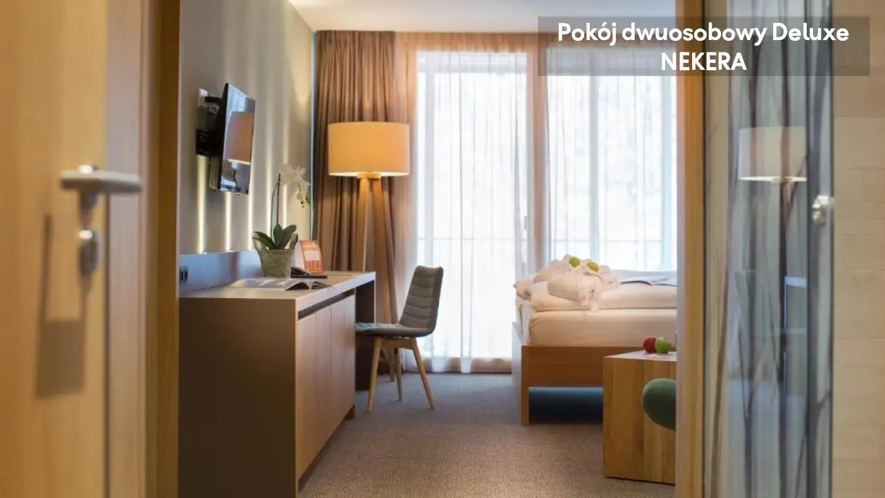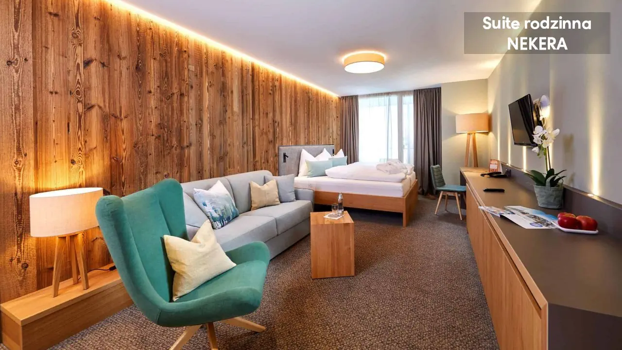 nowe luksusowe centrum wellness (ok. 1000 m2): podgrzewany basen zewnętrzny, basen kryty, sauna rodzinna siłownia z urządzeniami cardio. Strefa saun (od 16 lat): różnego rodzaju sauny, whirlpool, strefy relaksu, tarasy zewnętrzne. Za opłatą: masaże.