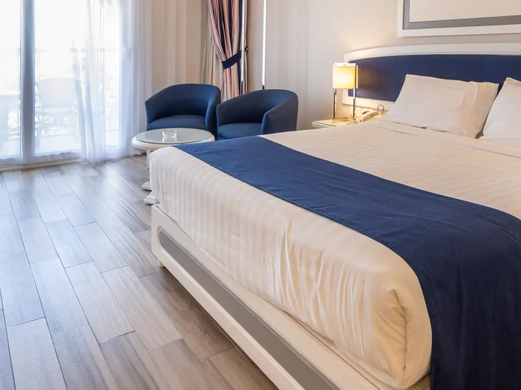 Dla max. 3 osób, Przestrzeń zewnętrzna: Balkon lub taras, Kanały telewizji: Polski, Angielski, Telefon w pokoju, prysznic, Powierzchnia pokoju: ok. 32 m2, Dostawka: łóżko rozkładane, Rodzaj podłogi: płytki, Sprzątanie codziennie, 1 sypialnia, Maksymalna liczba osób dorosłych: 3, Maksymalna liczba dzieci: 2, Frontalny widok na plażę, Liczba łazienek: 1, Liczba toalet: 1, Zestaw do parzenia kawy i herbaty, Klimatyzacja: Klimatyzacja indywidualna