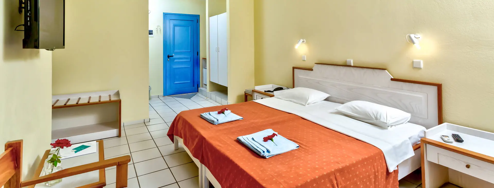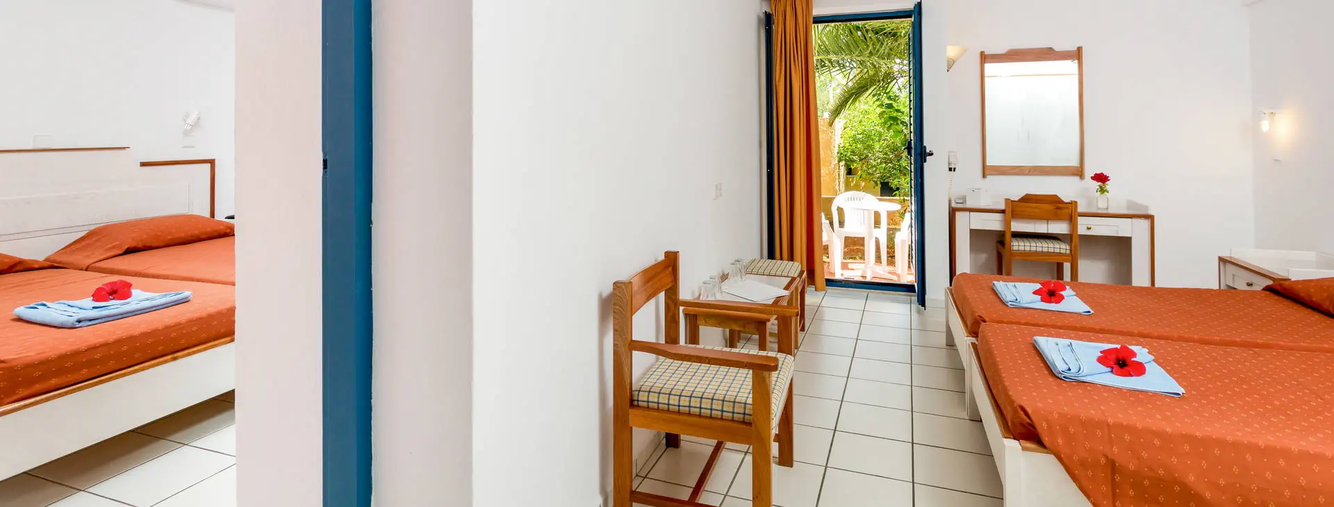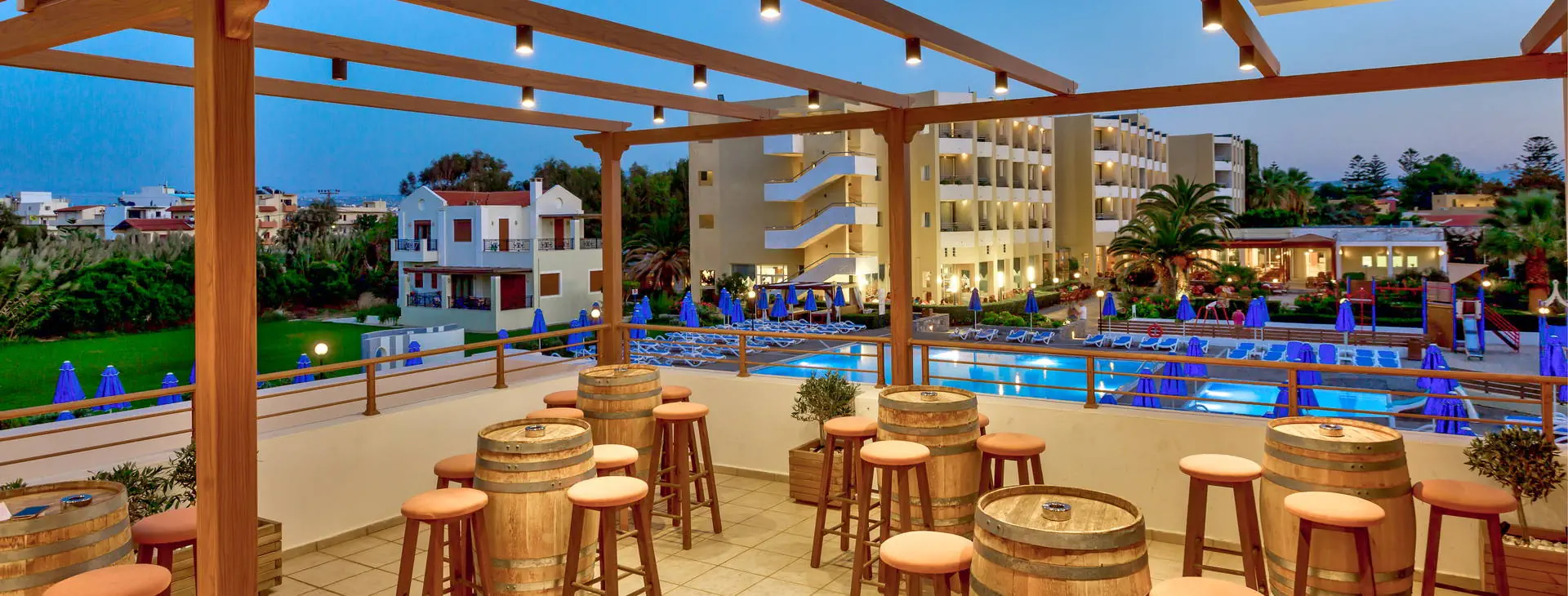 Położenie: Hotel zlokalizowany w spokojnej miejscowości Amoudara, około 8 km od ścisłego centrum Heraklionu. W pobliżu hotelu liczne sklepy, restauracje i bary. Około 600 m od hotelu znajduje się przystanek autobusowy z połączeniem do centrum Heraklionu. Do lotniska w Heraklionie około 12 km. UWAGA! Cena nie obejmuje lokalnego podatku turystycznego w wysokości 3 EUR/pokój/dzień. Podatek jest obligatoryjny i płatny bezpośrednio w recepcji, przed zakwaterowaniem Klientów w hotelu. Plaża: Obiekt położony bezpośrednio przy piaszczystej plaży Ammoudara, oznaczonej błękitną flagą. Jest to jedna z najbardziej malowniczych plaż w regionie. Leżaki i parasole na plaży bezpłatne. Ręczniki plażowe dostępne w recepcji bezpłatnie (depozyt 5 EUR). Do dyspozycji gości: 24-h recepcja, lobby. Restauracja główna Minos, tawerna a’la carte Pasiphae na plaży, bar w lobby Ariadne, bar na plaży i przy basenie. Na terenie obiektu znajdują się 3 baseny, w tym jeden ze zjeżdżalniami. Dodatkowo dostępne są 2 korty tenisowe, boisko do koszykówki, boisko do siatkówki plażowej, bilard (za dodatkową opłatą), stół do tenisa stołowego, piłkarzyki oraz rzutki. Centrum Spa & Wellness oferuje zabiegi na całe ciało, usługi masażysty, saunę, hammam oraz jacuzzi (za dodatkową opłatą). W hotelu działa Mini Klub dla najmłodszych. Pokoje: Hotel posiada łącznie 259 pokoi zlokalizowanych w trzech budynkach. Wszystkie pokoje posiadają balkony lub tarasy oraz łazienki z wanną lub prysznicem oraz suszarką do włosów. We wszystkich pokojach znajduje się mini-bar (woda butelkowana raz na przyjazd), sejf, TV-Sat, zdalnie sterowana klimatyzacja. Pokoje standardowe dwuosobowe (z możliwością dostawki) o powierzchni ok. 24 m2. Posiadają boczny widok na ogród lub morze. Maksymalne obłożenie to 3 osoby dorosłe lub 2 osoby dorosłe + dziecko. Pokoje rodzinnew bungalowach o powierzchni ok. 50 m2. Pokoje te posiadają widok na ogród. Maksymalne obłożenie to 4 osoby dorosłe lub 2 osoby dorosłe + 2 dzieci. Wyżywienie: Wczesne śniadanie (5:00-7:00, wymagana rezerwacja), bufet śniadaniowy (7:00-10:00), późne śniadanie (10:00-11:00), lunch w restauracji głównej (12:30-14:30), kolacja (19:00-21:00). Przekąski dostępne w plażowej Tawernie pomiędzy 11:00 a 16:00. Napoje bezalkoholowe i alkoholowe dostępne w barze na plaży w godzinach 10:00-18:00 (soft drinki, kawa, herbata, soki, piwo, lokalne alkohole) oraz w barze Ariadne w lobby w godzinach 17:00-24:00. Dodatkowo lody w godzinach 15:00-17:00 w barze przy basenie (Katrea) oraz w barze na plaży (Glafkos). Raz na pobyt jedna kolacja w restauracji Pasiphae (wymagana rezerwacja). Program sportowy i animacyjny: Hotel posiada program animacji dla dzieci i dorosłych. Zabawy w basenie, aerobik, wodne polo lub mecze siatkówki plażowej, a także ćwiczenia fitness. Mini Klub prowadzi animacje dla dzieci w wieku od 4 do 12 lat w godzinach 10:00-12:00 i 15:00-17:30. Na terenie obiektu znajduje się plac zabaw (jeden wewnętrzny, drugi zewnętrzny). W okresie od 15 czerwca do 15 września FIGLOKLUB - 6 x w tygodniu zabawy dla dzieci z polskim animatorem. Internet: Na terenie całego hotelu bezpłatne WiFi. Kategoria lokalna: **** Strona www: