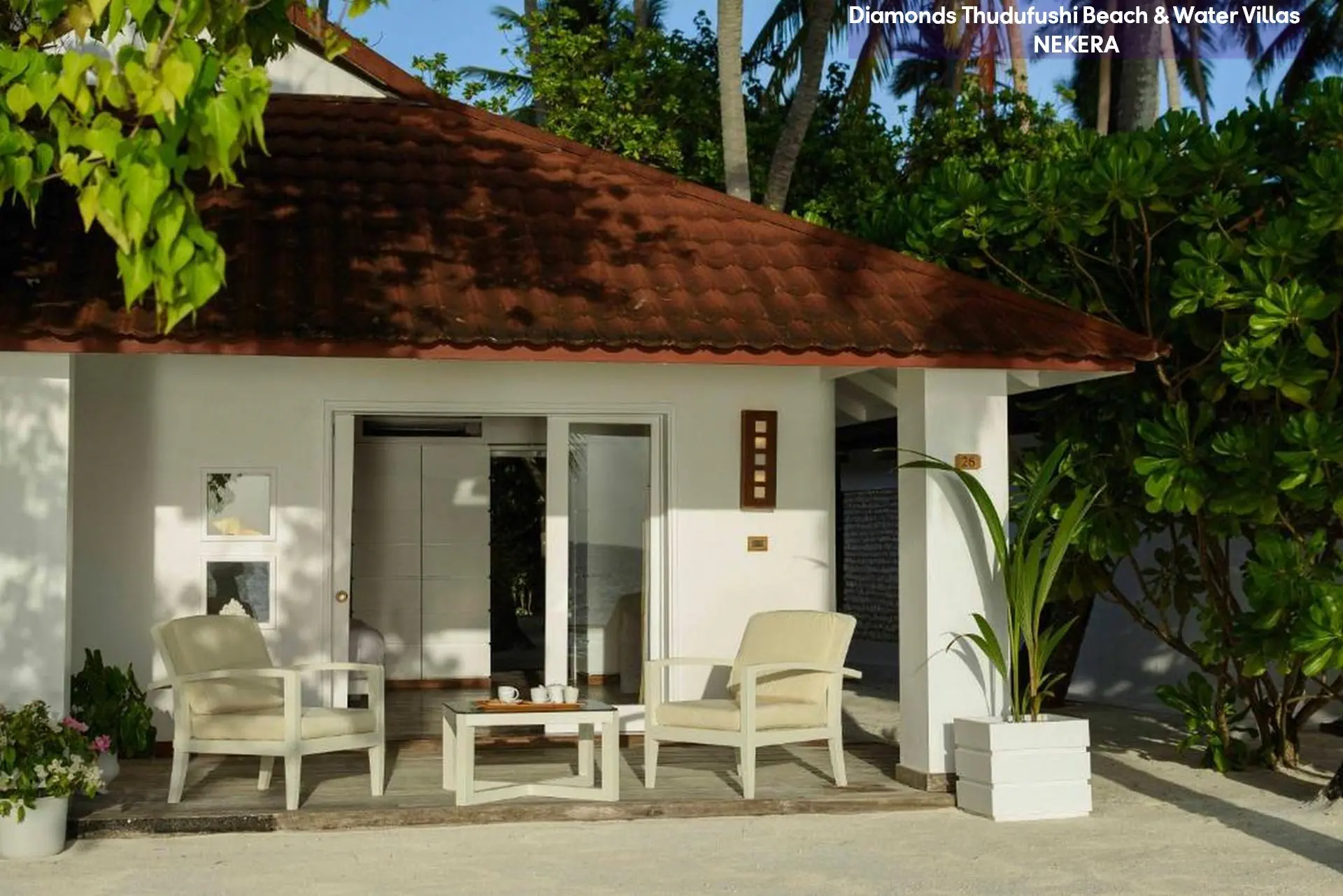 • ok. 40 m² • max. 2 osoby • bezpośrednie wyjście na plażę • taras z leżakami i widokiem na ocean • klimatyzacja indywidualna • łazienka na świeżym powietrzu z prysznicem • minibar (płatny), sejf • zestaw do parzenia kawy i herbaty • TV, telefon, Wi-Fi