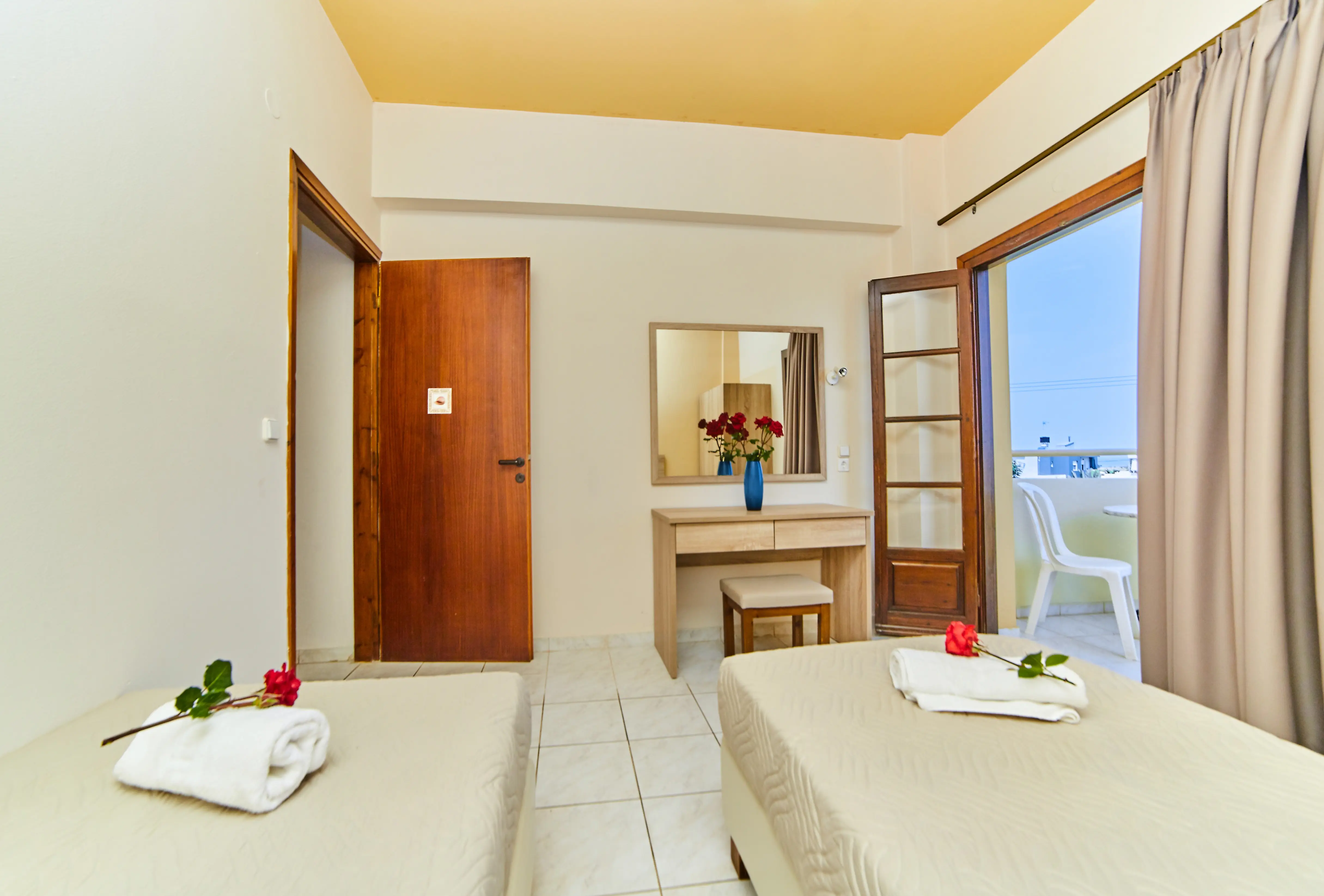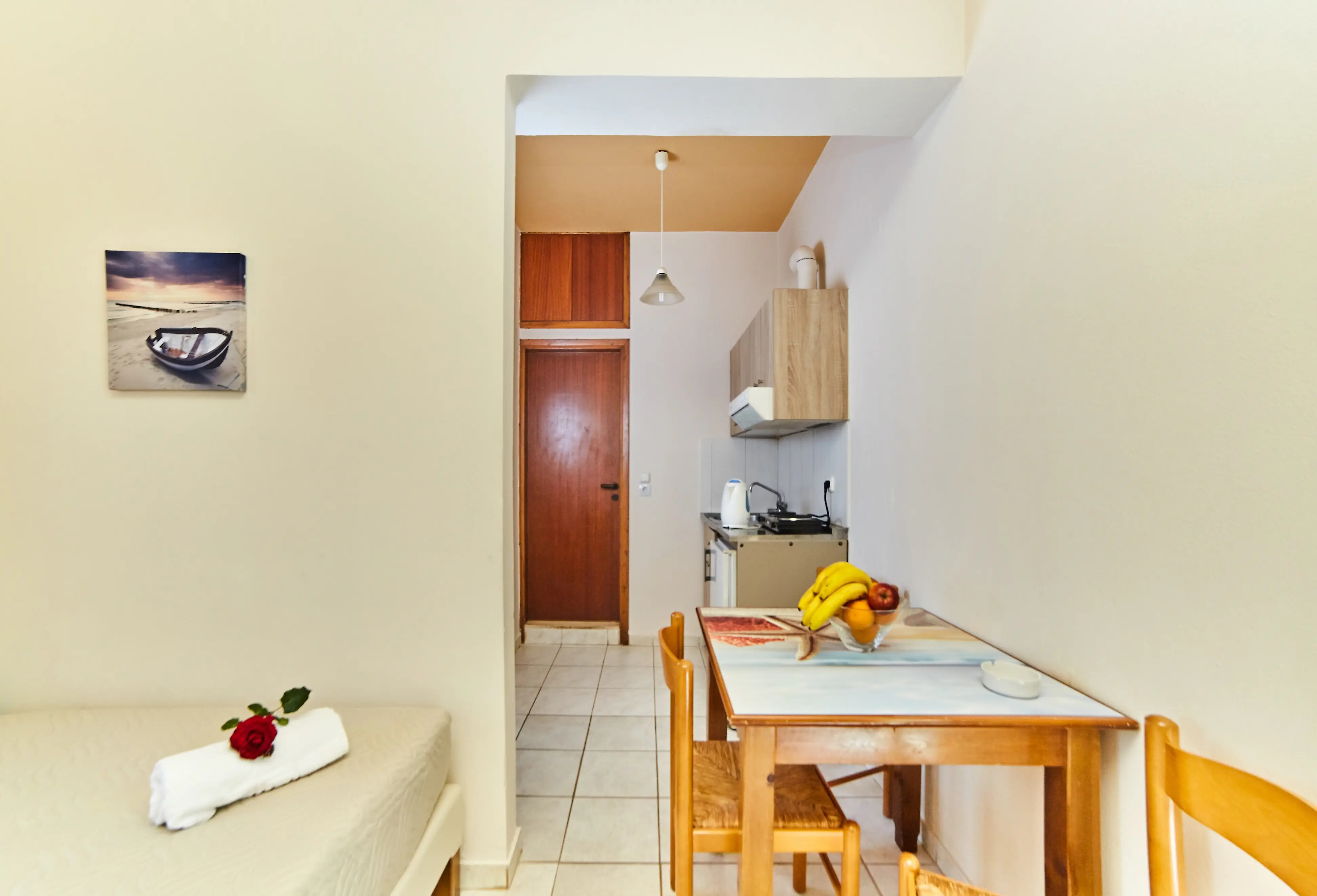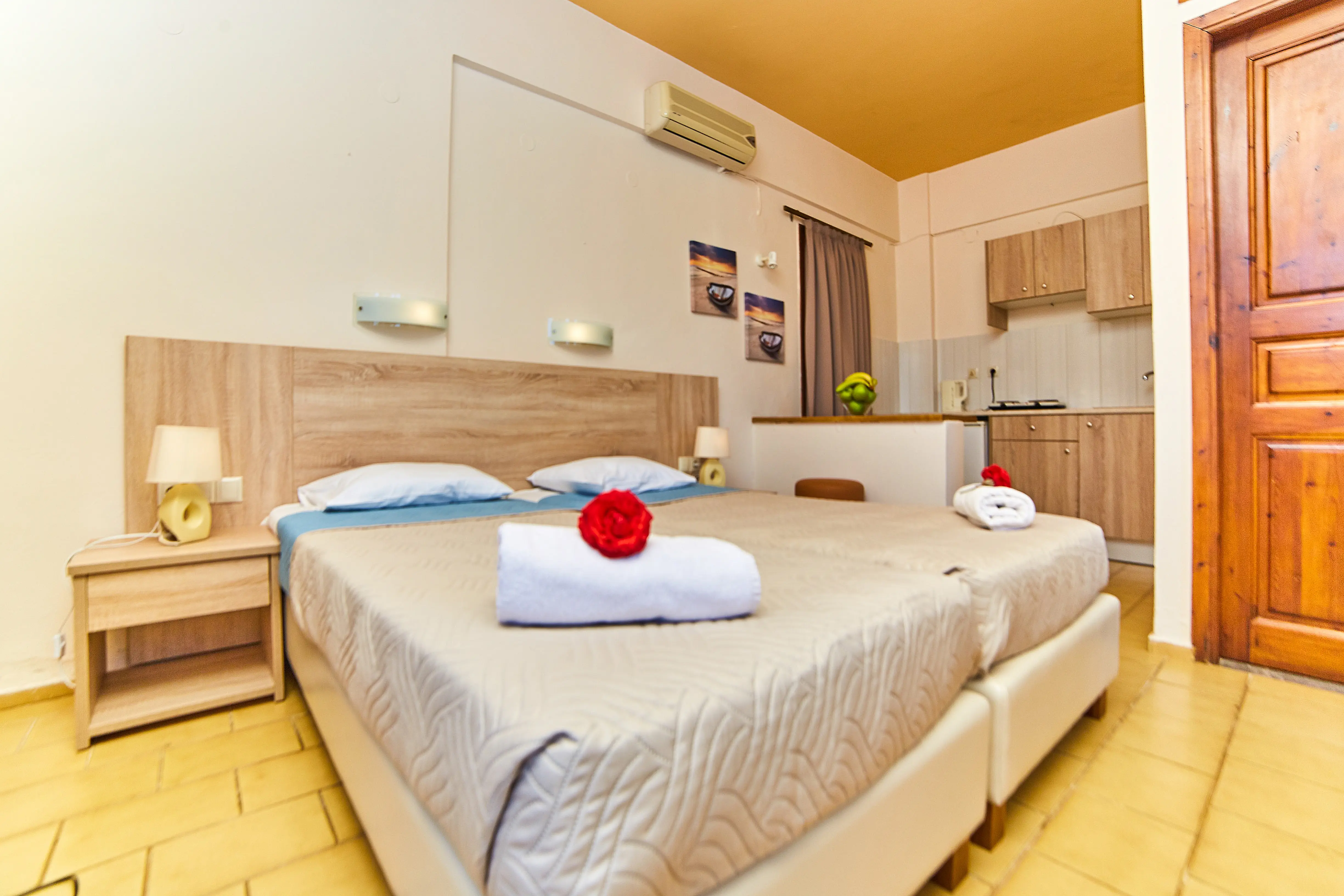 Dla max. 3 osób, Przestrzeń zewnętrzna: Balkon, Aneks kuchenny, prysznic, Powierzchnia pokoju: ok. 30 m2, Rodzaj podłogi: płytki, Sprzątanie codziennie, 1 sypialnia, Maksymalna liczba osób dorosłych: 3, Maksymalna liczba dzieci: 2, Widok na ogród, Liczba łazienek: 1, Liczba toalet: 0, Klimatyzacja: Klimatyzacja indywidualna (dodatkowo płatne)
