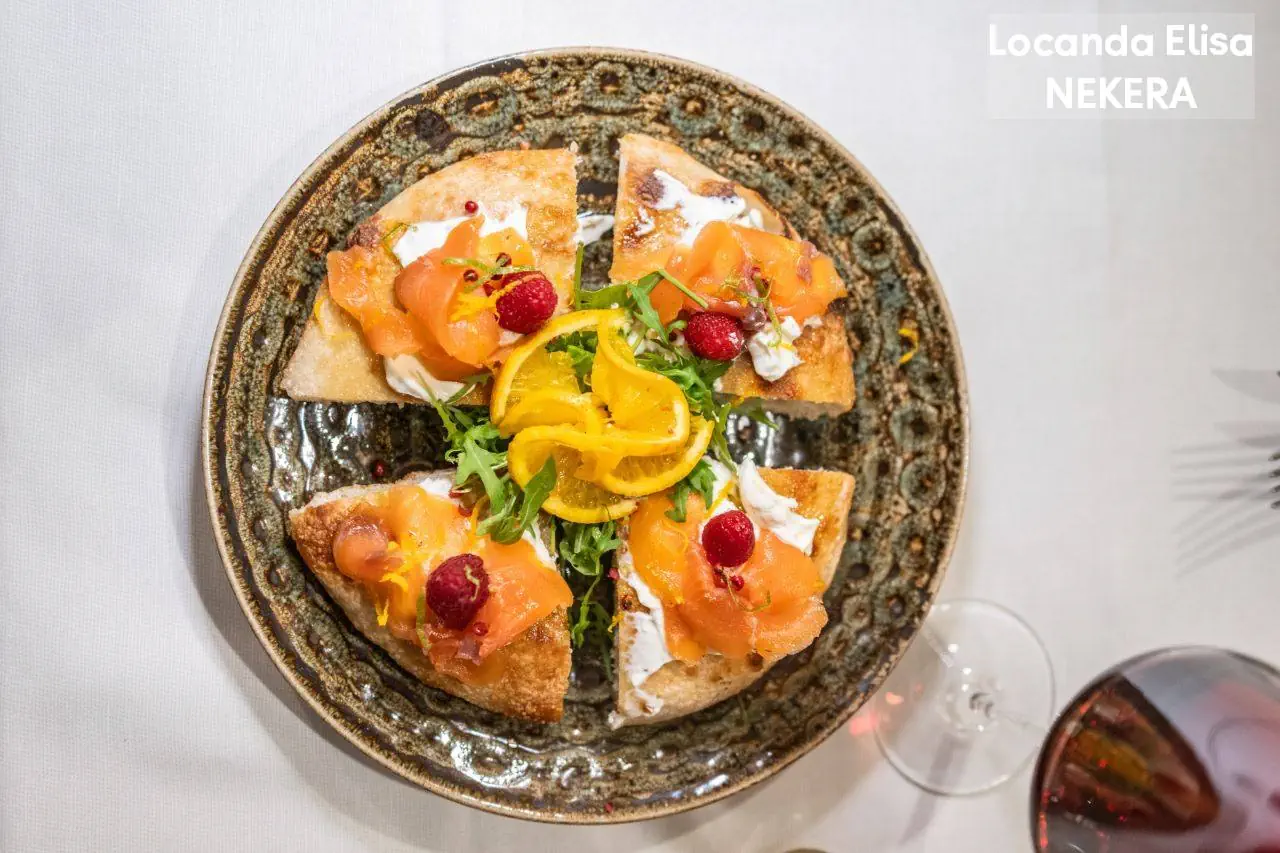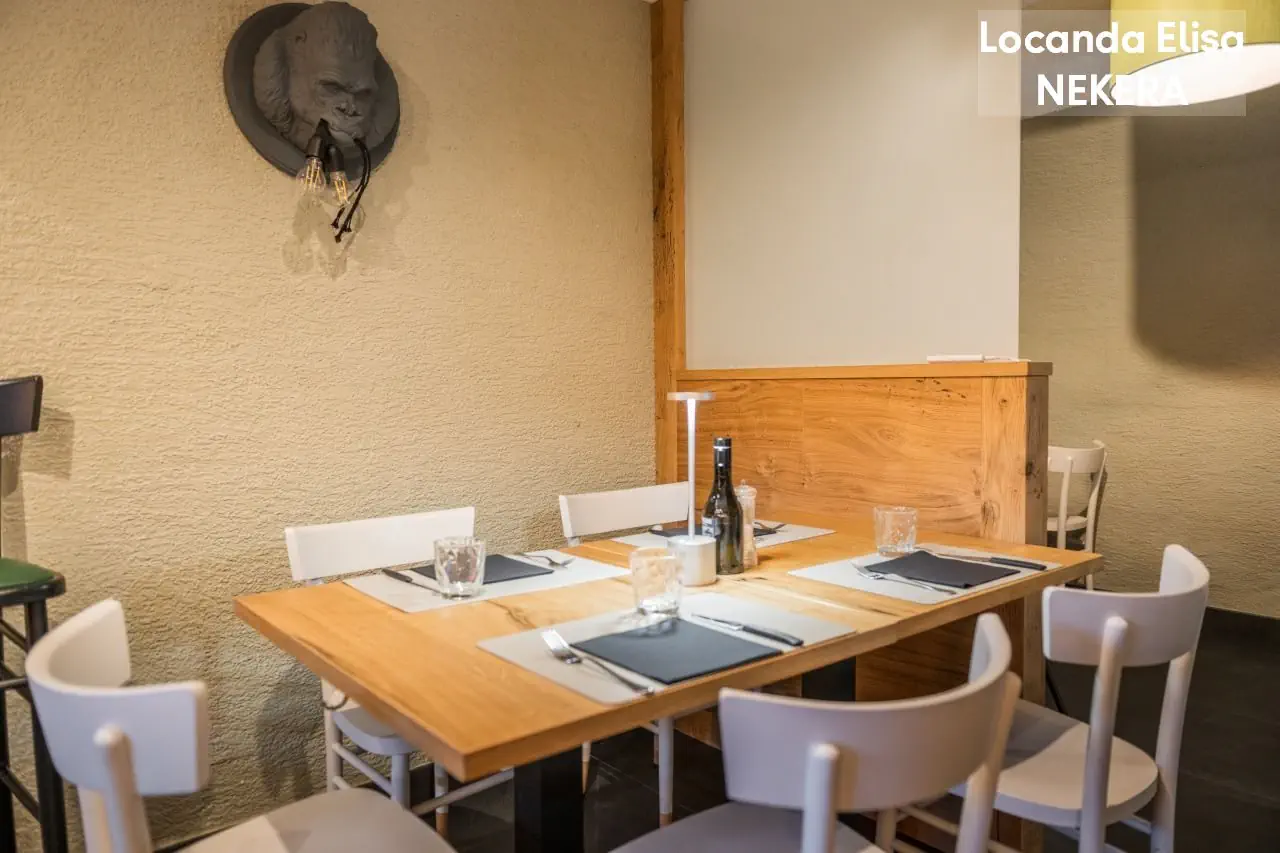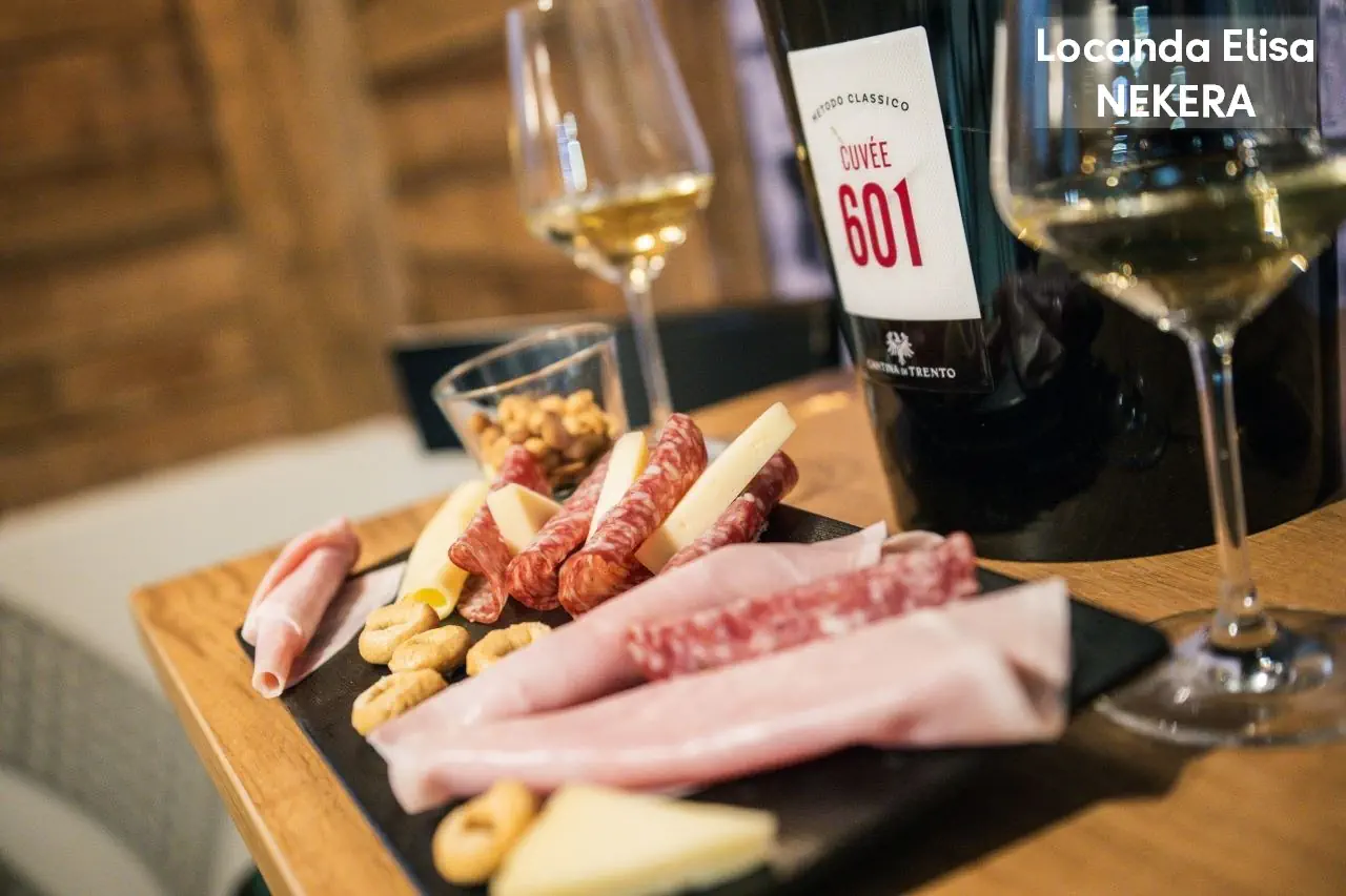 z dwoma posiłkami: śniadanie w formie bufetu, kolacja w formie 3-daniowego menu z bufetem sałatekk i przystawek. Śniadanie serwowane w sali śniadaniowej znajdującej się w hotelu, kolacja serwowana w sąsiedniej restauracji-pizzerii "Locanda Elise" w godz. 19-20:00. Napoje do kolacji dodatkowo płatne.